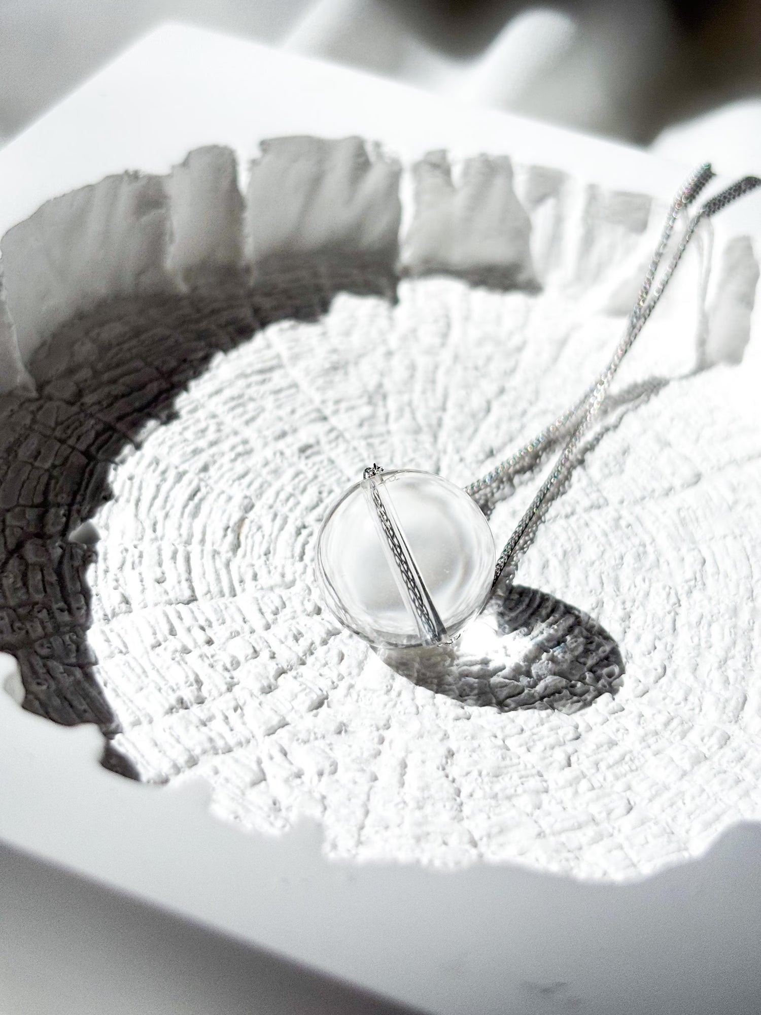 A minimalist design with cosmic elegance.This necklace features a clear orb that captures and reflects light, symbolizing clarity and lunar beauty.
