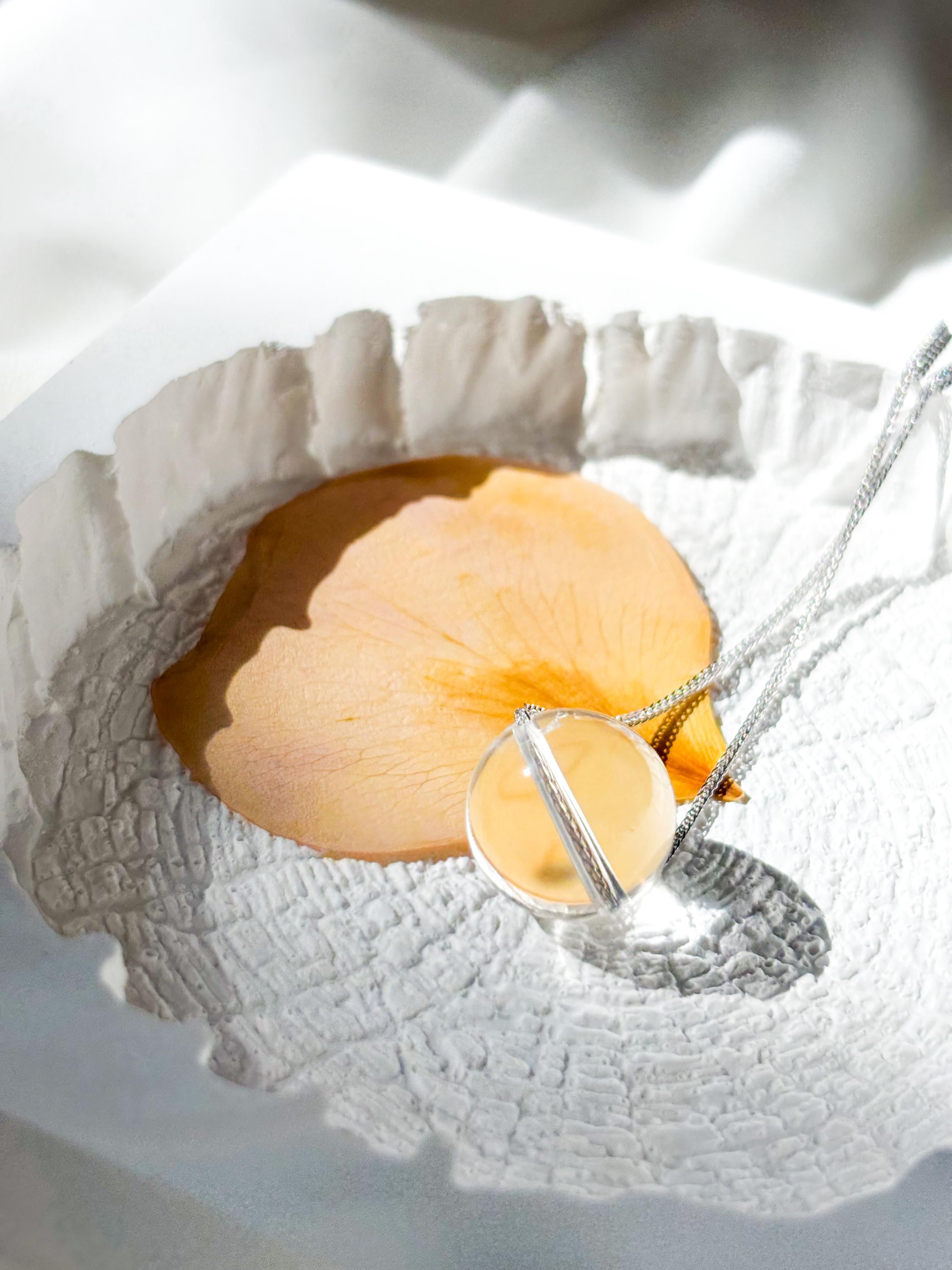 A minimalist design with cosmic elegance.This necklace features a clear orb that captures and reflects light, symbolizing clarity and lunar beauty.