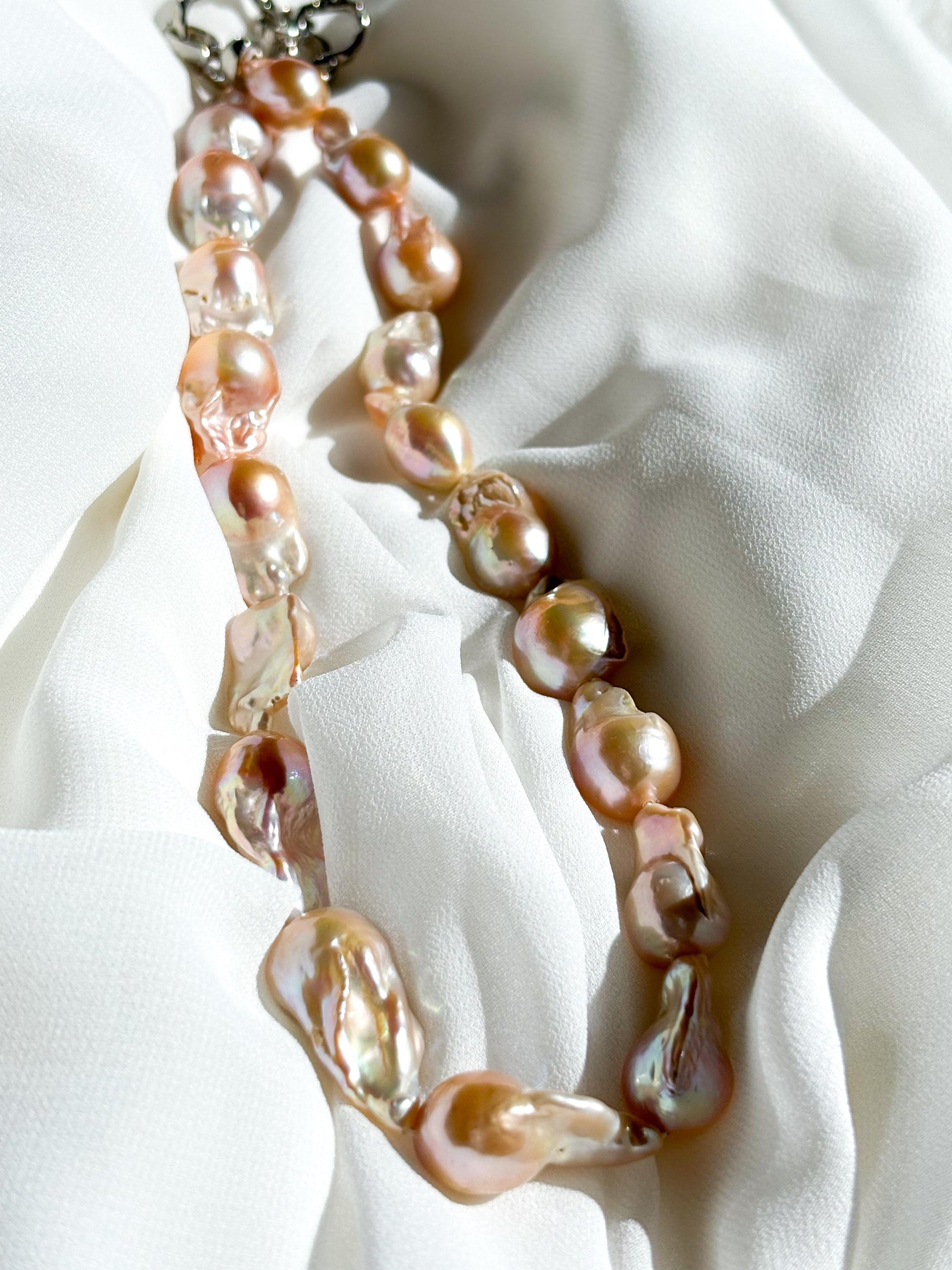 Baroque Pearl Necklace with Tiger Lily Motif – Natural Iridescent Pearls (AA+ Luster)