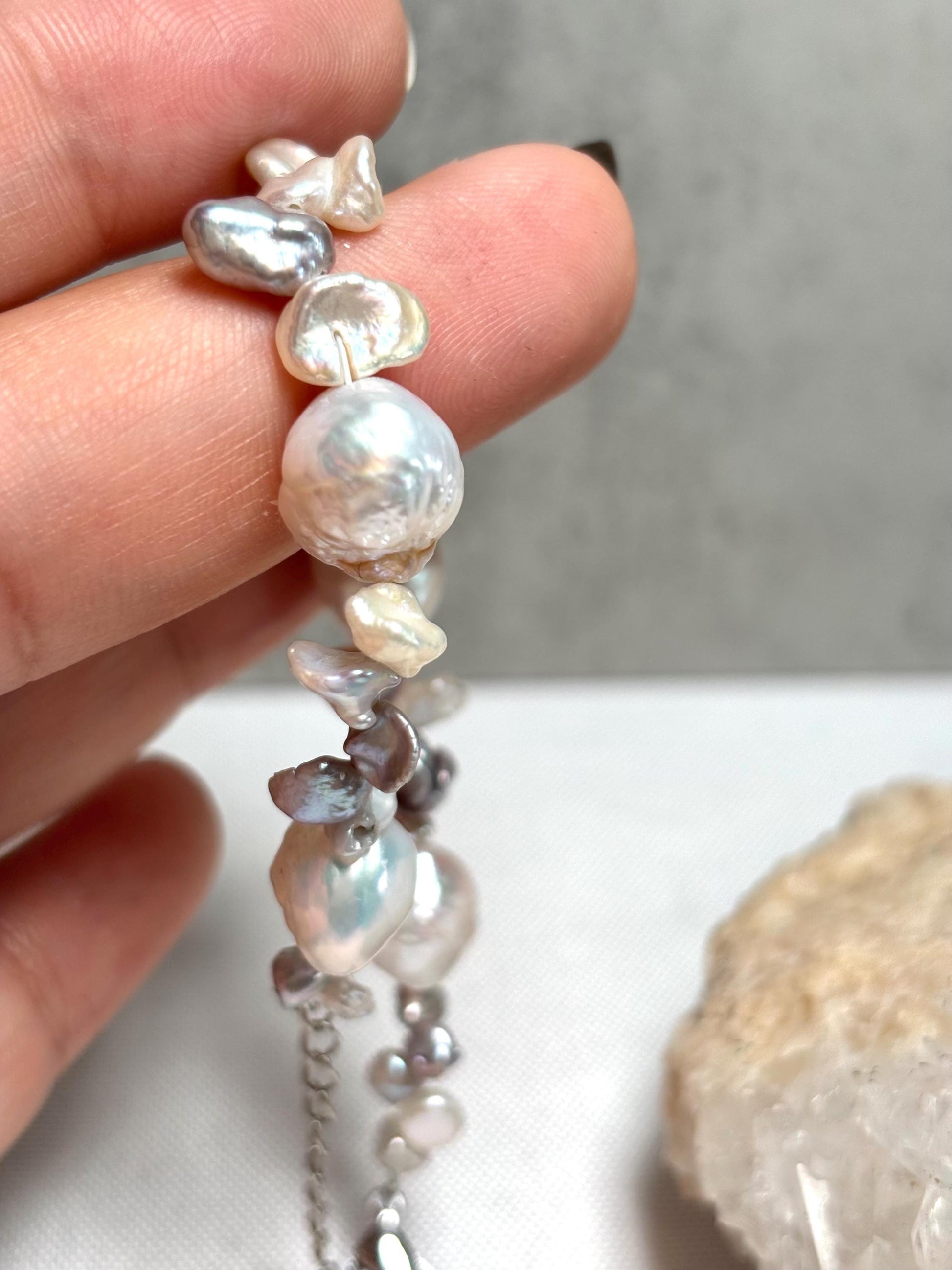 Blooming Pearl Garden Irregular Baroque Bracelet 925 Sterling Silver