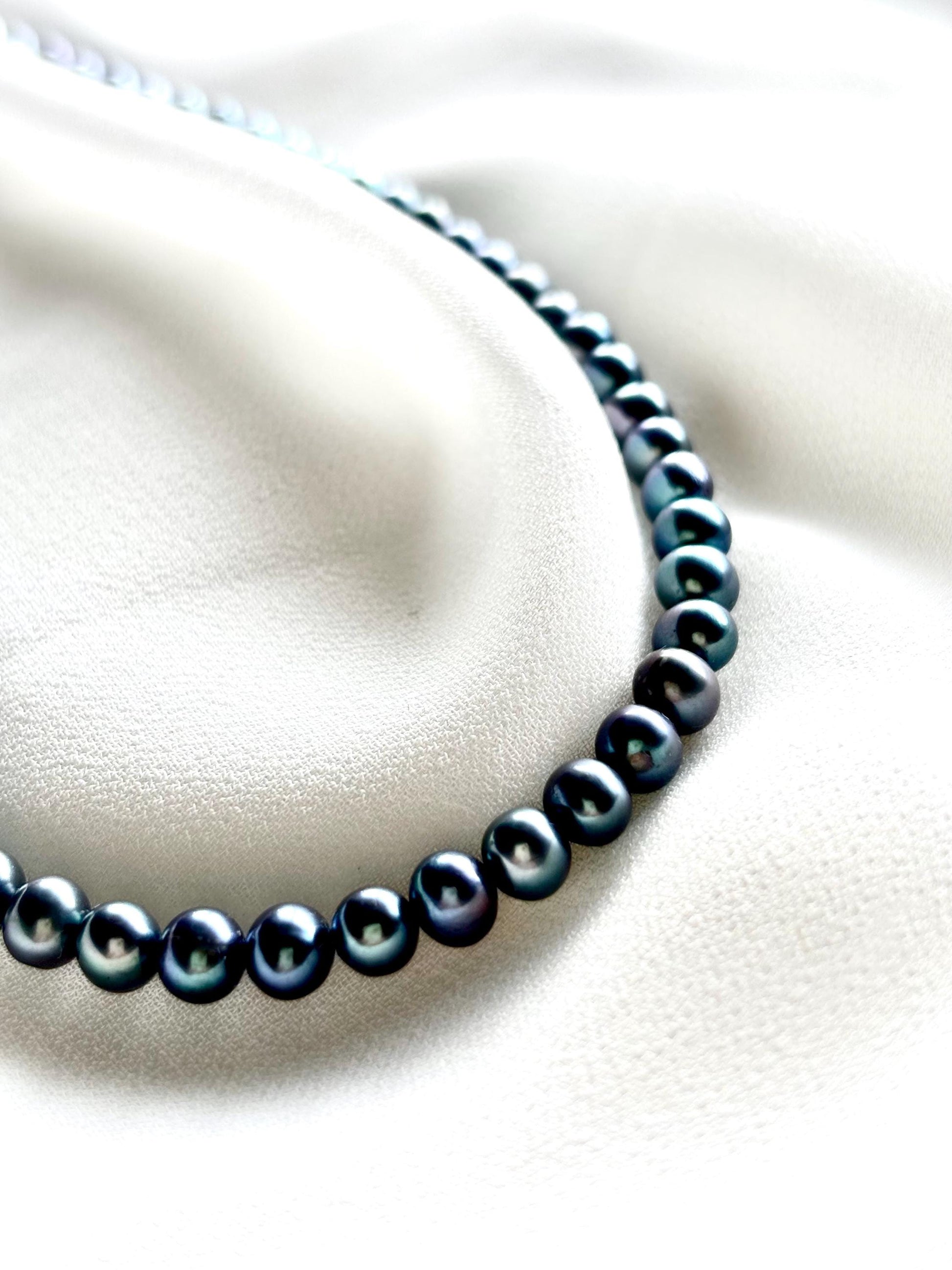 Blue Hydrangea: Confident Pearl Choker with Oceanic Iridescence 925 Sterling Silver (AA+ Luster)