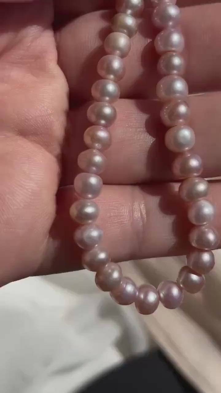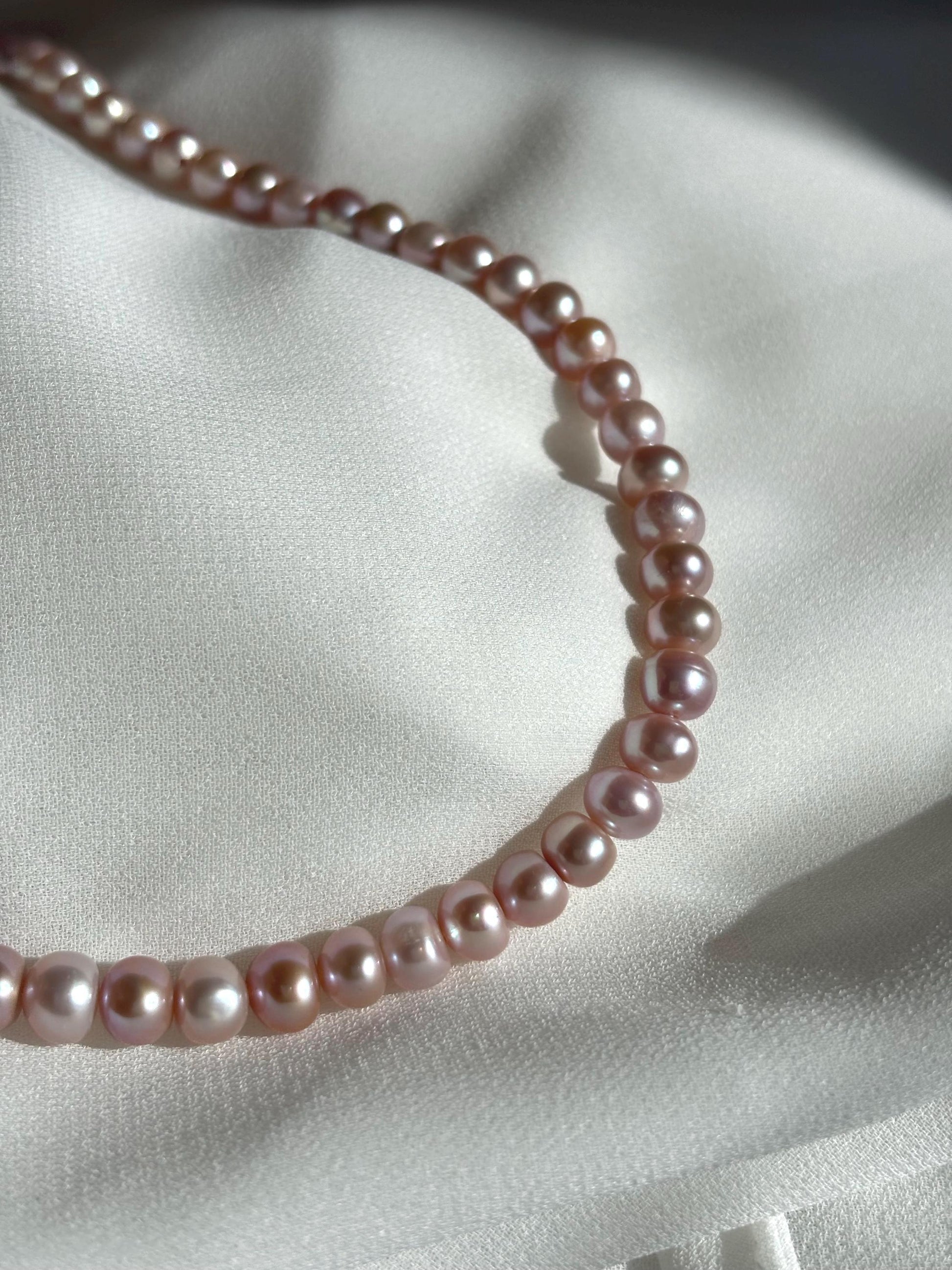 Blushing Blossoms: Freshwater Pearl Choker in Cherry Blossom Pink 925 Sterling Silver ( Luster AA )