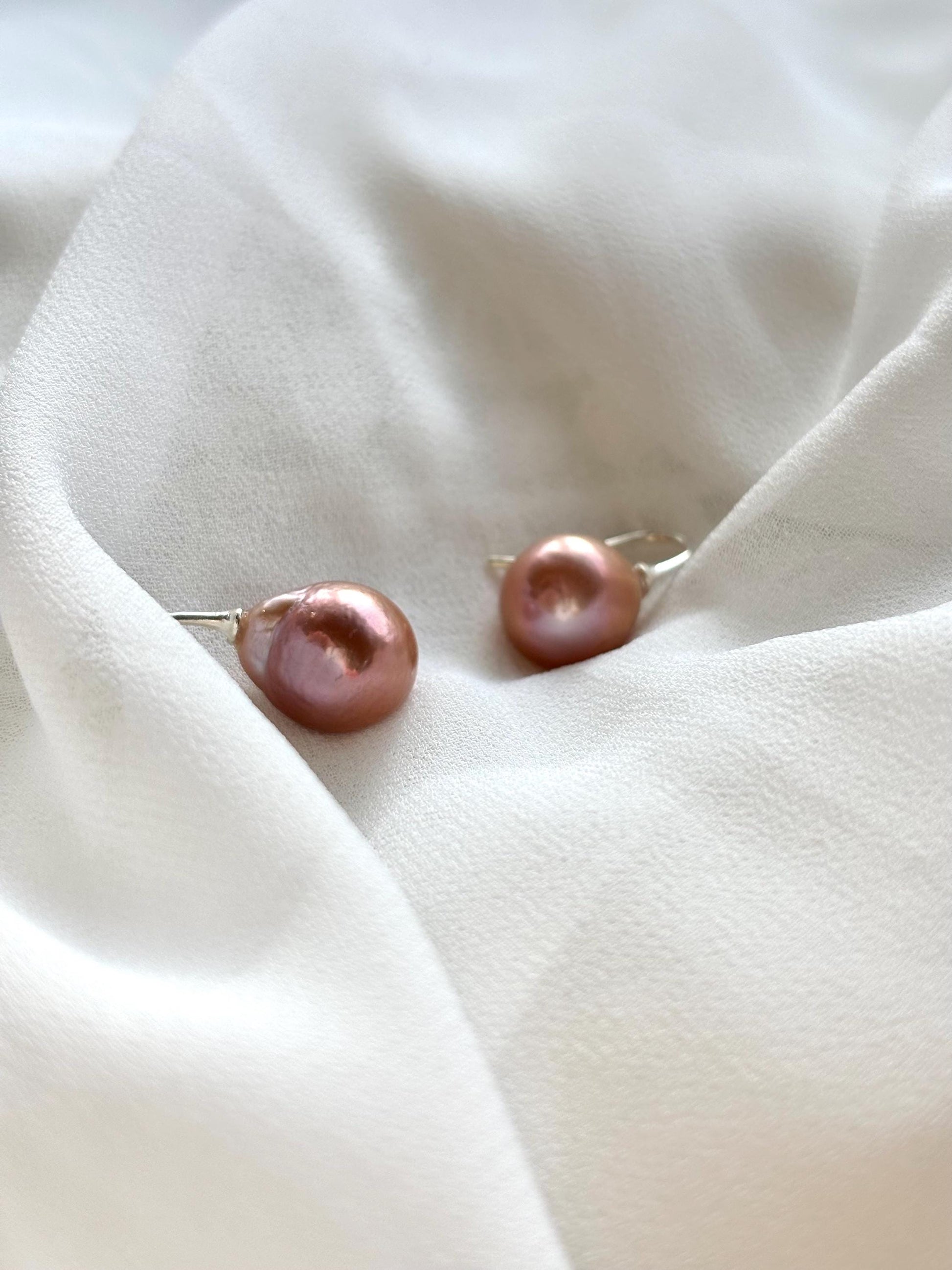 Camelia Blush - Rose Gold Natural Baroque Pearl Sterling Silver Earrings