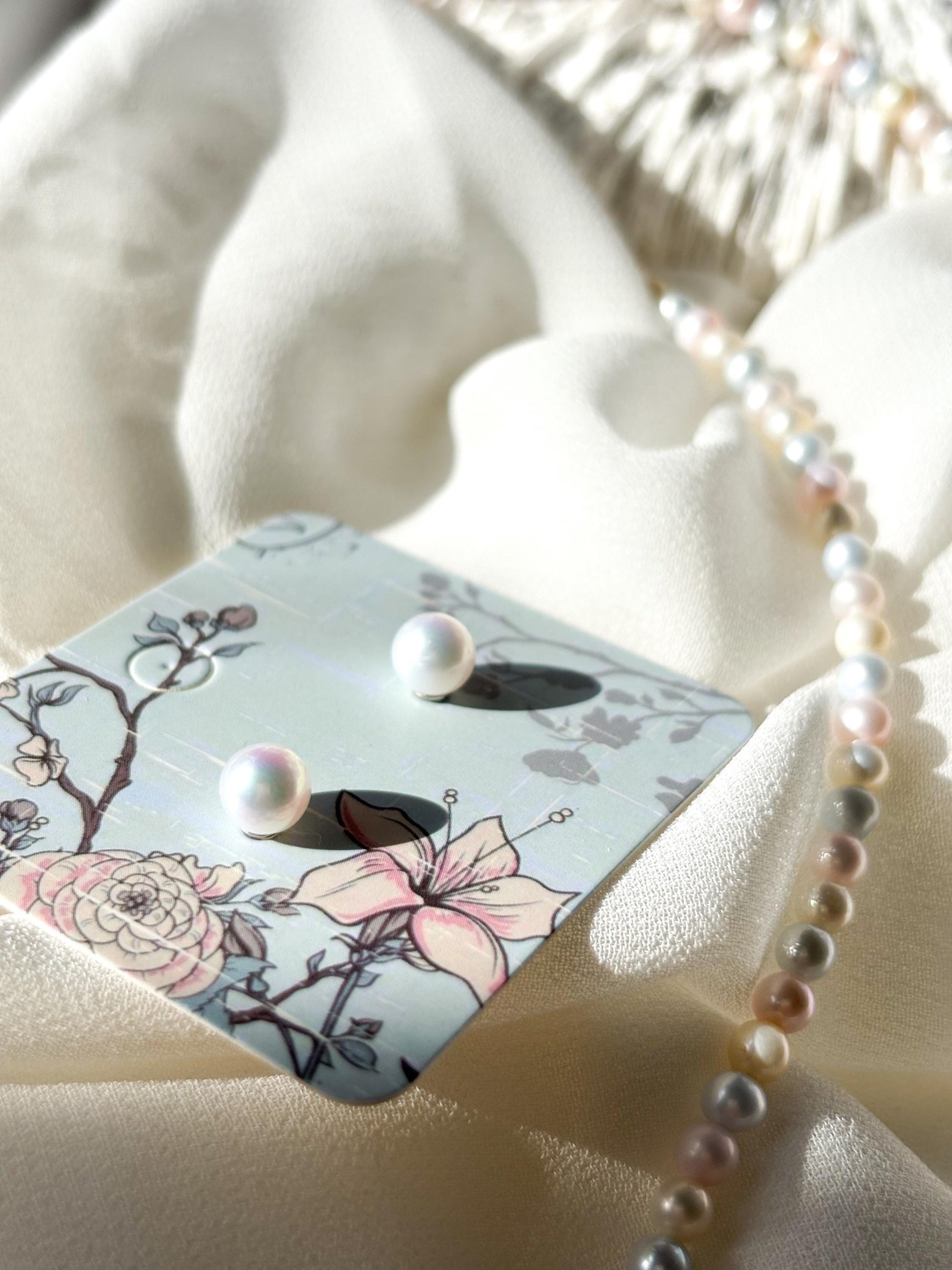 Celestial Mist – White Freshwater Pearl Stud Earrings (AAA Luster)