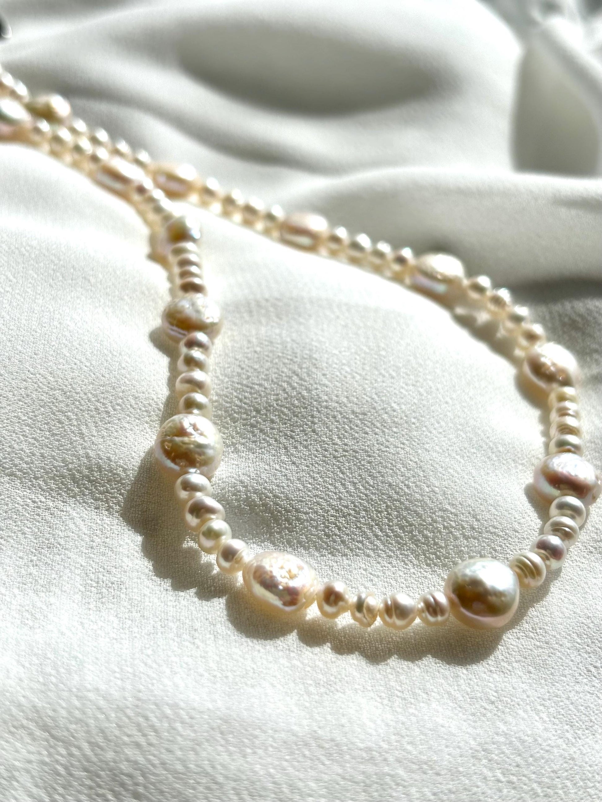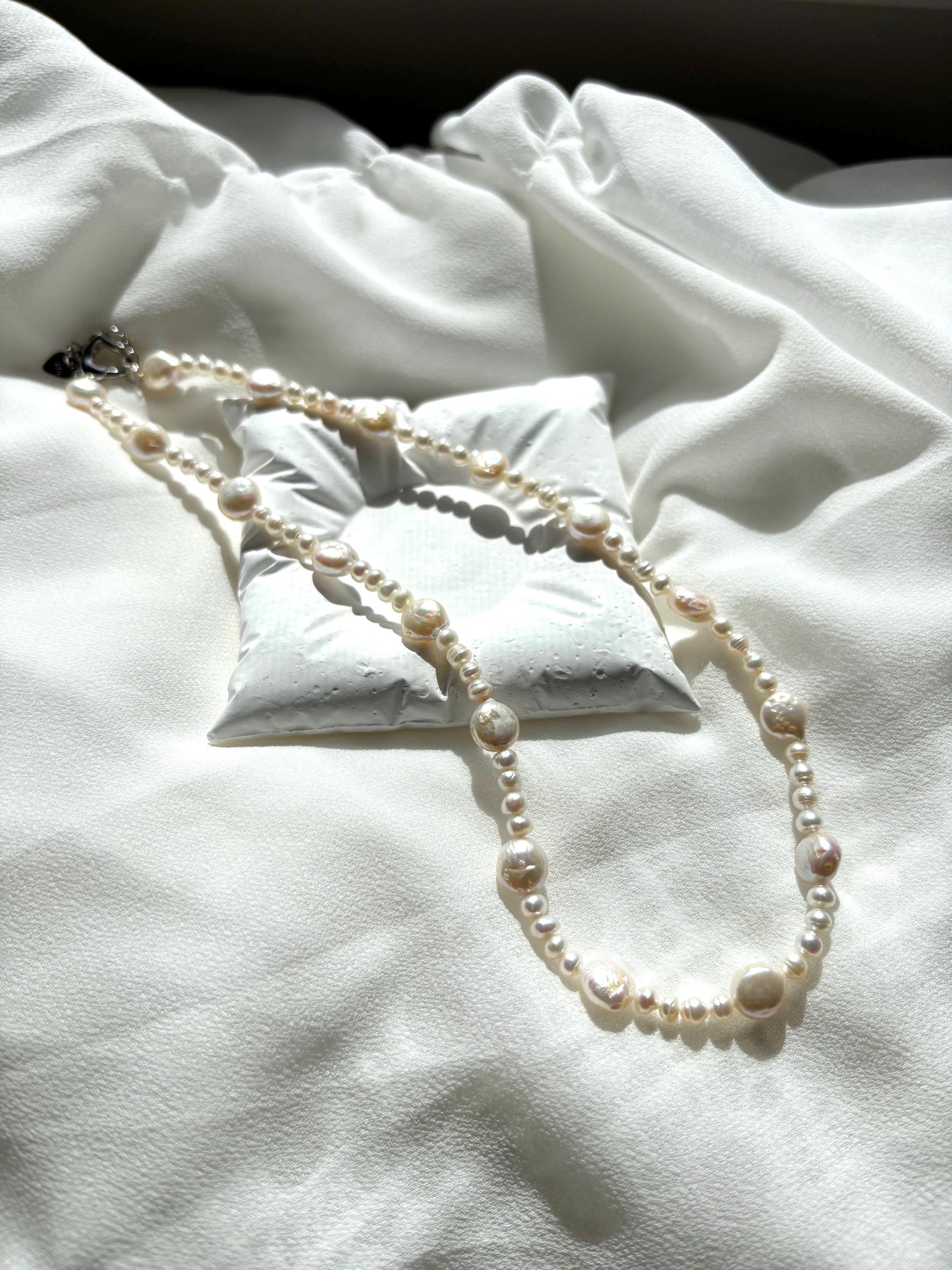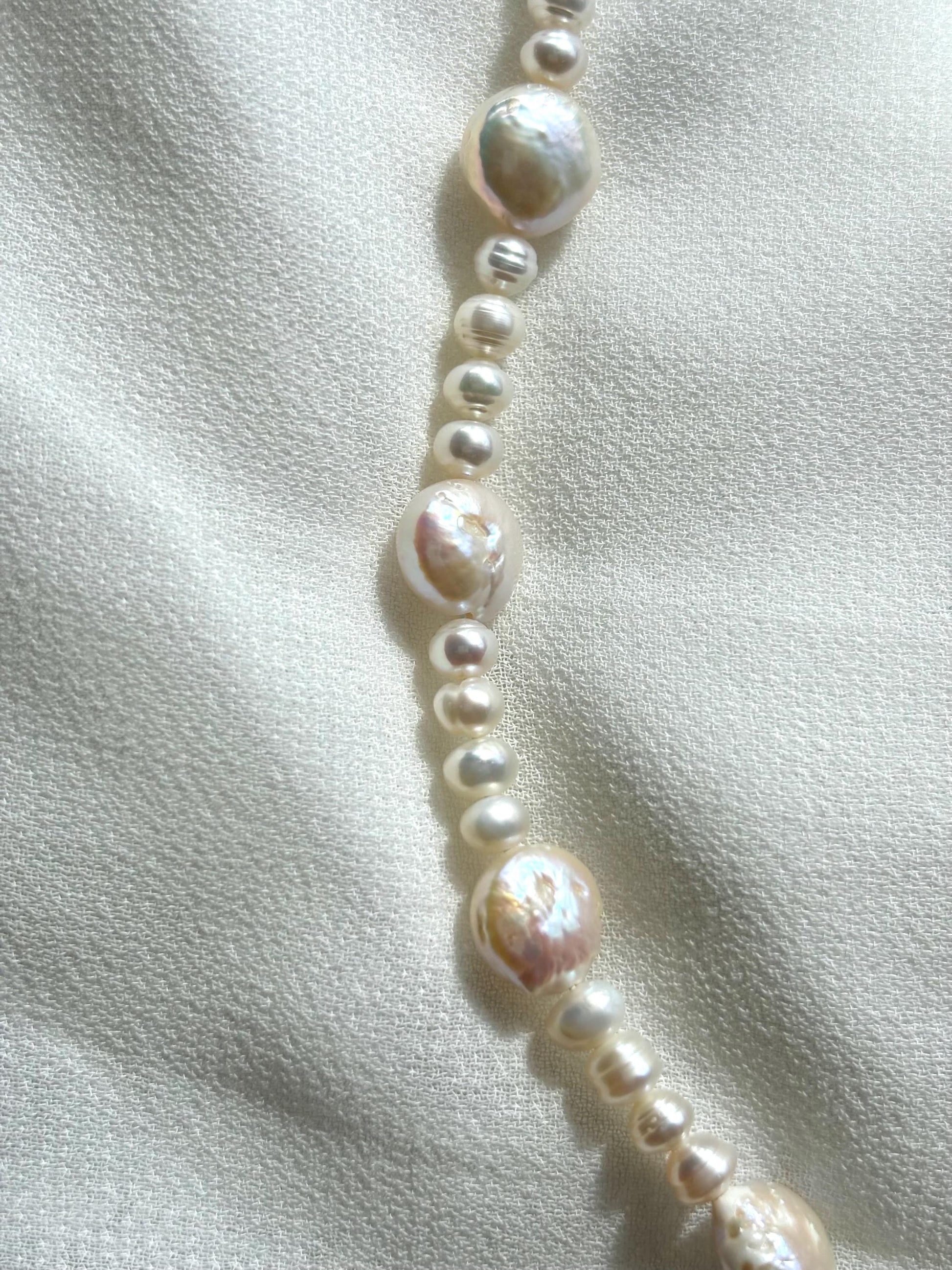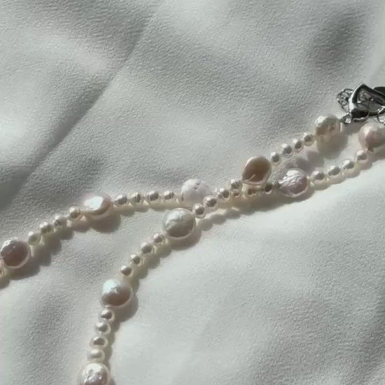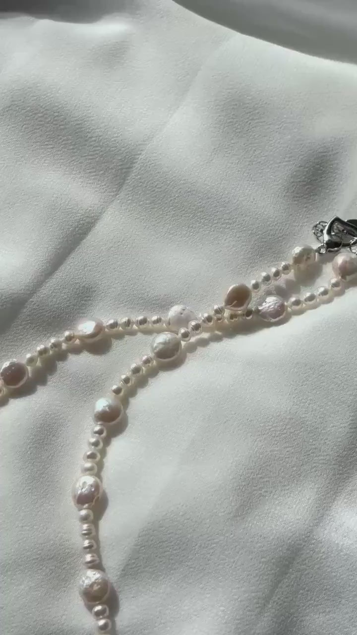 Charming White Baroque Pearl Necklace – Irregular Coin & Round Pearls, 40cm Easy-to-Wear Design