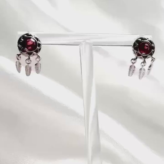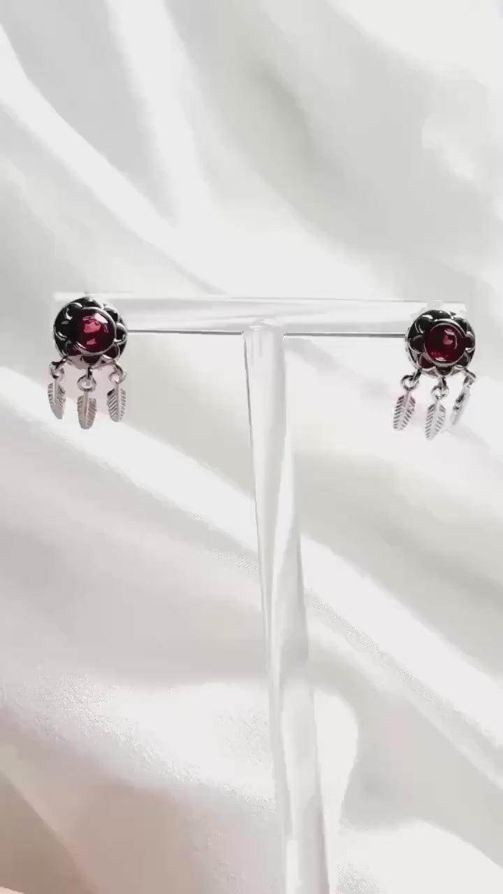Dream of Fire – Garnet Dream Catcher Stud Earrings