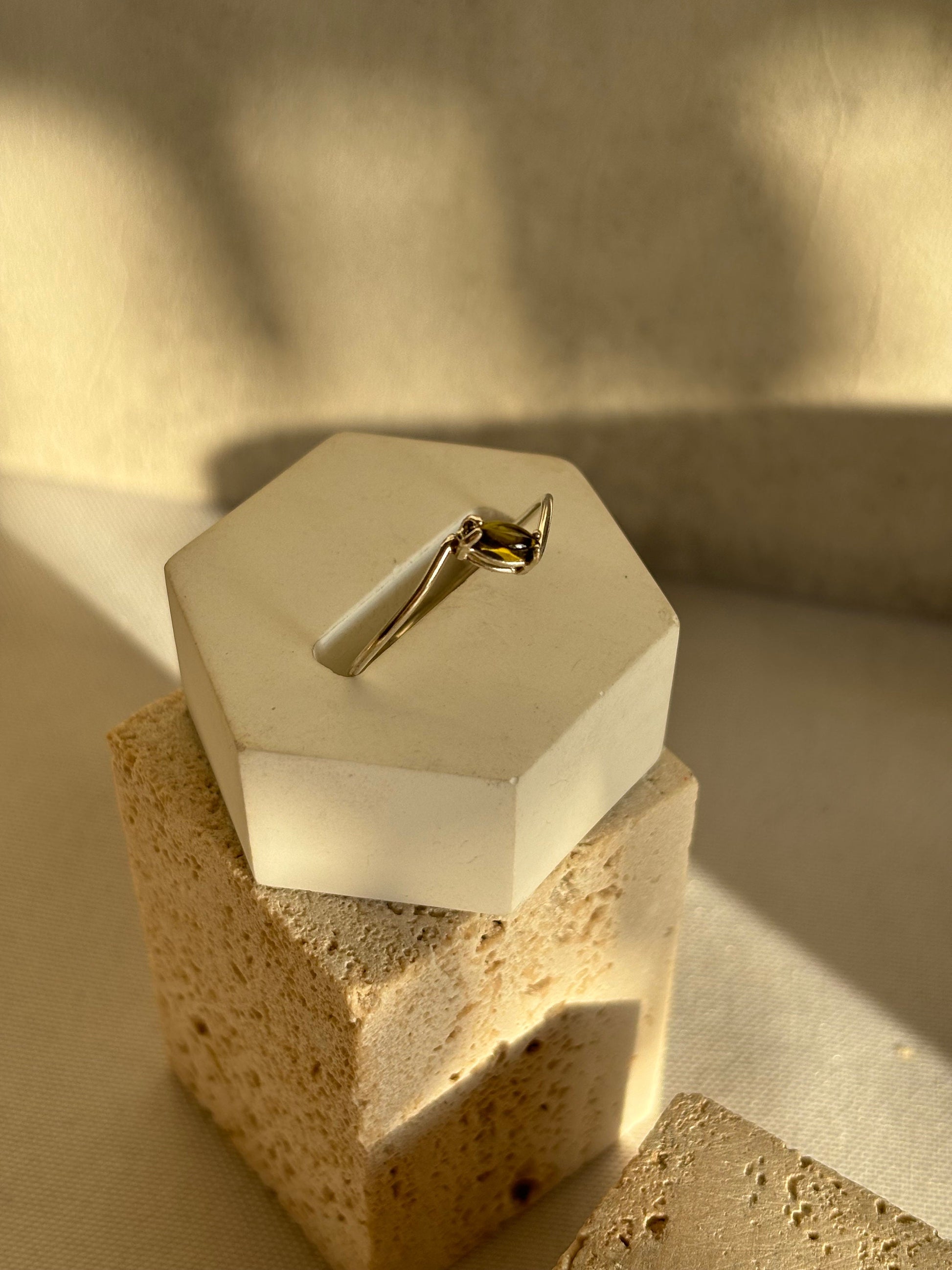 Elegant marquise olive green peridot ring 925 sterling silver