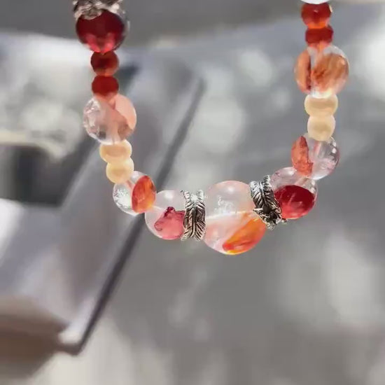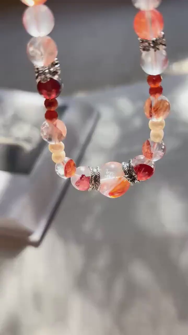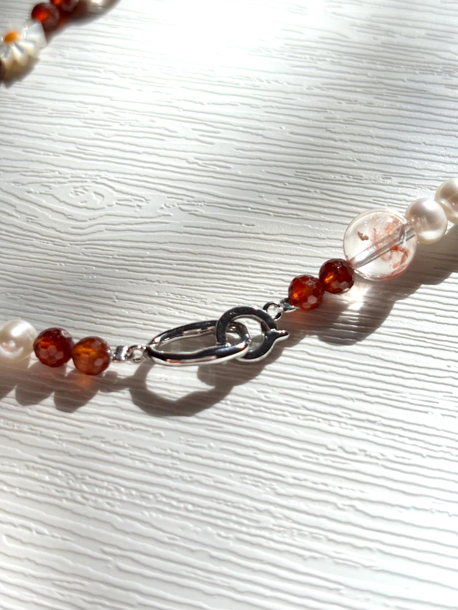Ember Bloom – Hematoid Quartz, Pearl & Garnet Necklace