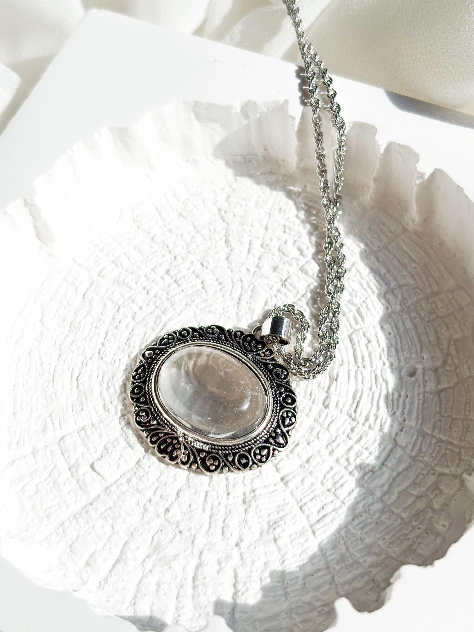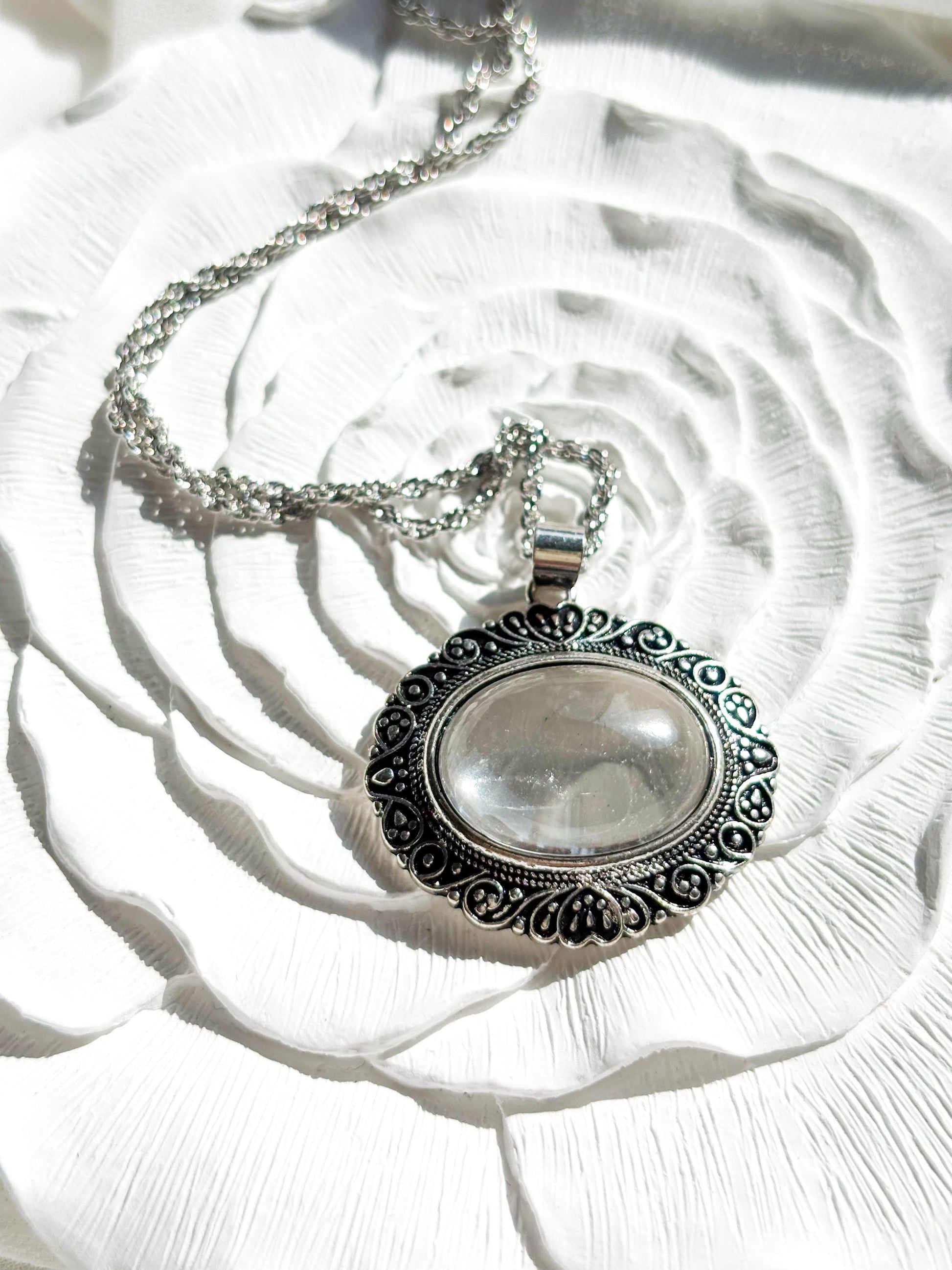 Eternal Elegance – Vintage Statement Necklace with Clear Quartz Pendant