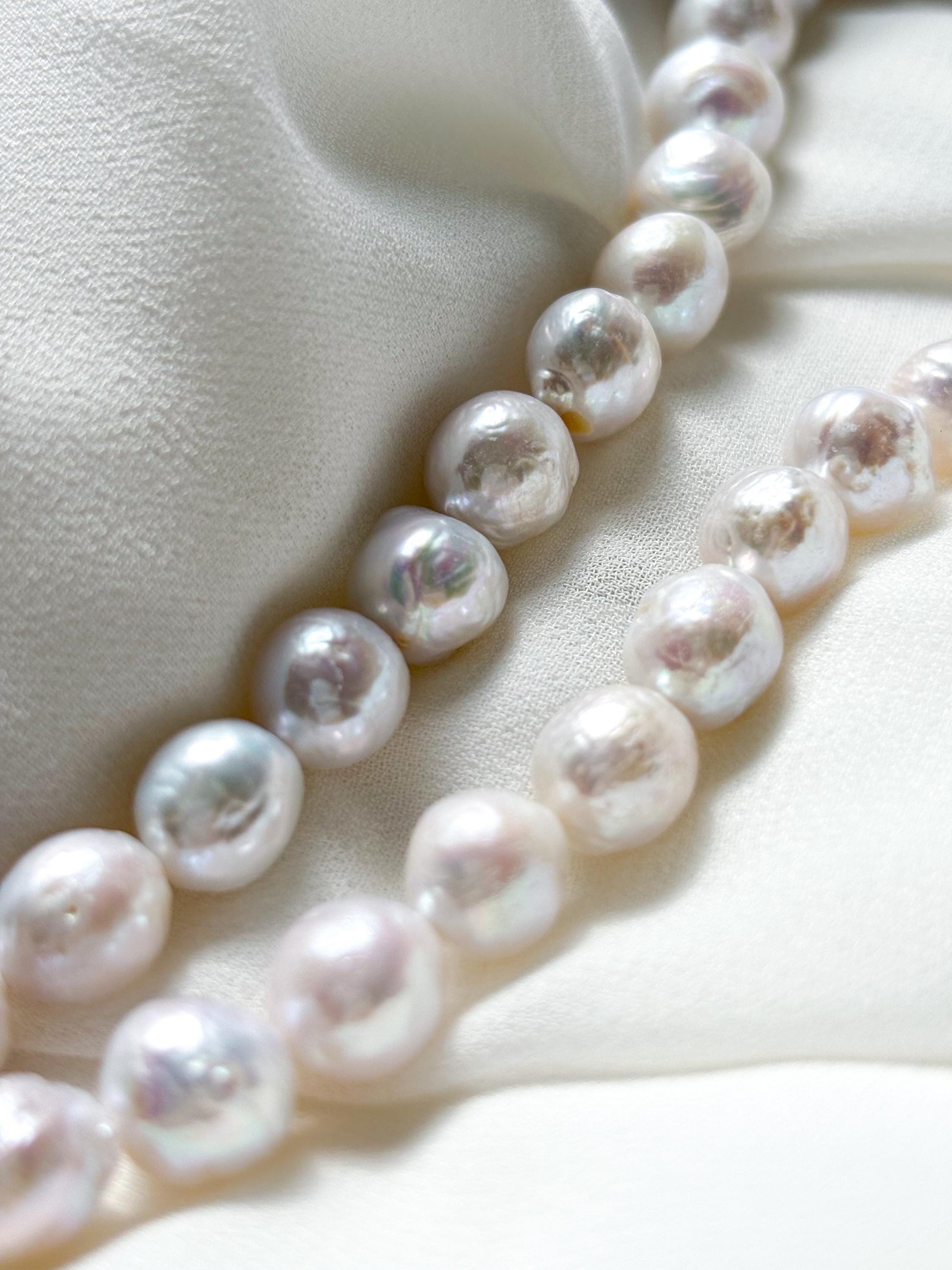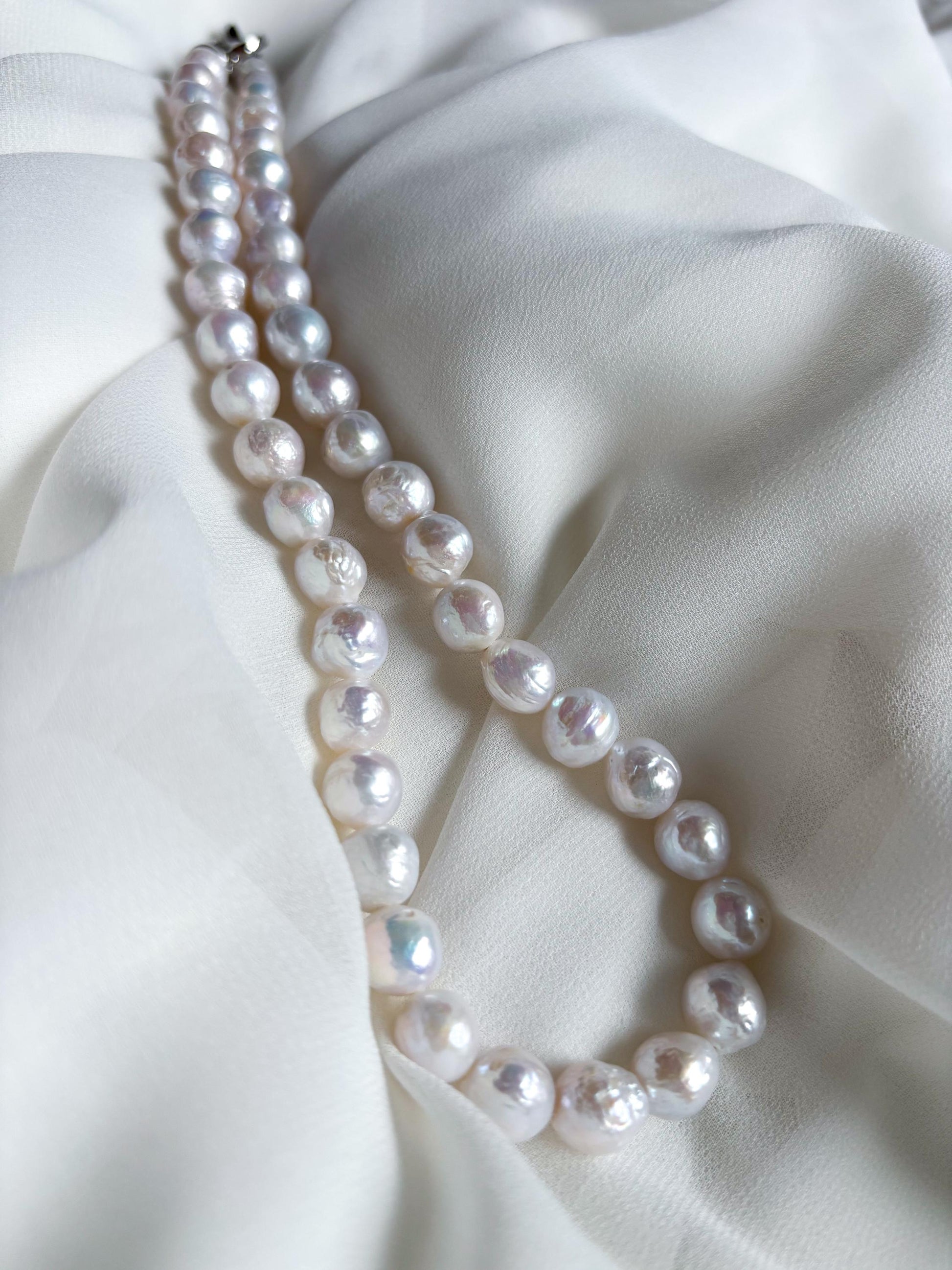 Ethereal Ocean Mist – White Baroque Wrinkled Pearl Necklace (AA Luster)