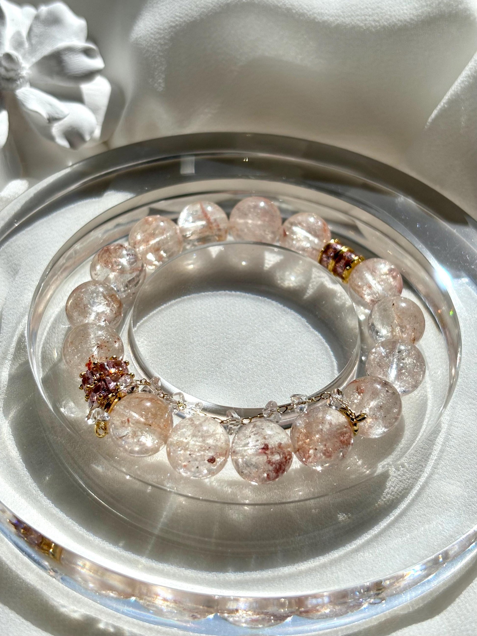 Frosted Rose Symphony Hematoid Quartz Bracelet