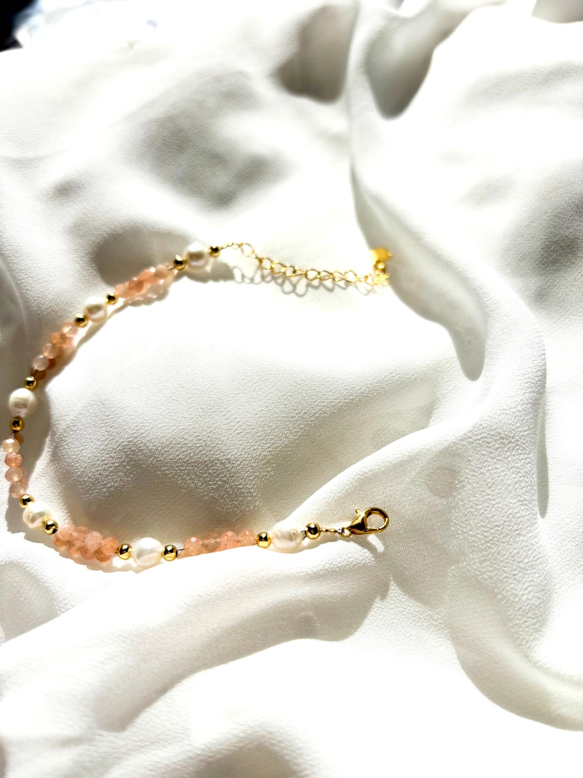 Golden Dawn – Freshwater Pearl & Sunstone Bracelet