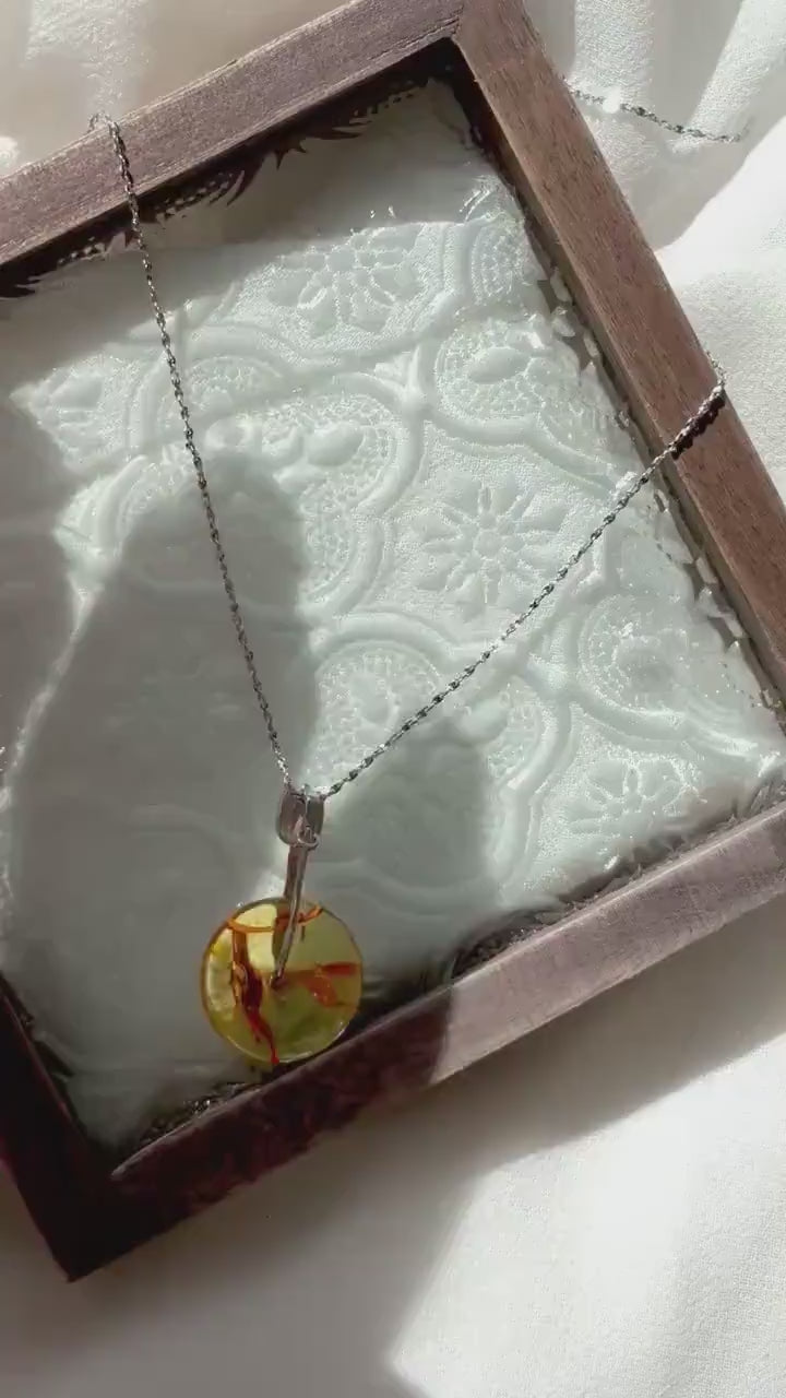 Golden Glow Float Flowers Amber Pendant Necklace - Minimalist Sterling Silver, 45cm