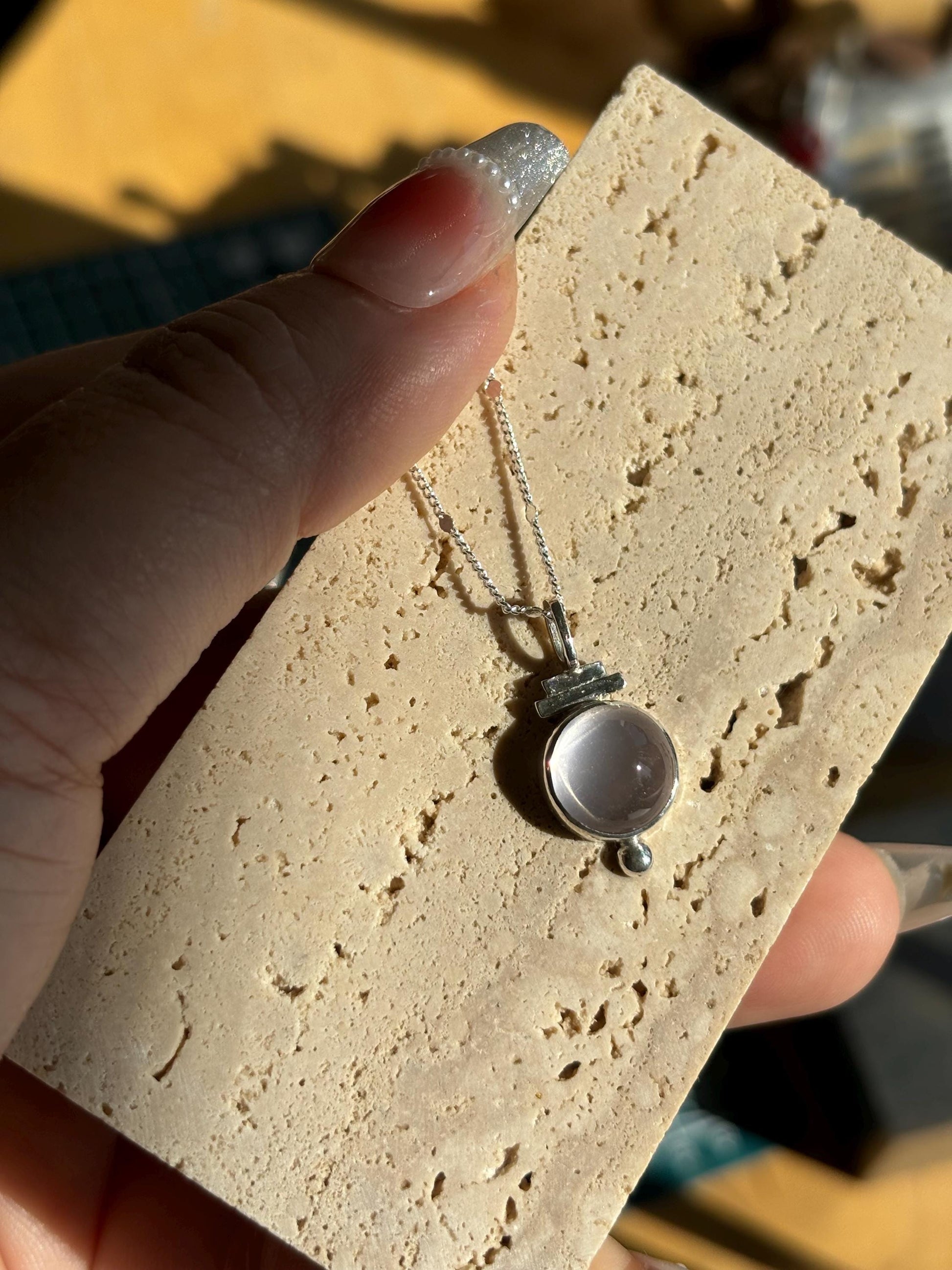 Gorgeous Aztecs Ancient Style AAA Clear Pink Natural Rose Quartz 925 sterling silver necklace