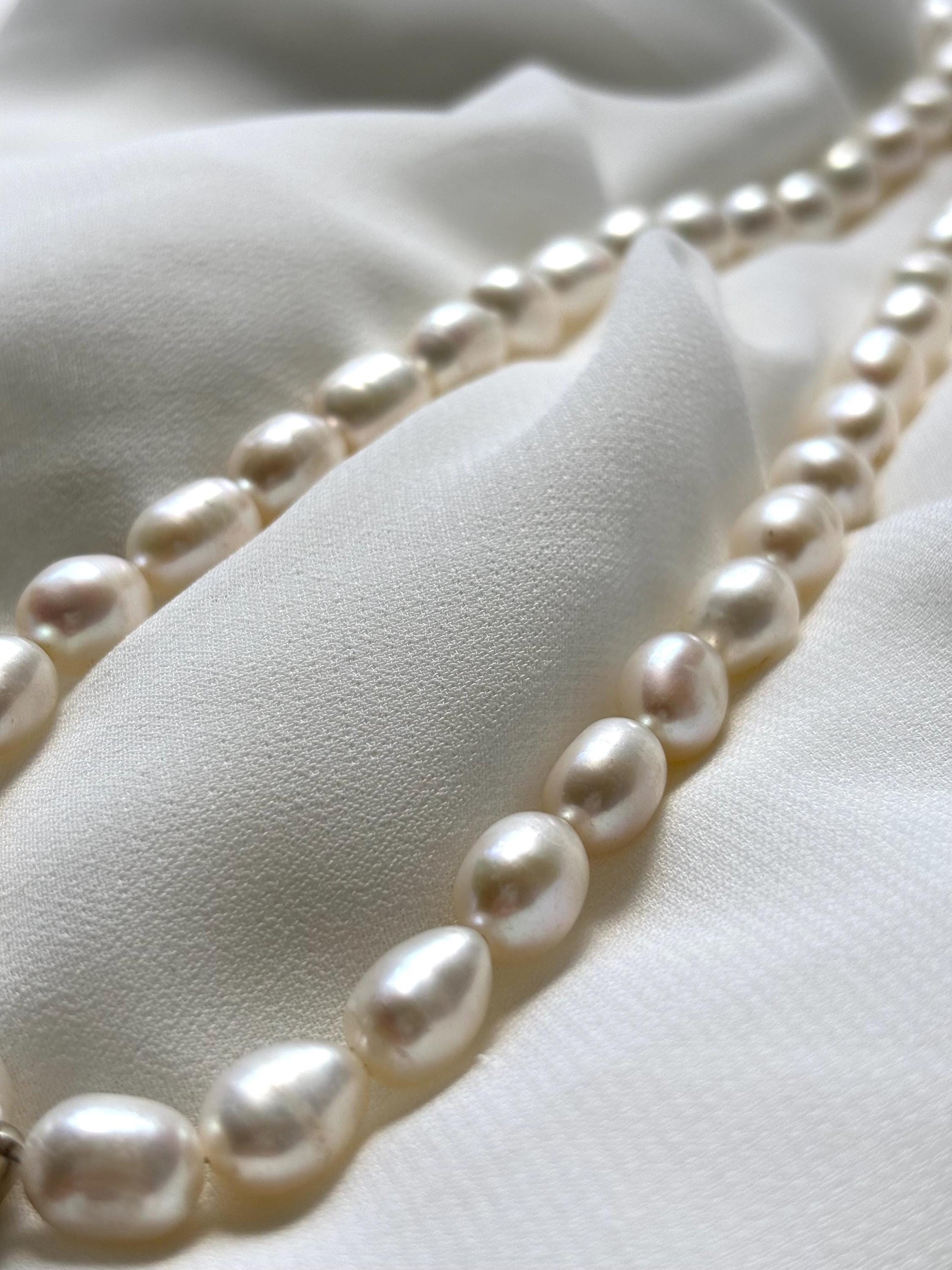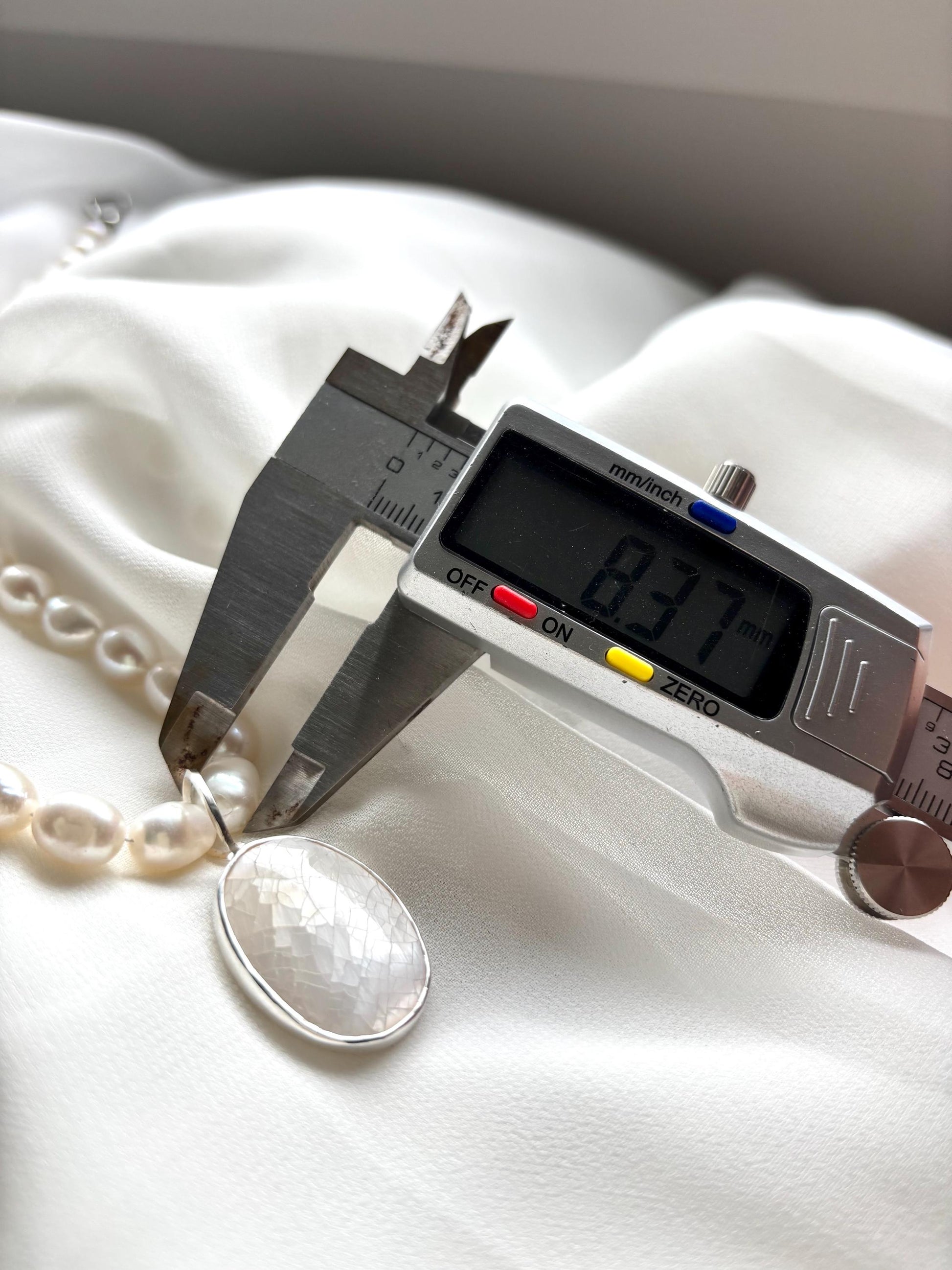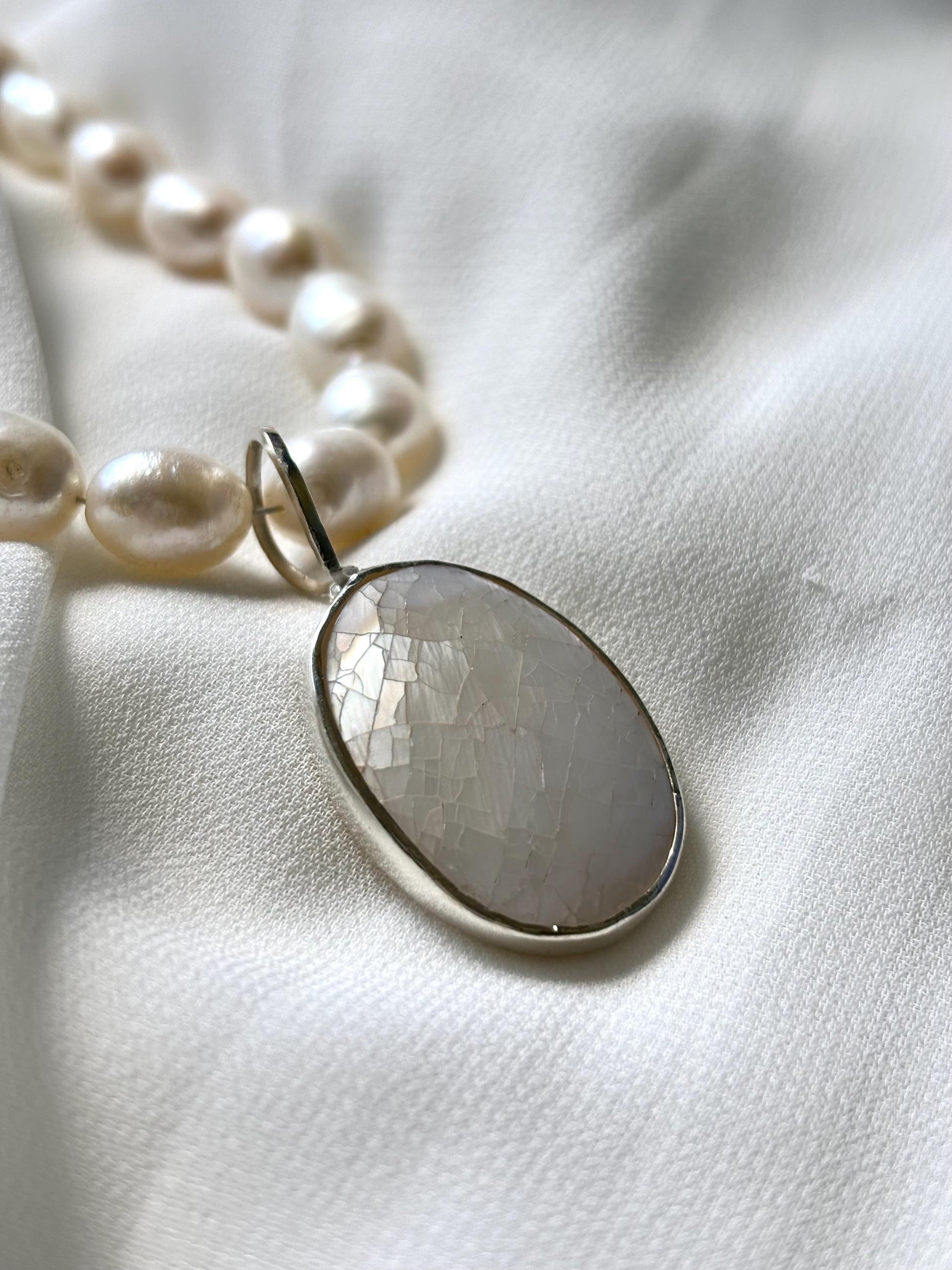 Handcrafted White Pearl Necklace with Sterling Silver Mother of Pearl Pendant