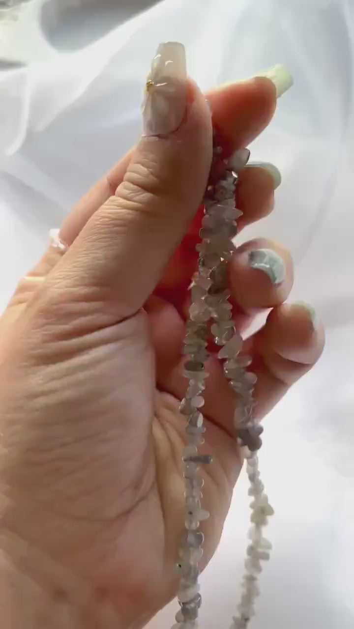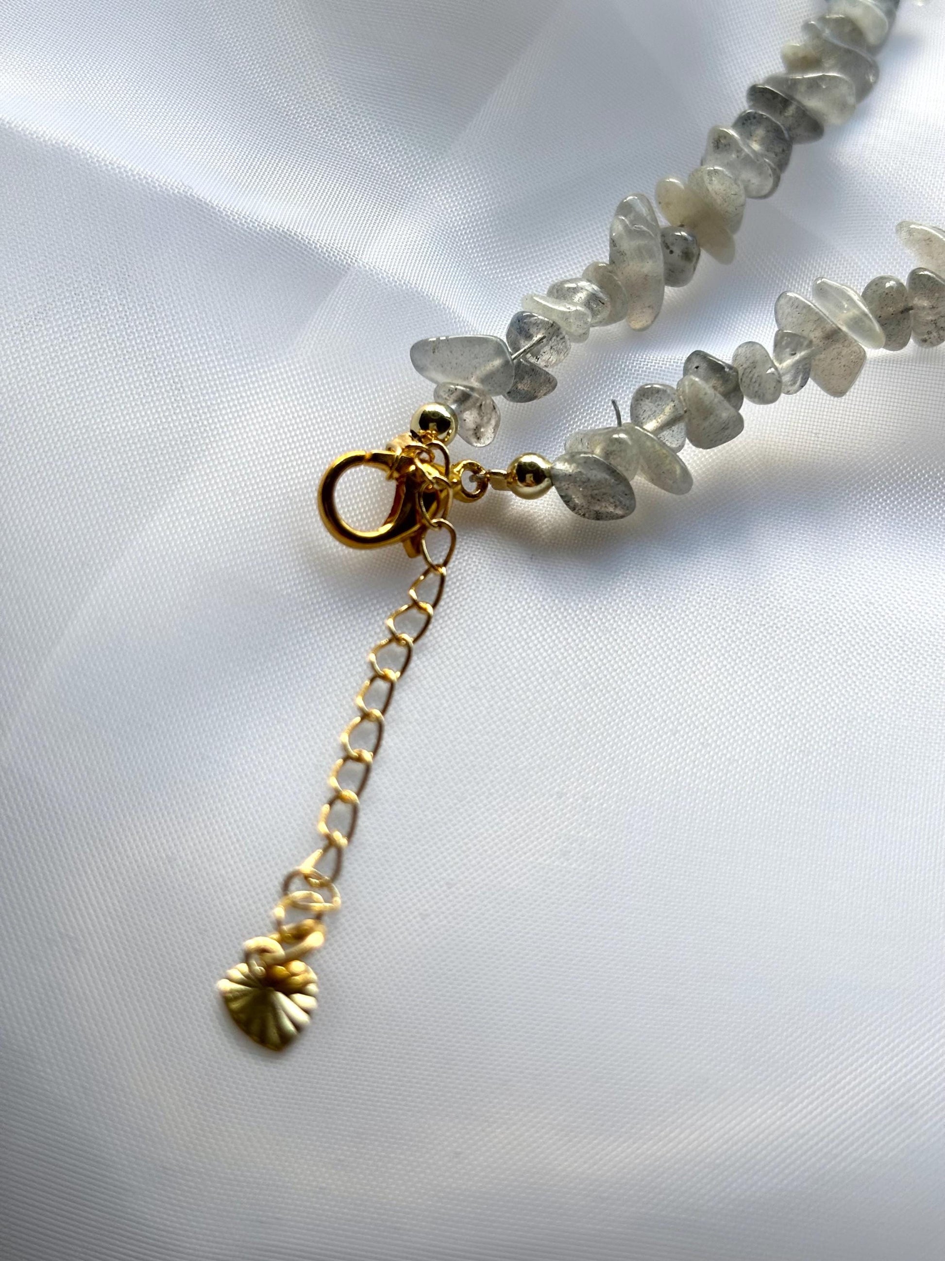 Irregular Labradorite Choker Necklace with White Pearl Center – 35cm Natural Gemstone Jewelry