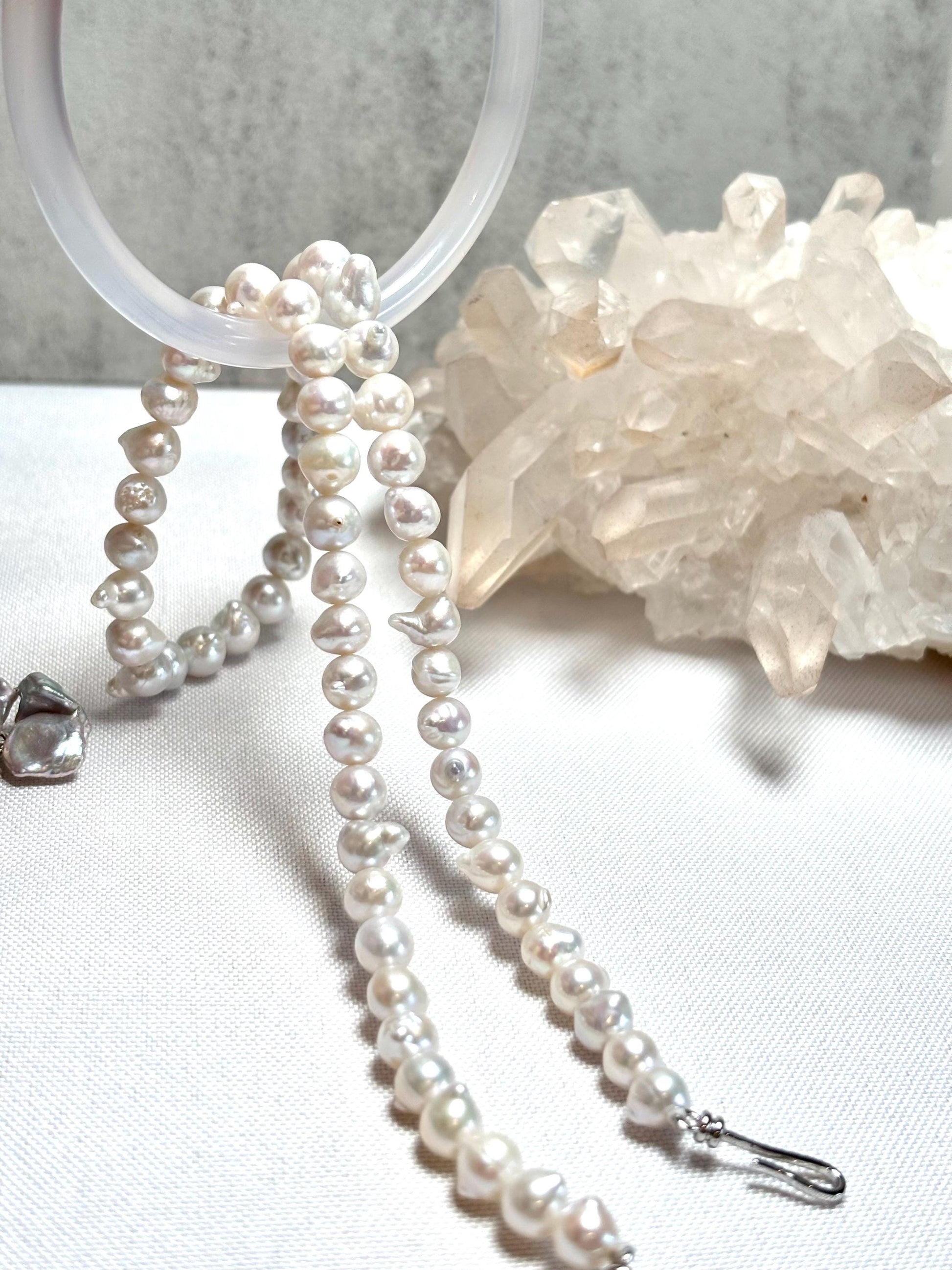 Irregular white baroque summer casual natural freshwater pearl necklace (AA Luster)