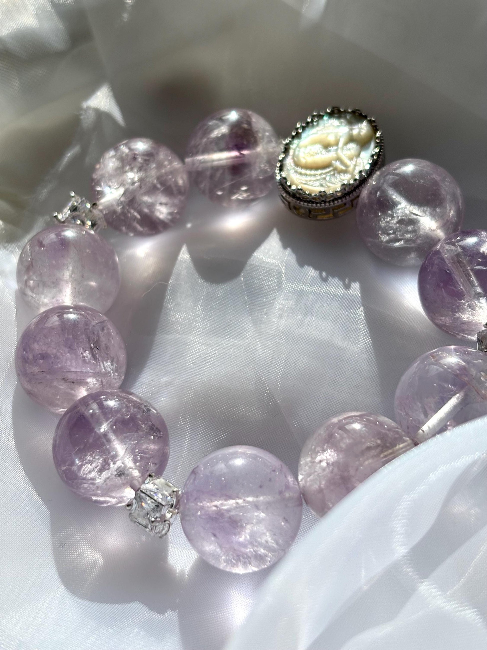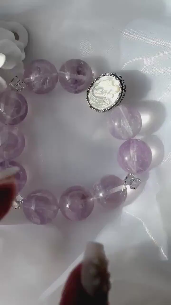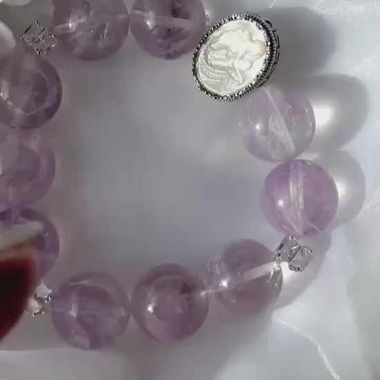 Lavender Amethyst Big Grapes Bracelet with Shell Mermaid Cameo Accent.