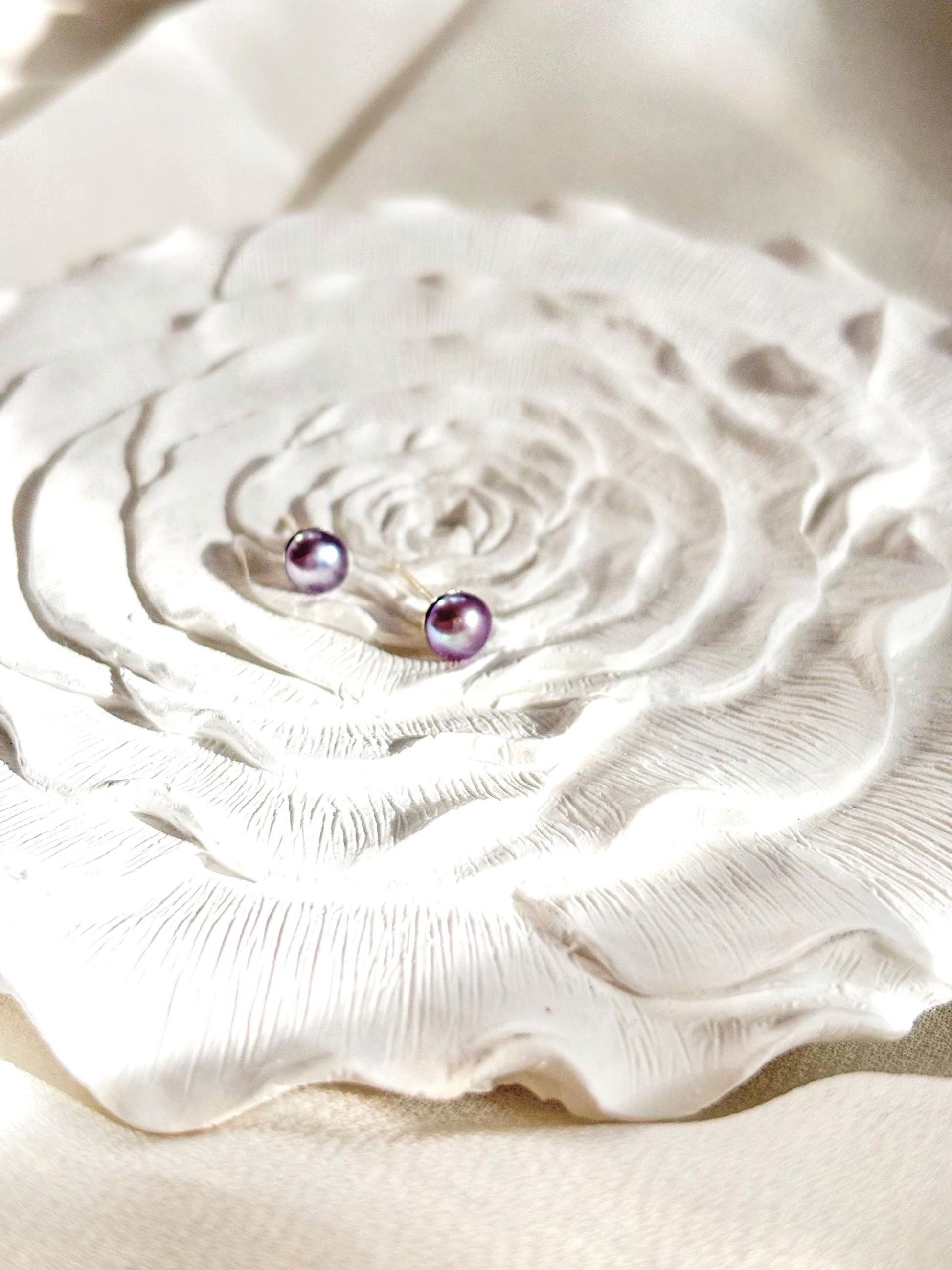 Lavender Glow – Sterling Silver Pearl Stud Earrings