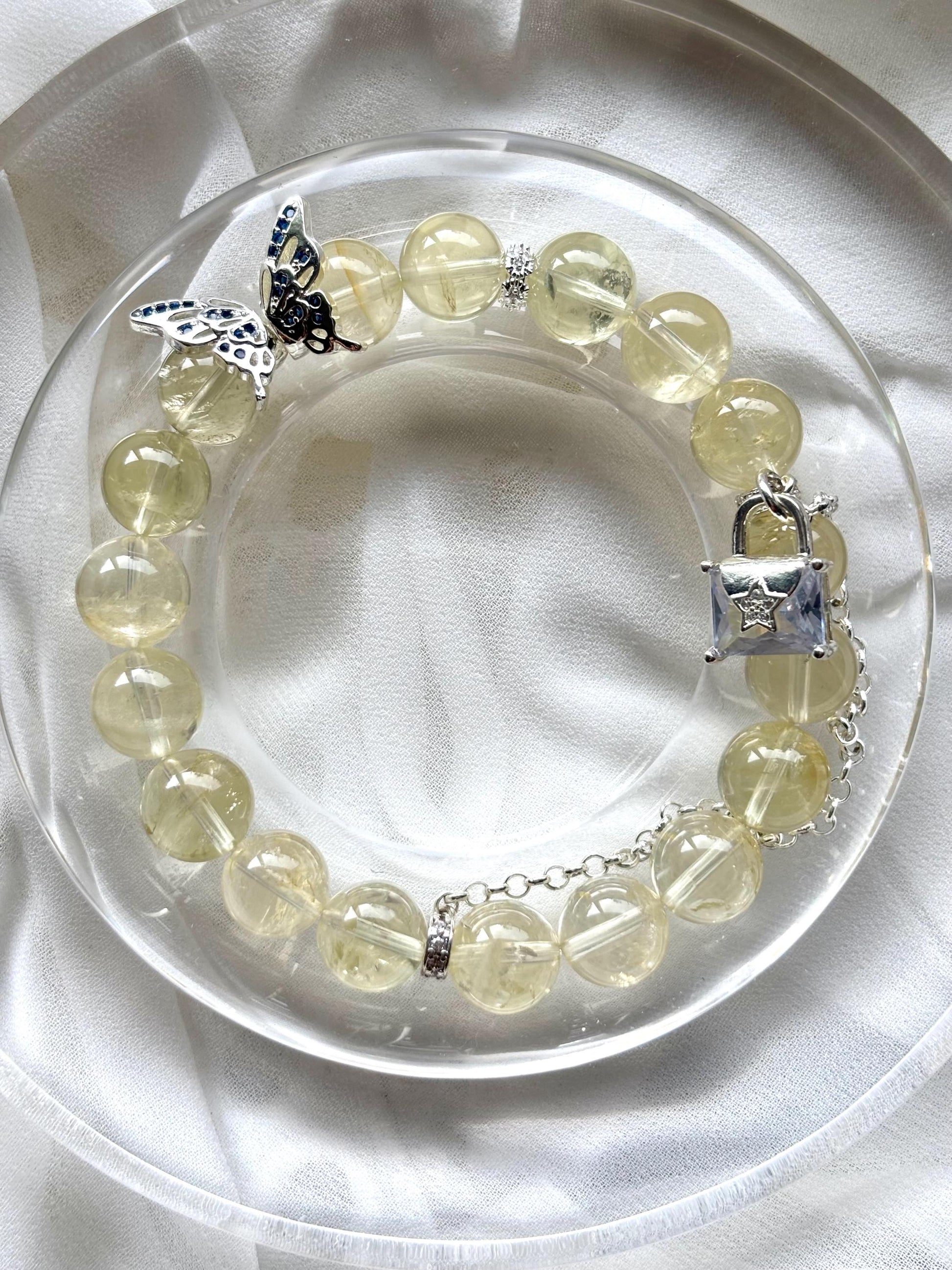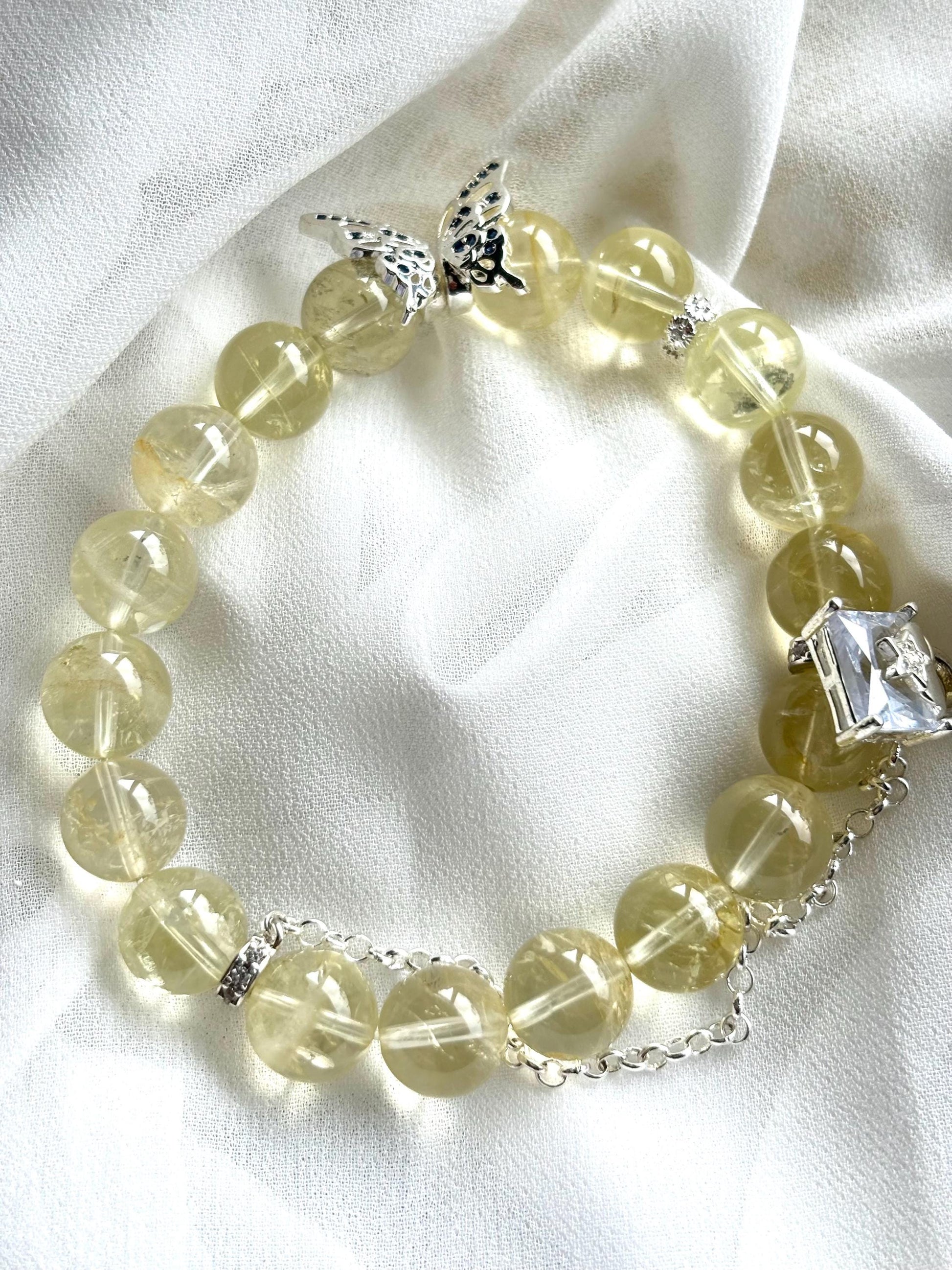 Lemon Quartz Butterfly Bracelet with Clear Letter Chain Charm - Feminine Jewelry