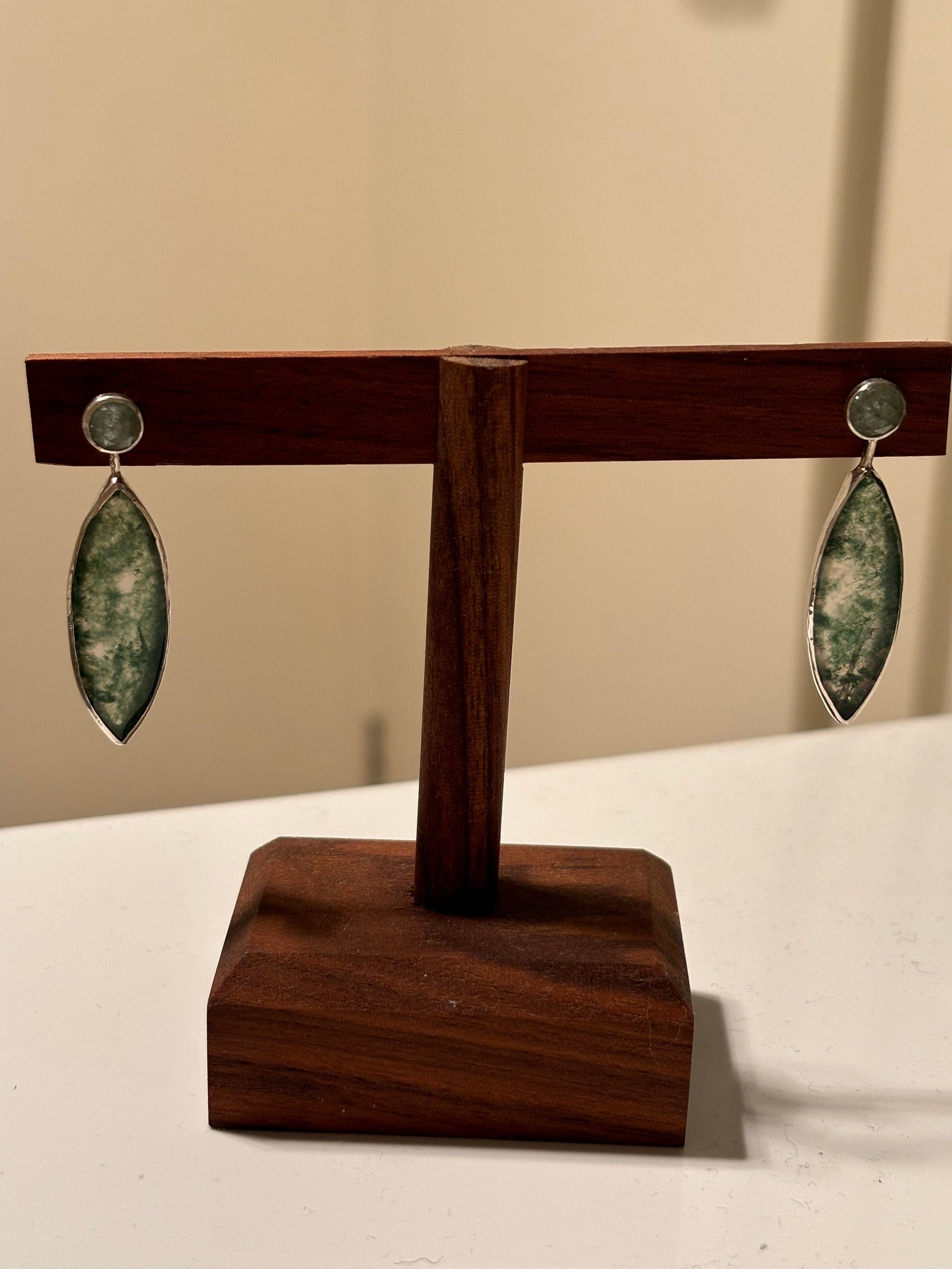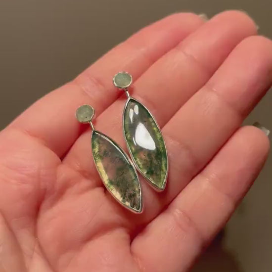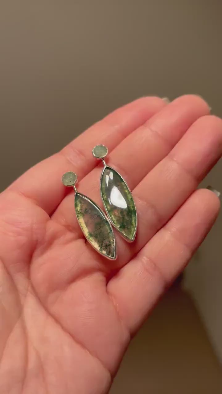 Marquise moss agate with mint kyanite 925 sterling silver see through studs