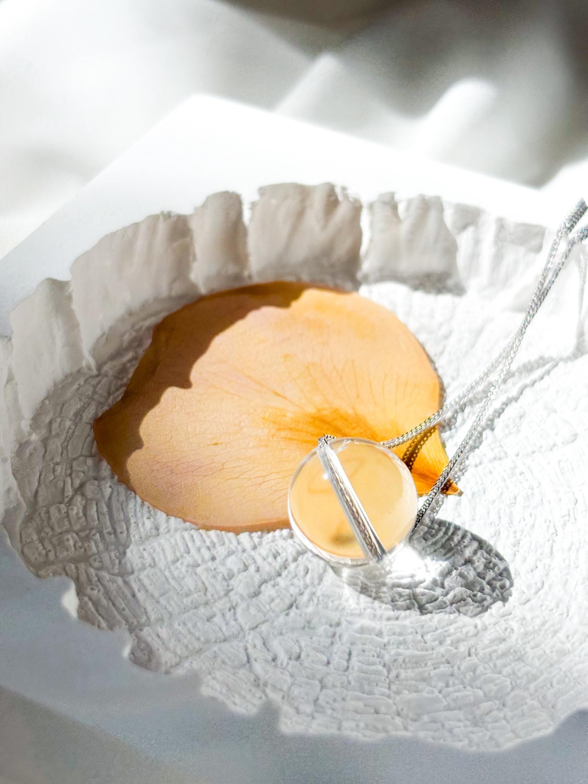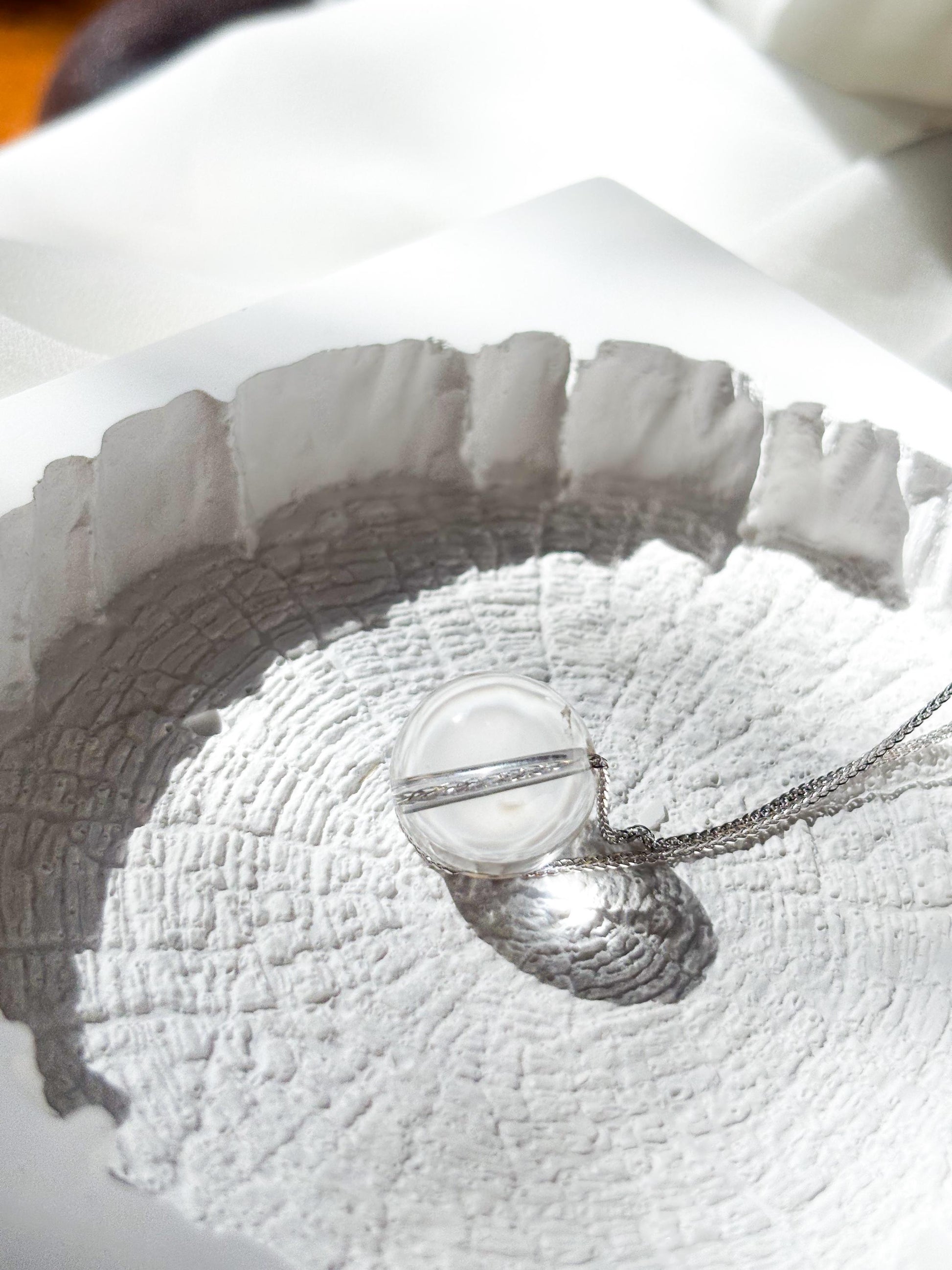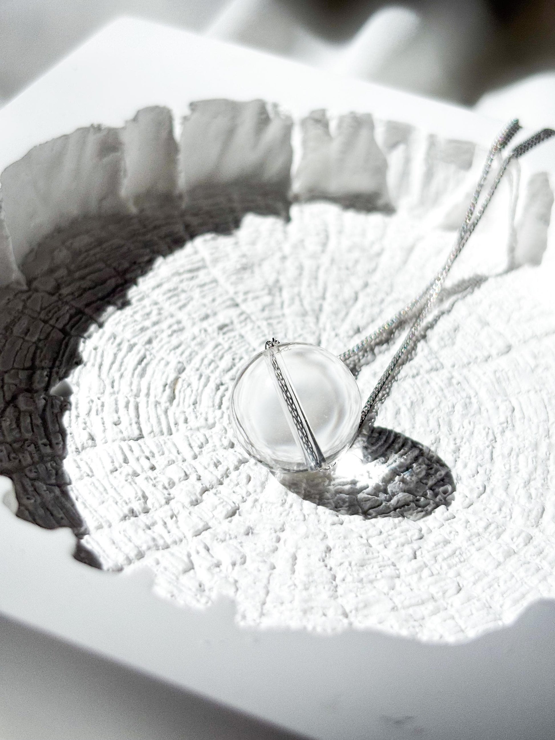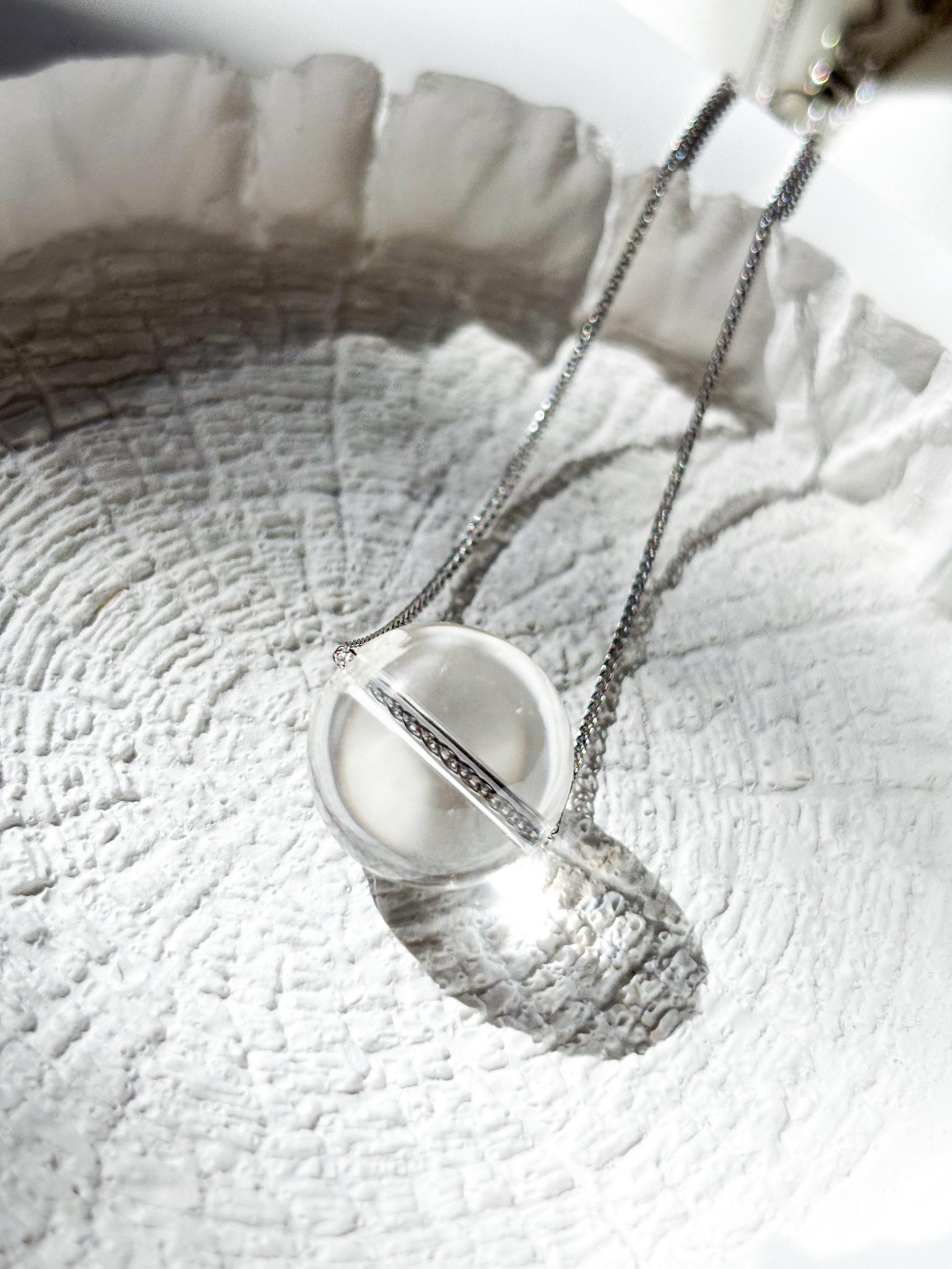 Minimalist Sterling Silver Necklace with Clear Quartz Crystal Ball Pendant-45cm Layering Necklace