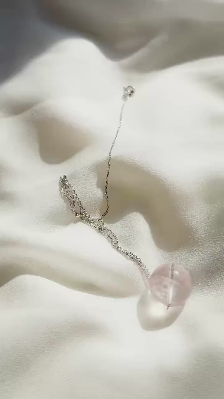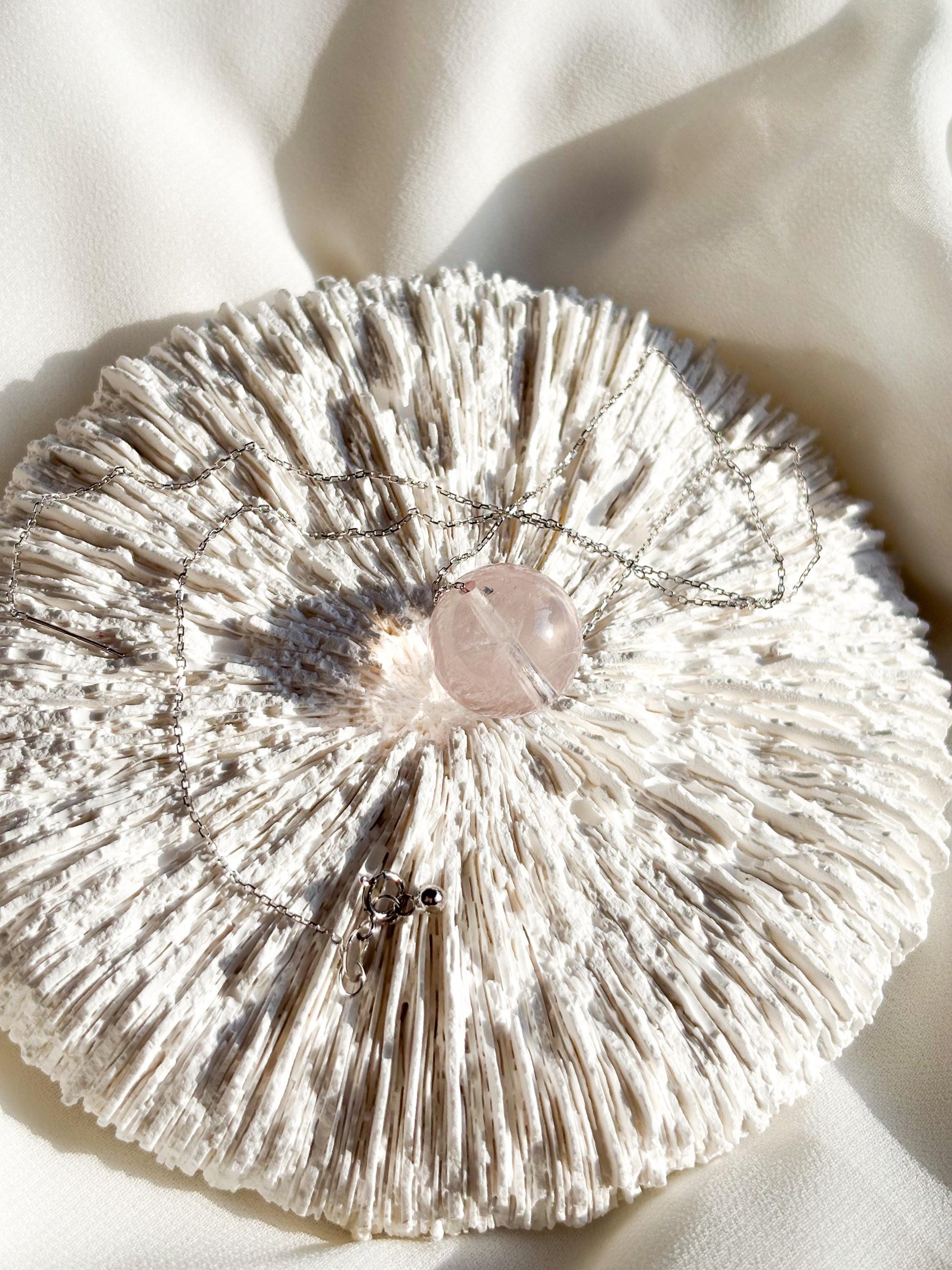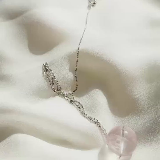 Minimalist Sterling Silver Necklace with Rose Quartz Crystal Ball Pendant-45cm Layering Necklace