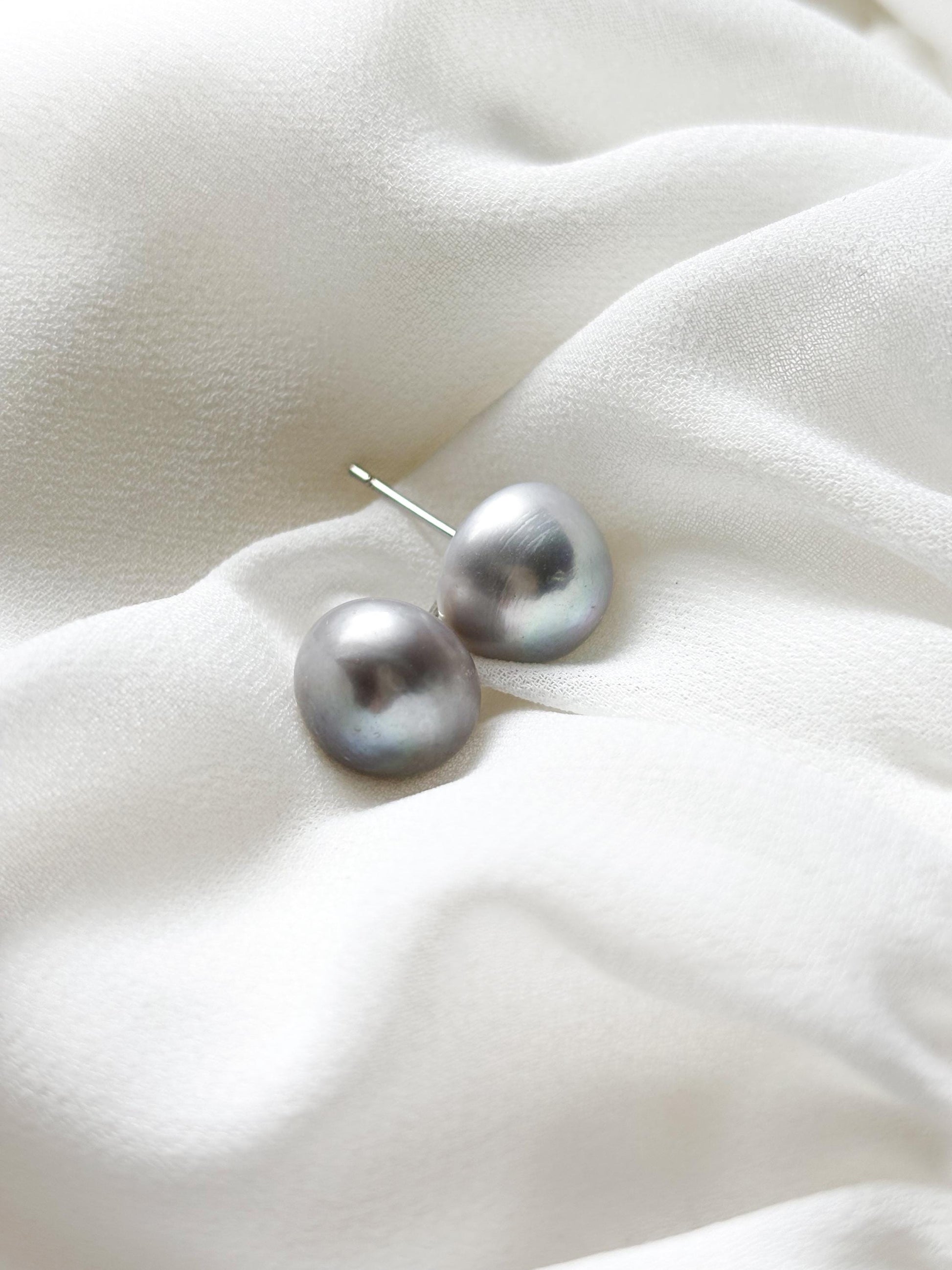 Moonlit Dew – Matte Grey Baroque Pearl Stud Earrings