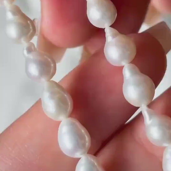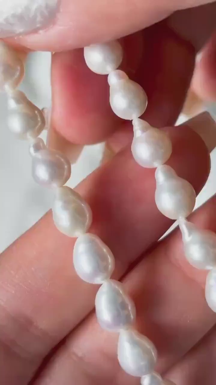 Moonlit Dew – White Baroque Teardrop Pearl Necklace (AAA Luster)