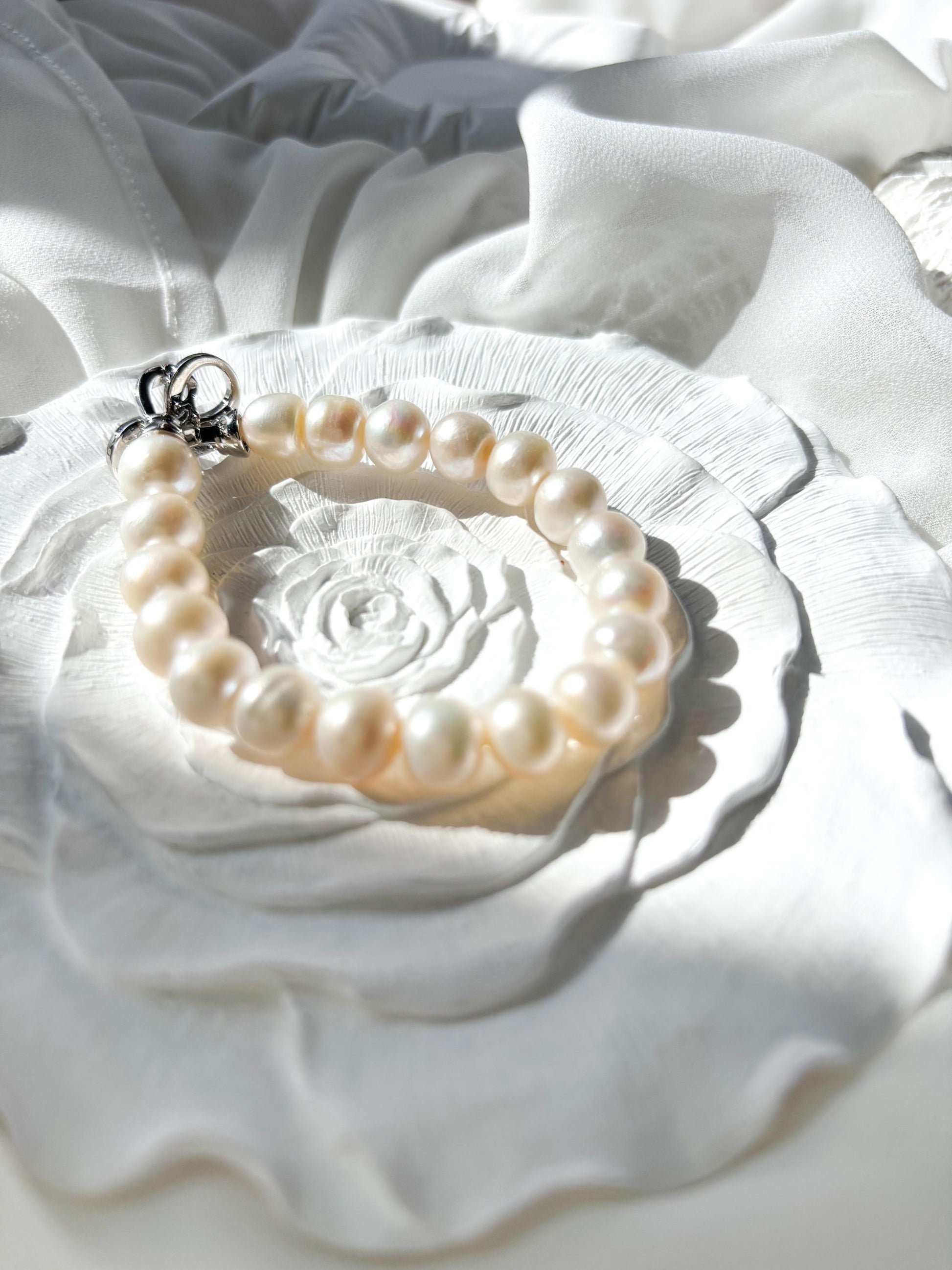 Moonlit Grace – White Freshwater Pearl Bracelet