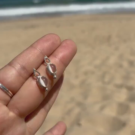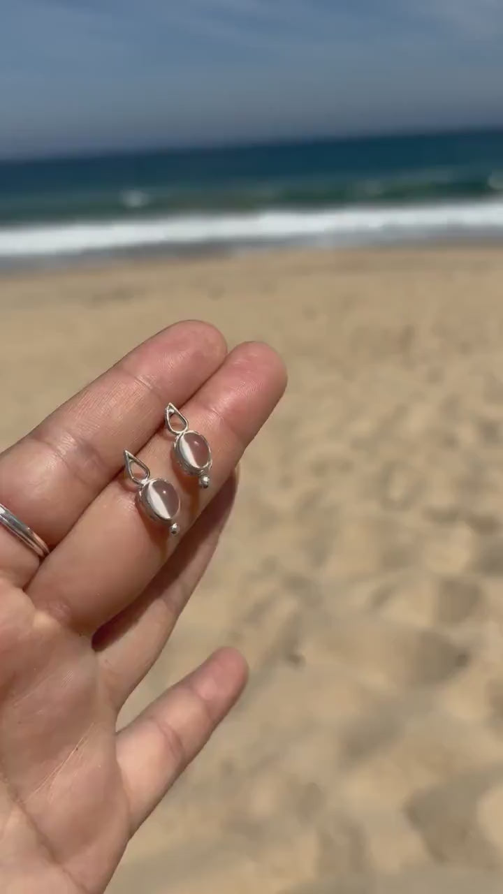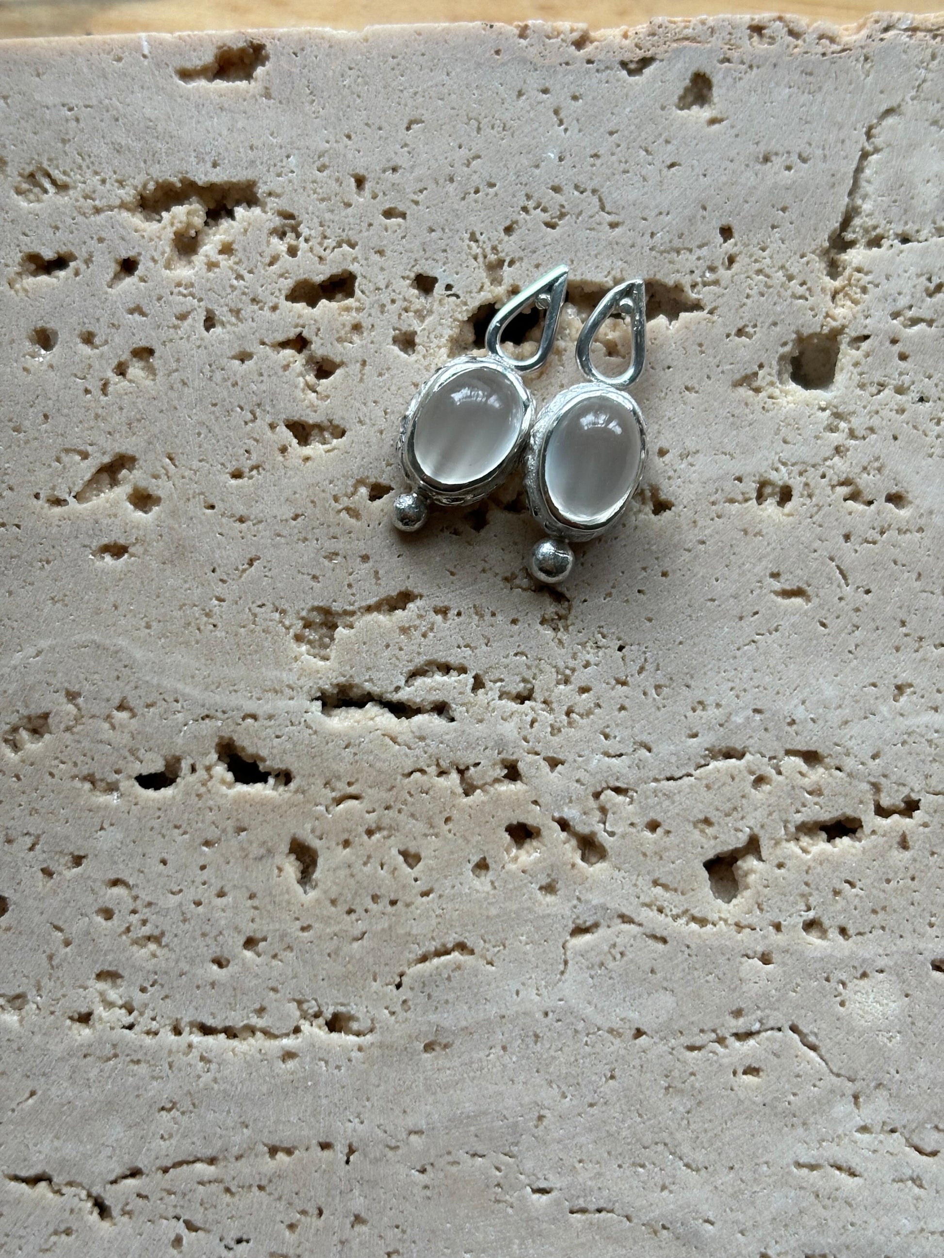 Natural crystal clear white moonstone elegant 925 sterling silver stud
