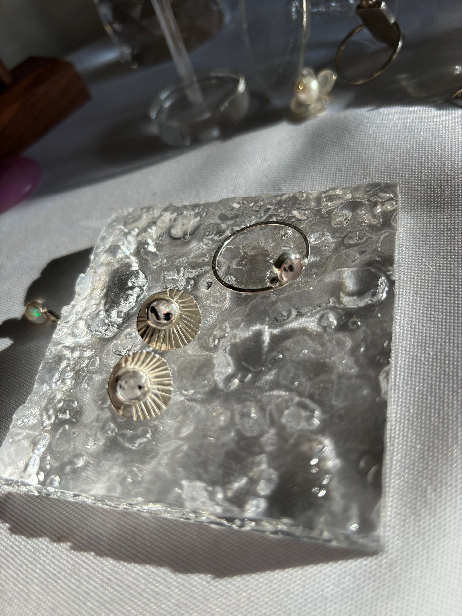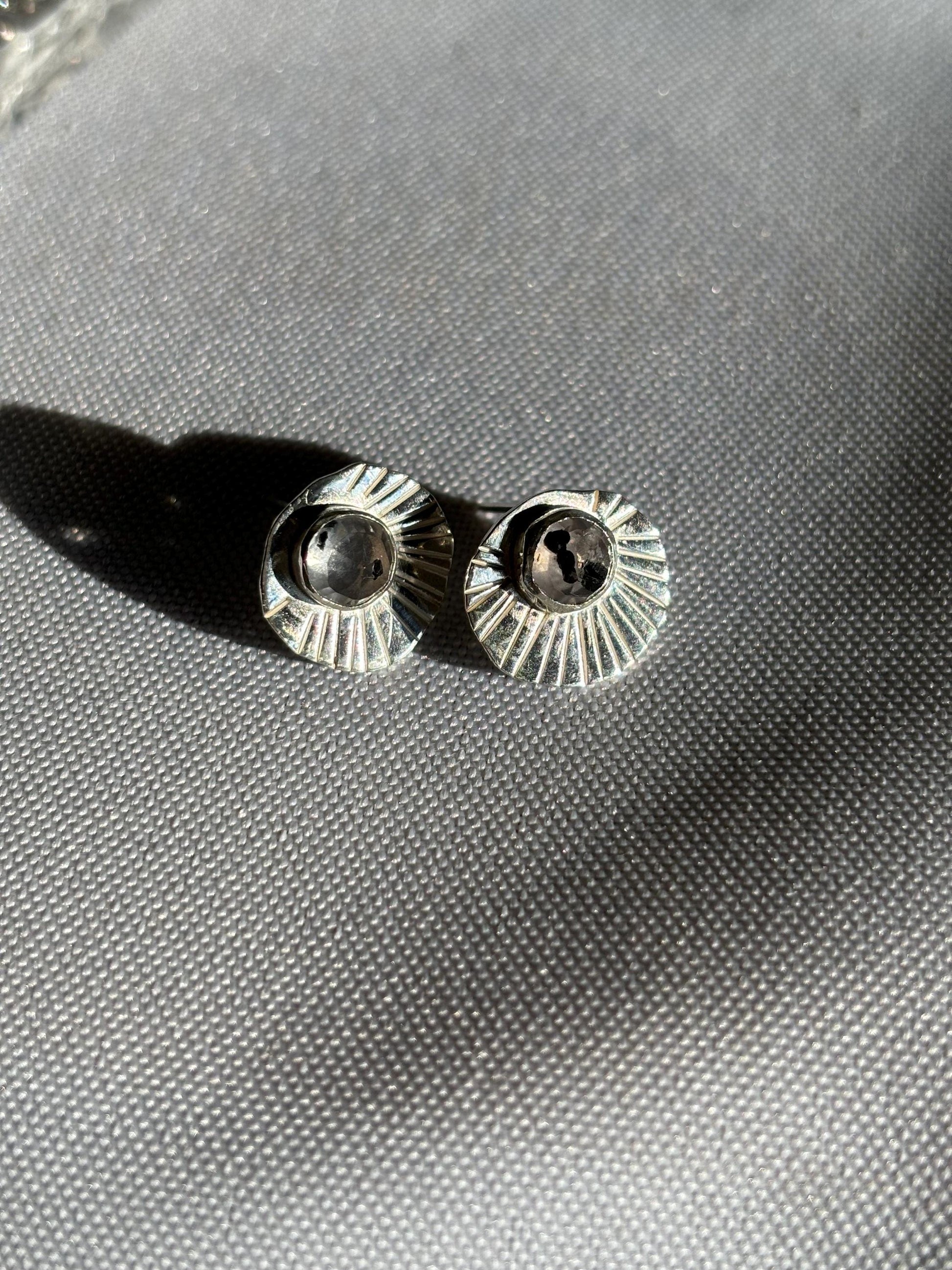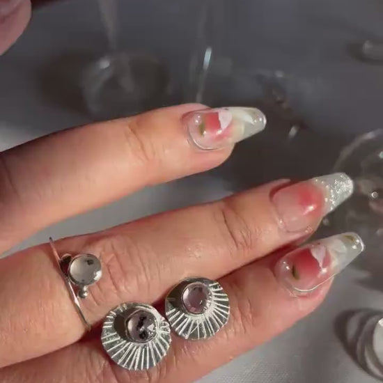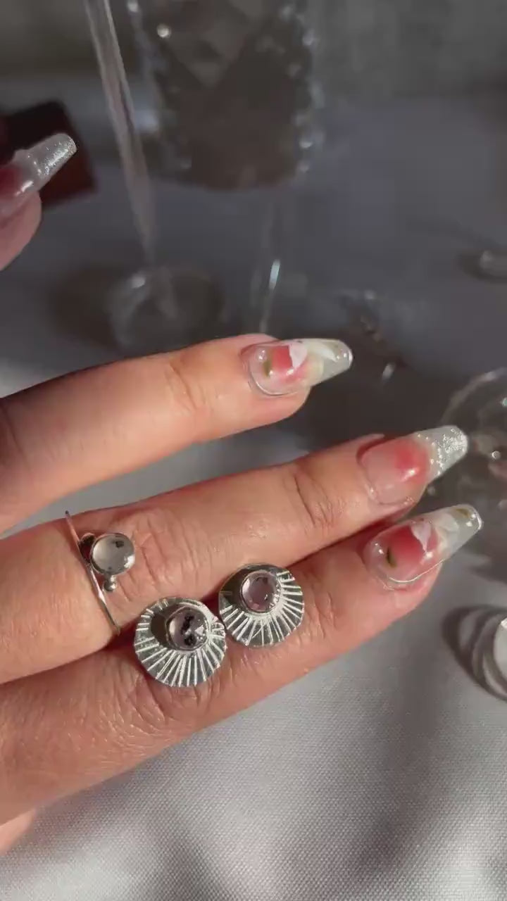 Natural Dalmatian Lepidocrocite Quartz textured palm leaf inspired 925 sterling silver studs
