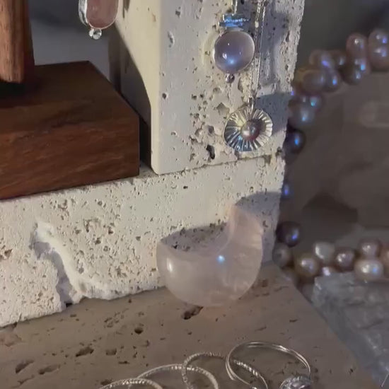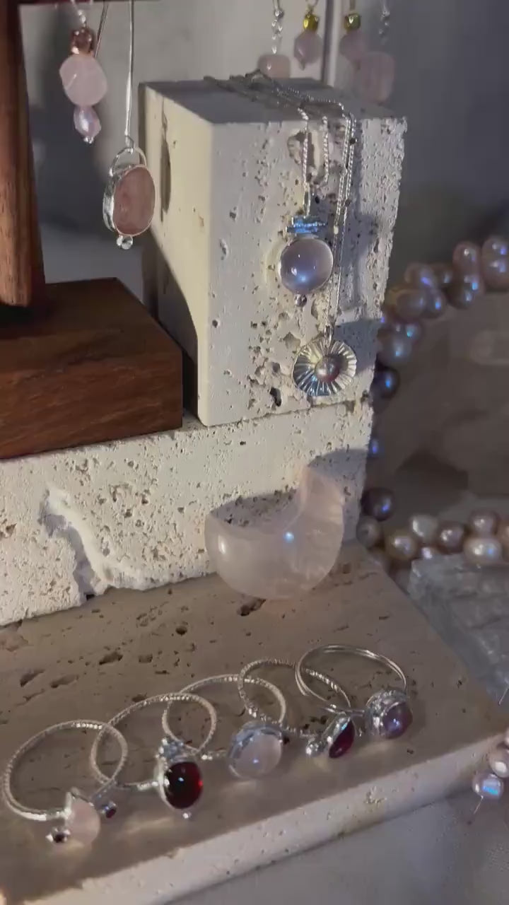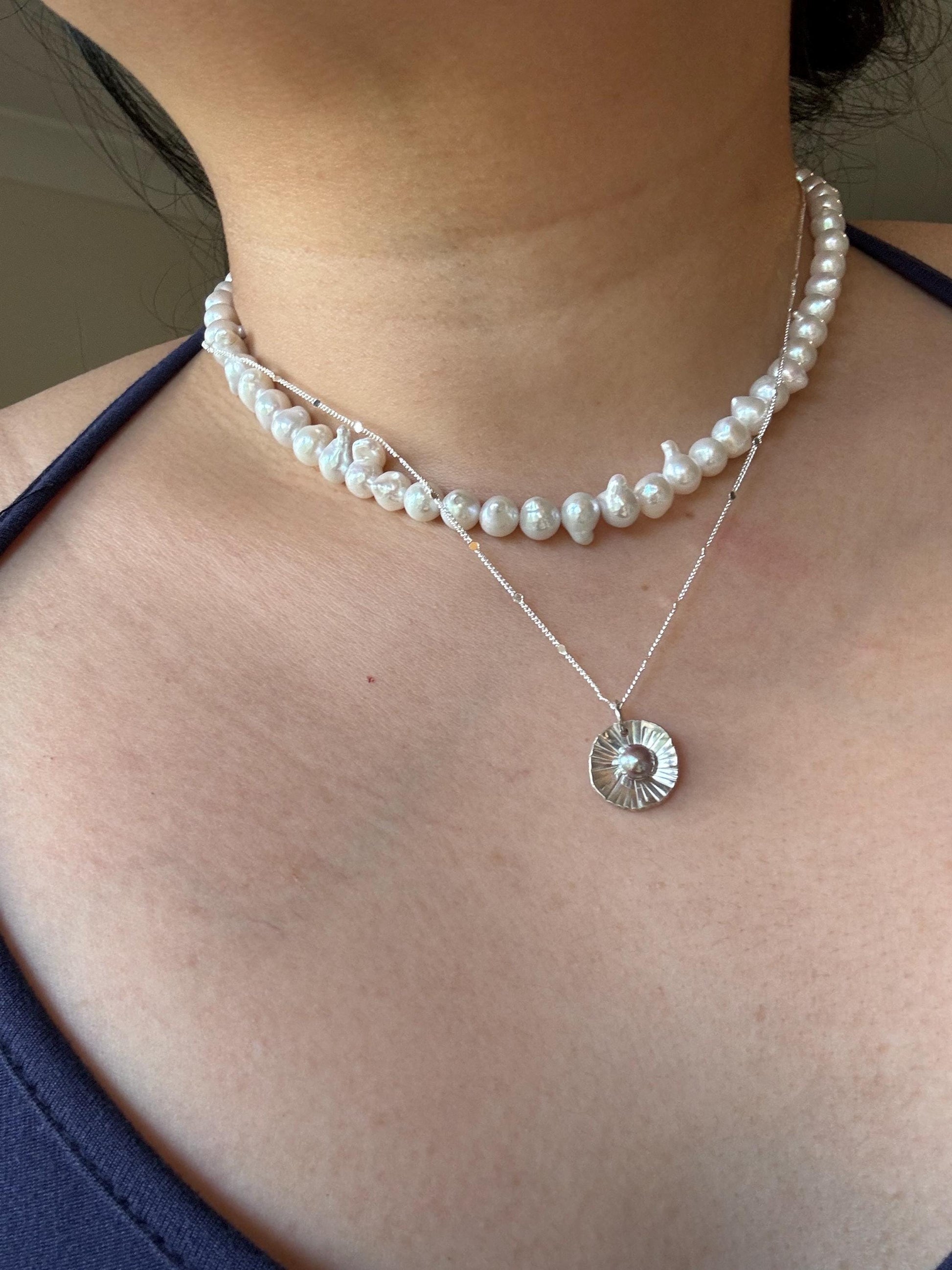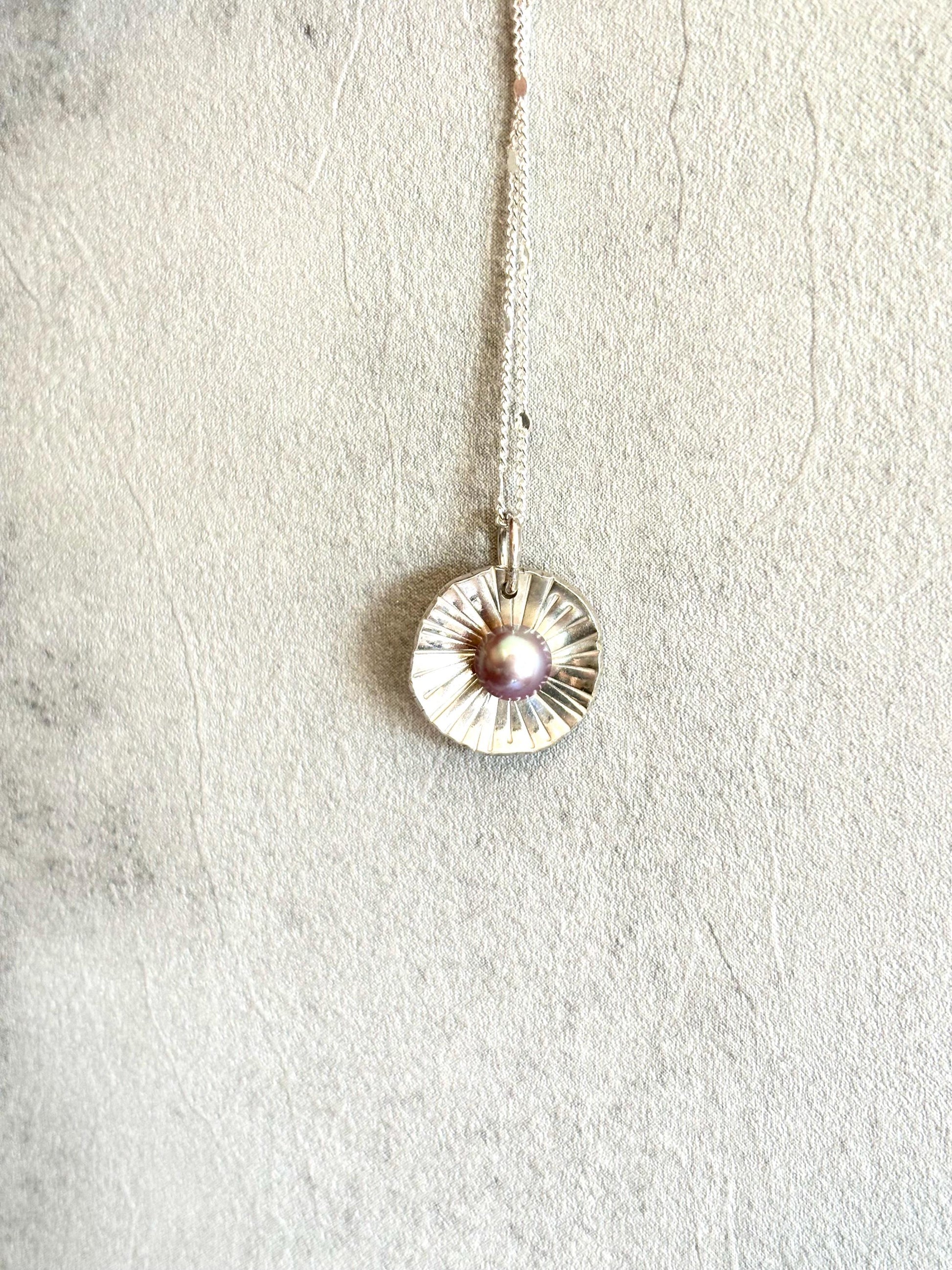 Natural Heather Pearl with Palm Leaf texture inspired 925 sterling silver necklace (AAA Luster)