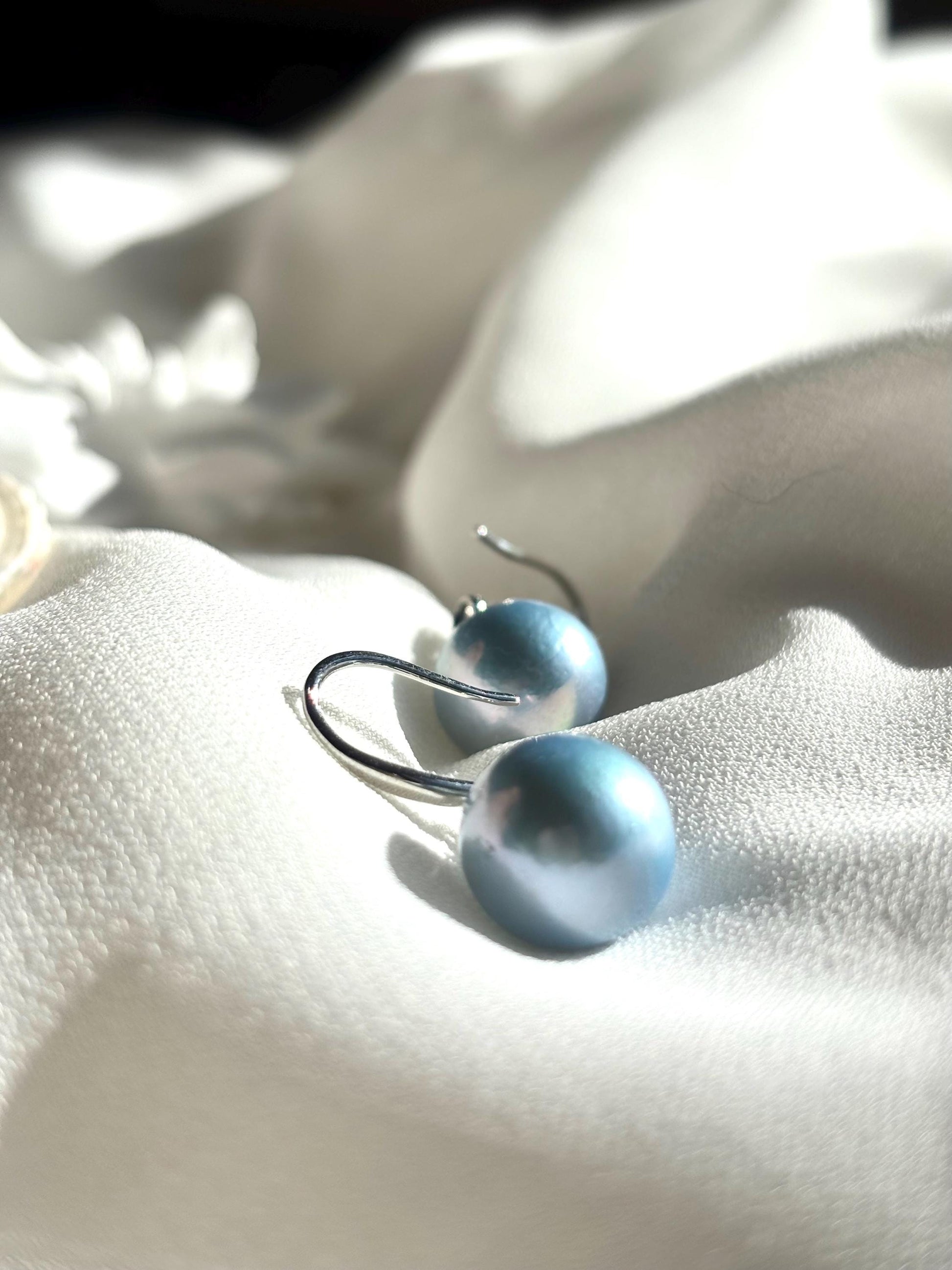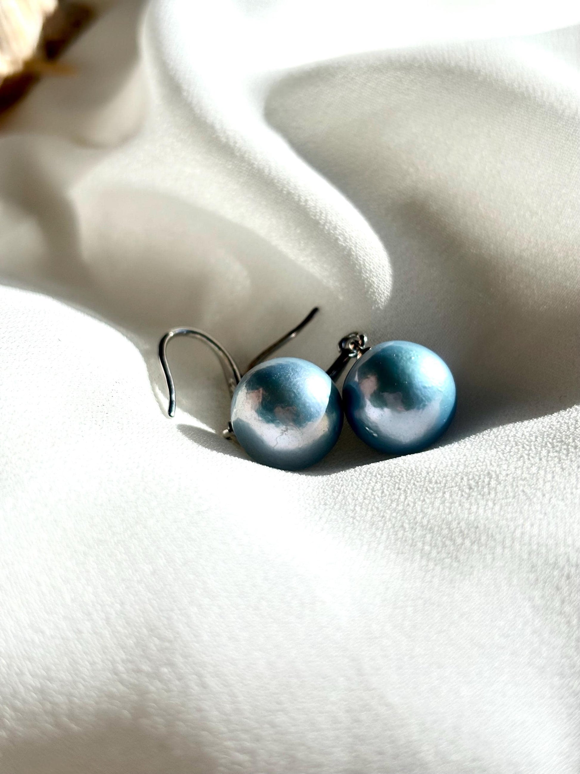 Ocean Haze – Blue Baroque Pearl Dangle Earrings