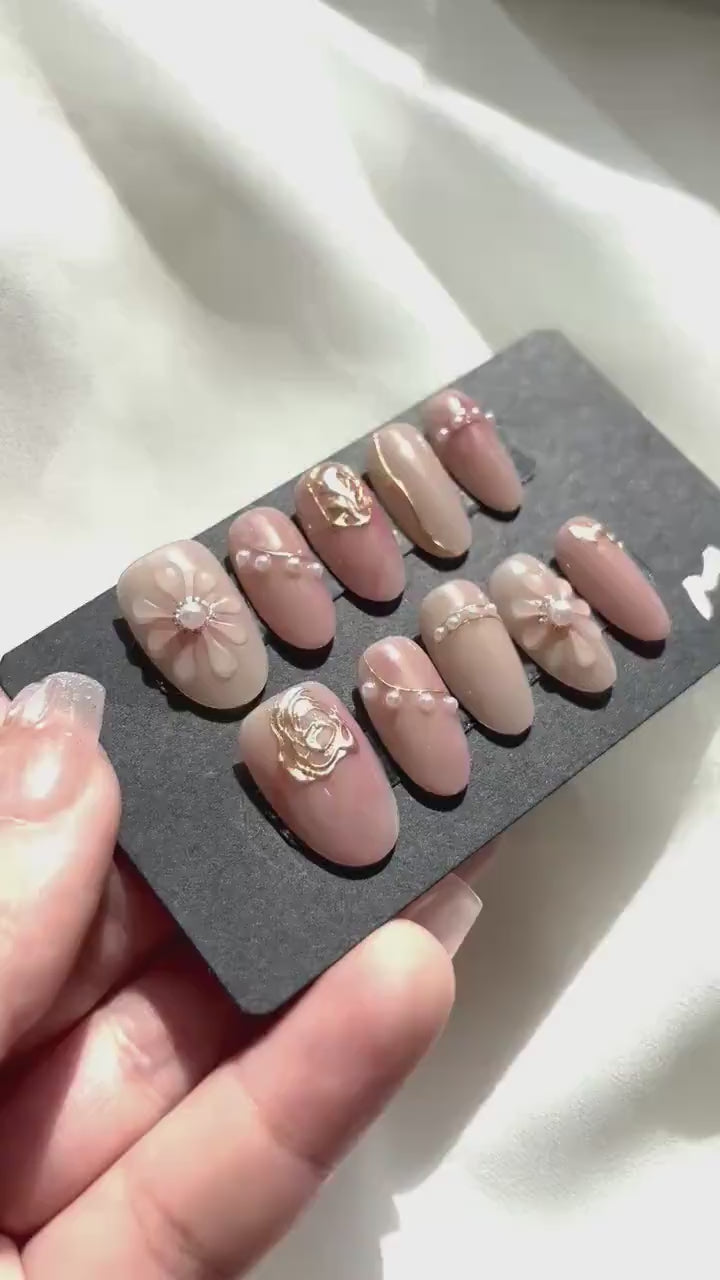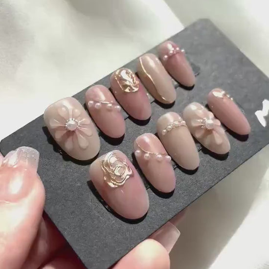 Peach Blossom Pearl Elegance Press-On Nail Set ( M available )