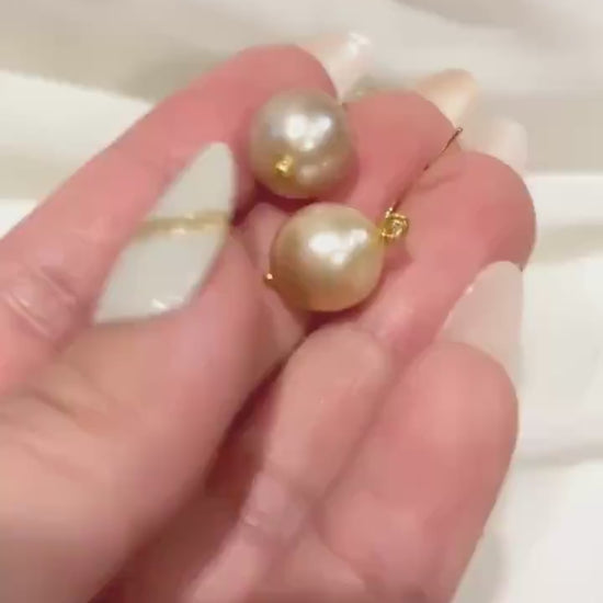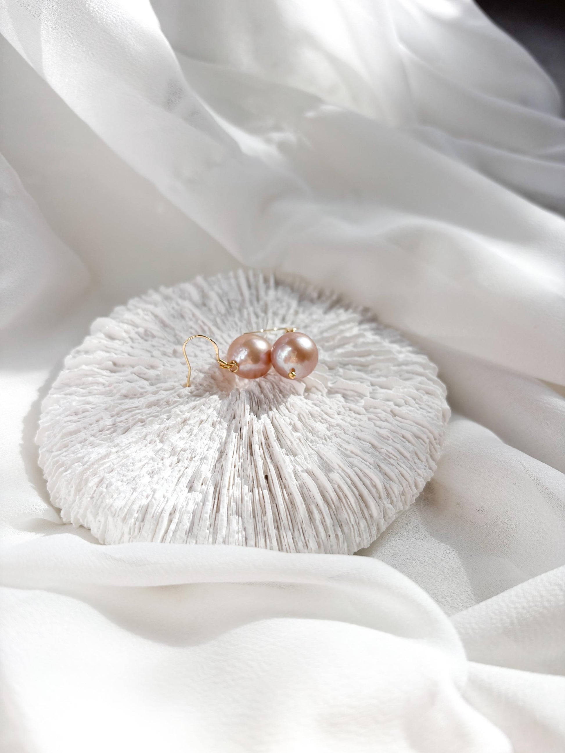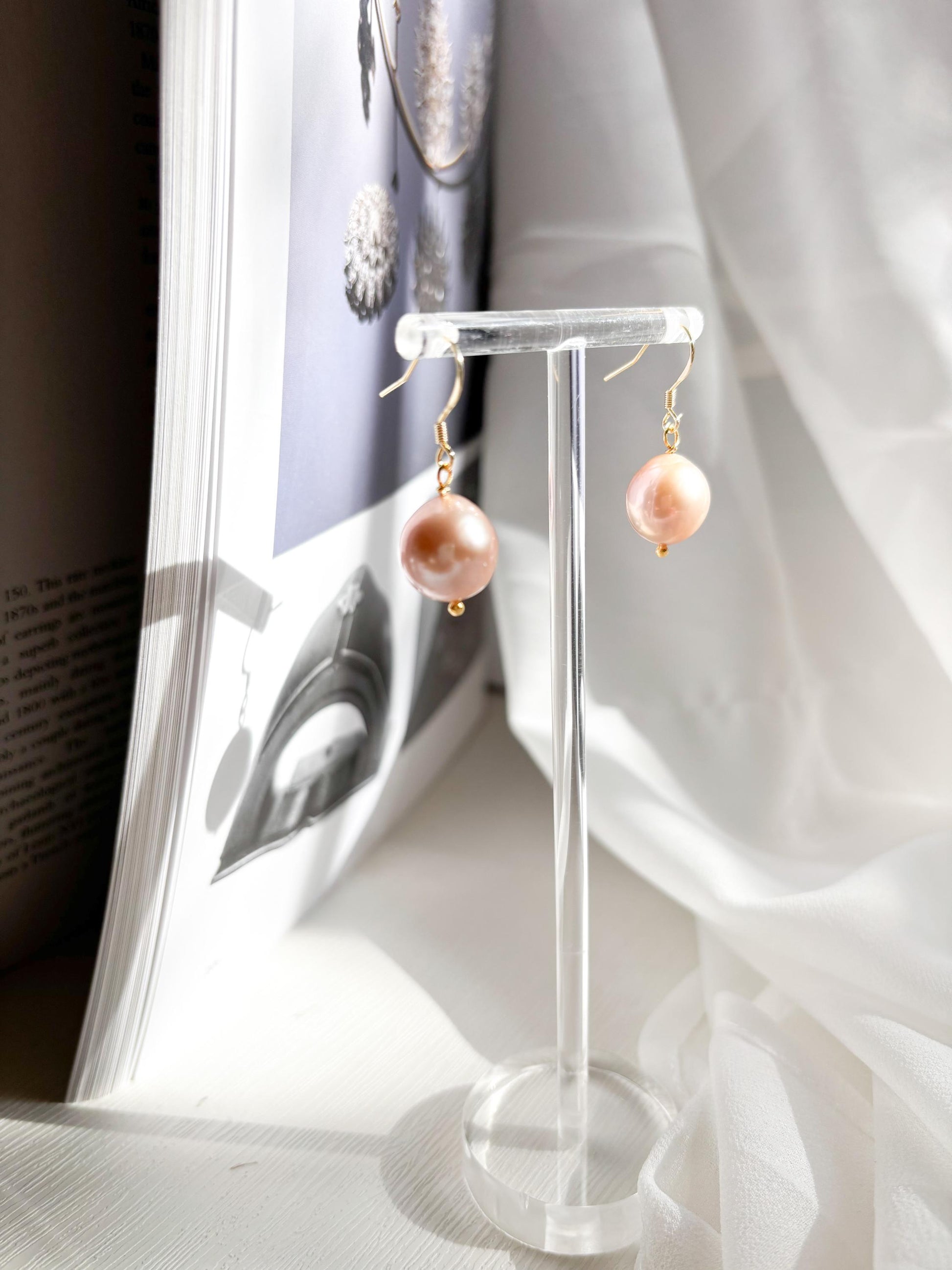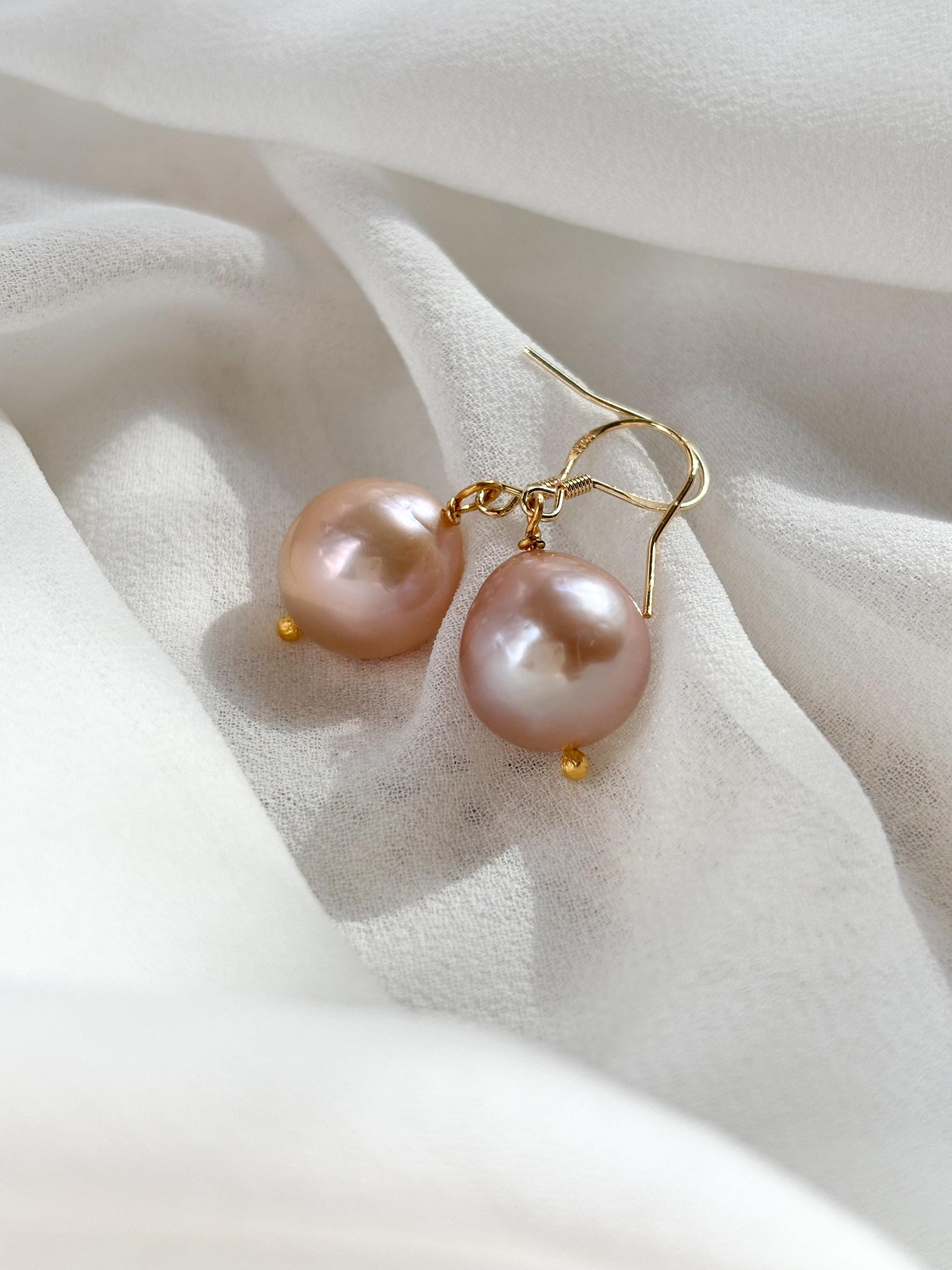 Peach Glow – Gold-Plated Edison Pearl Dangling Earrings