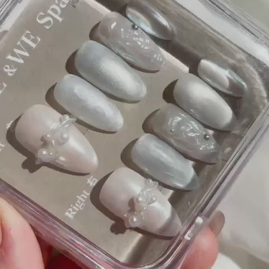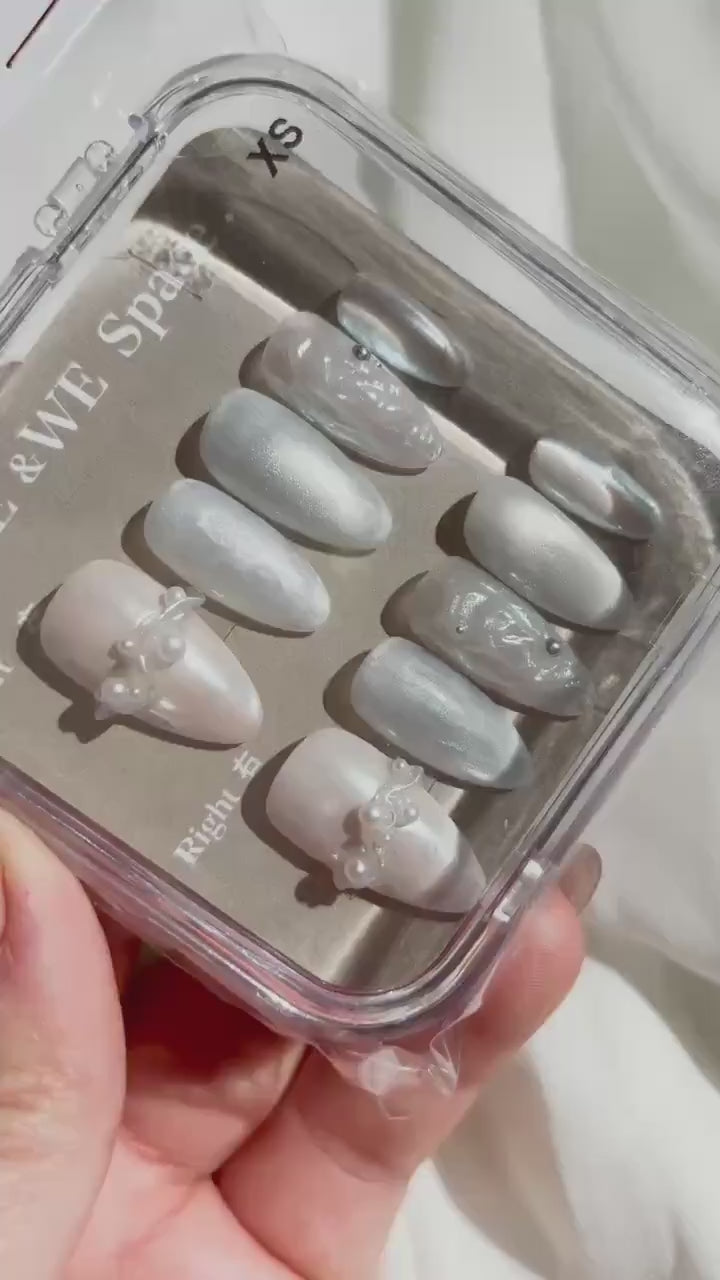 Pearls in splashing water press-on nail (Middle Almond) Only XS available