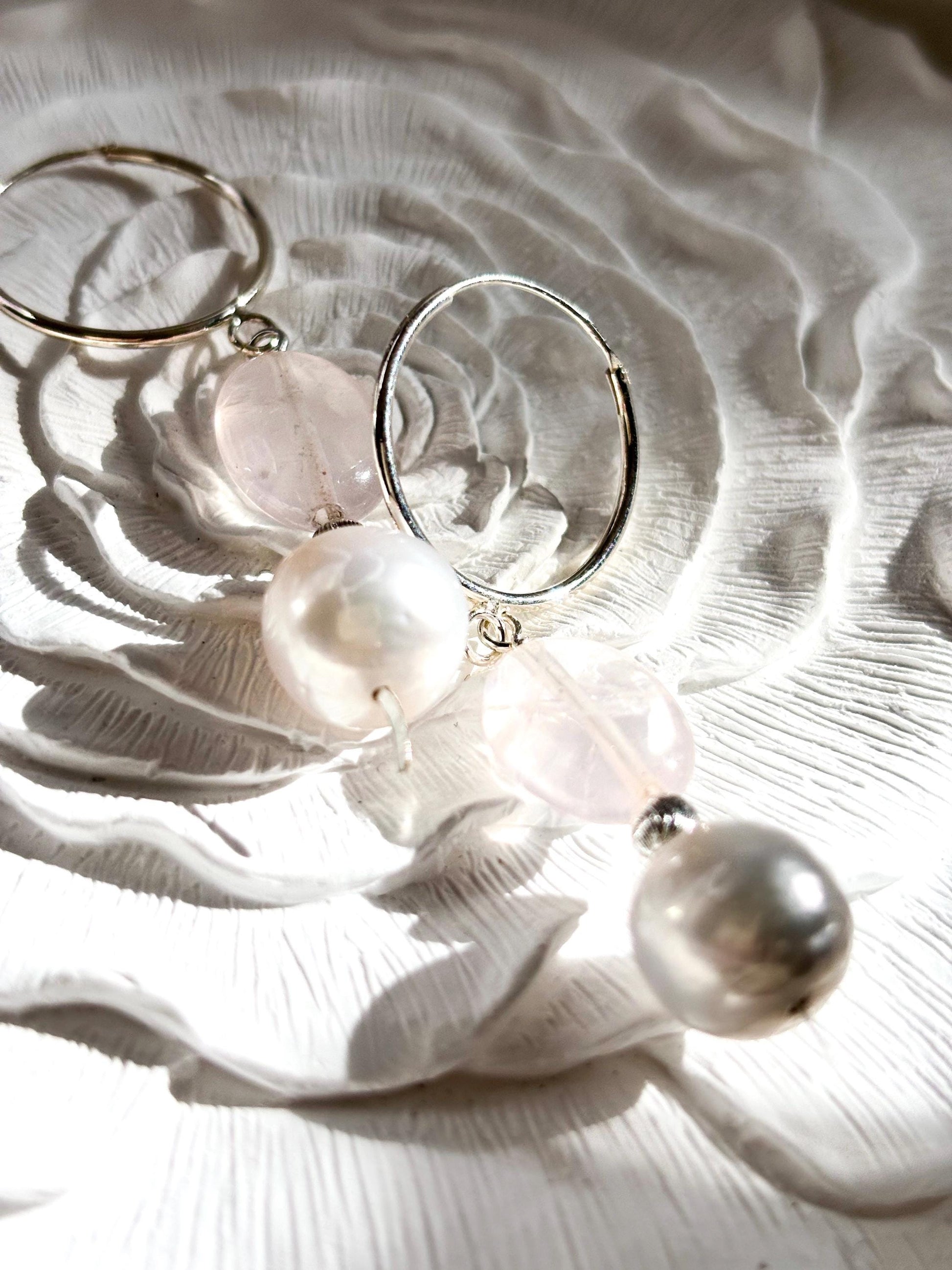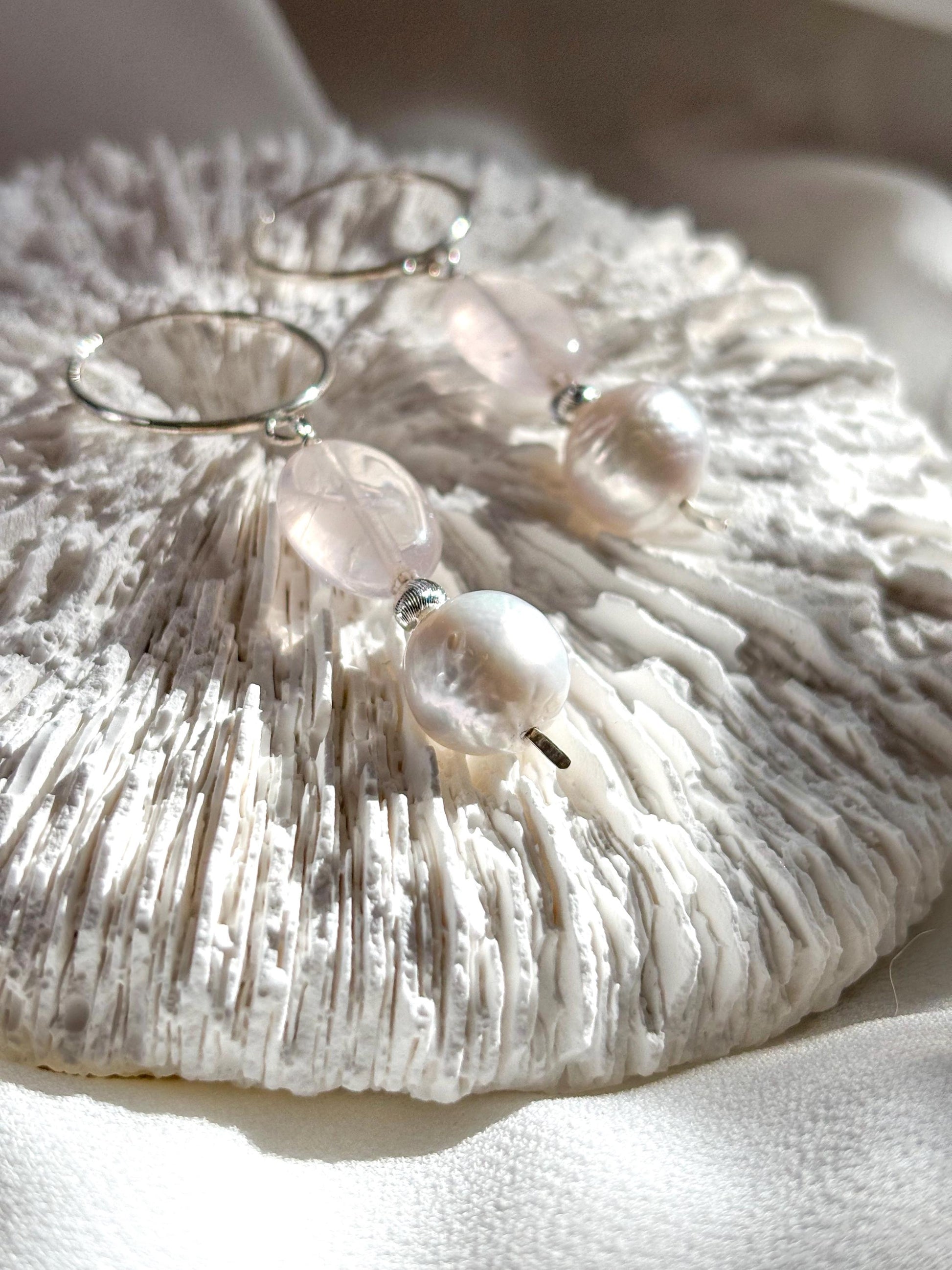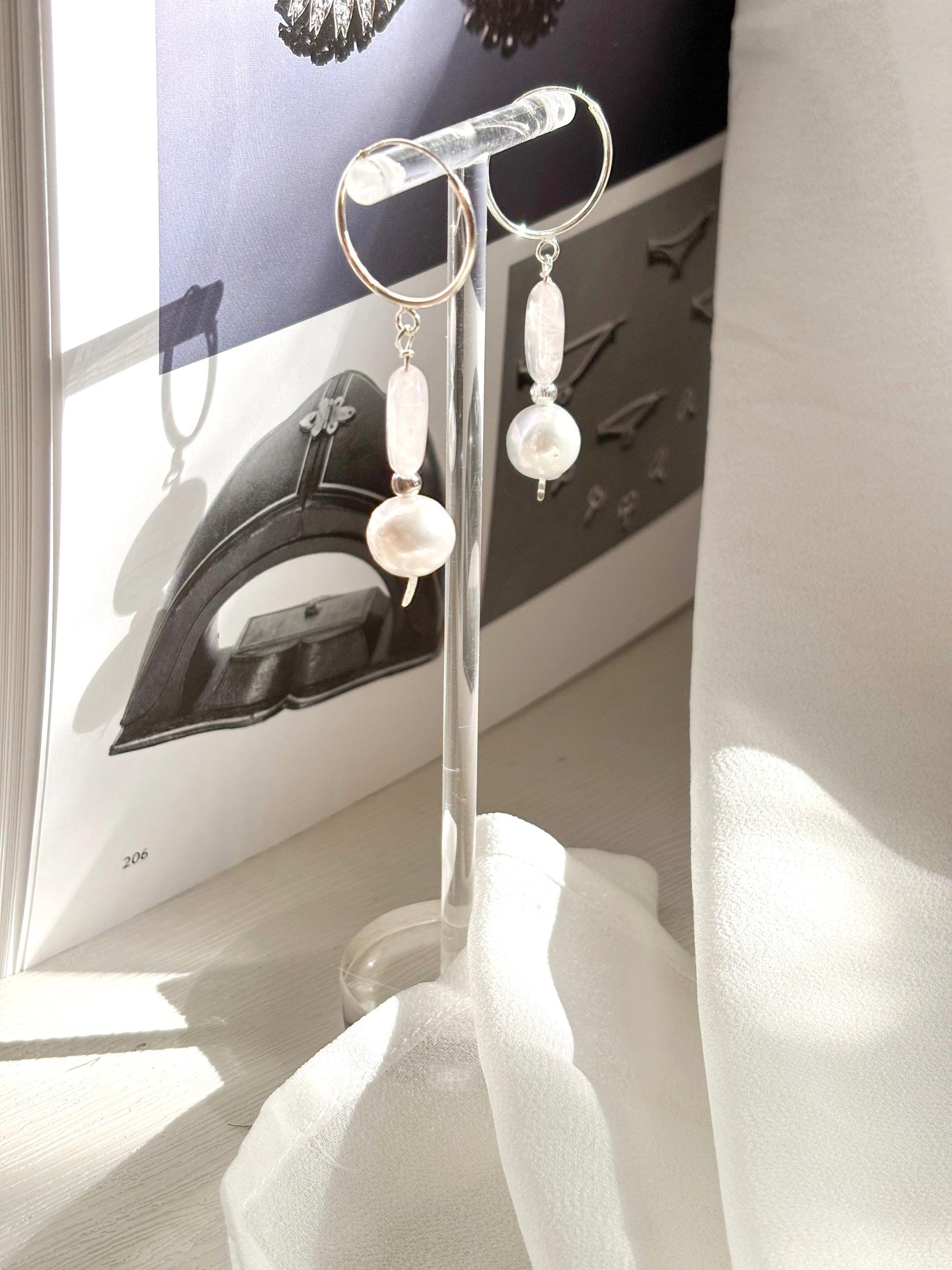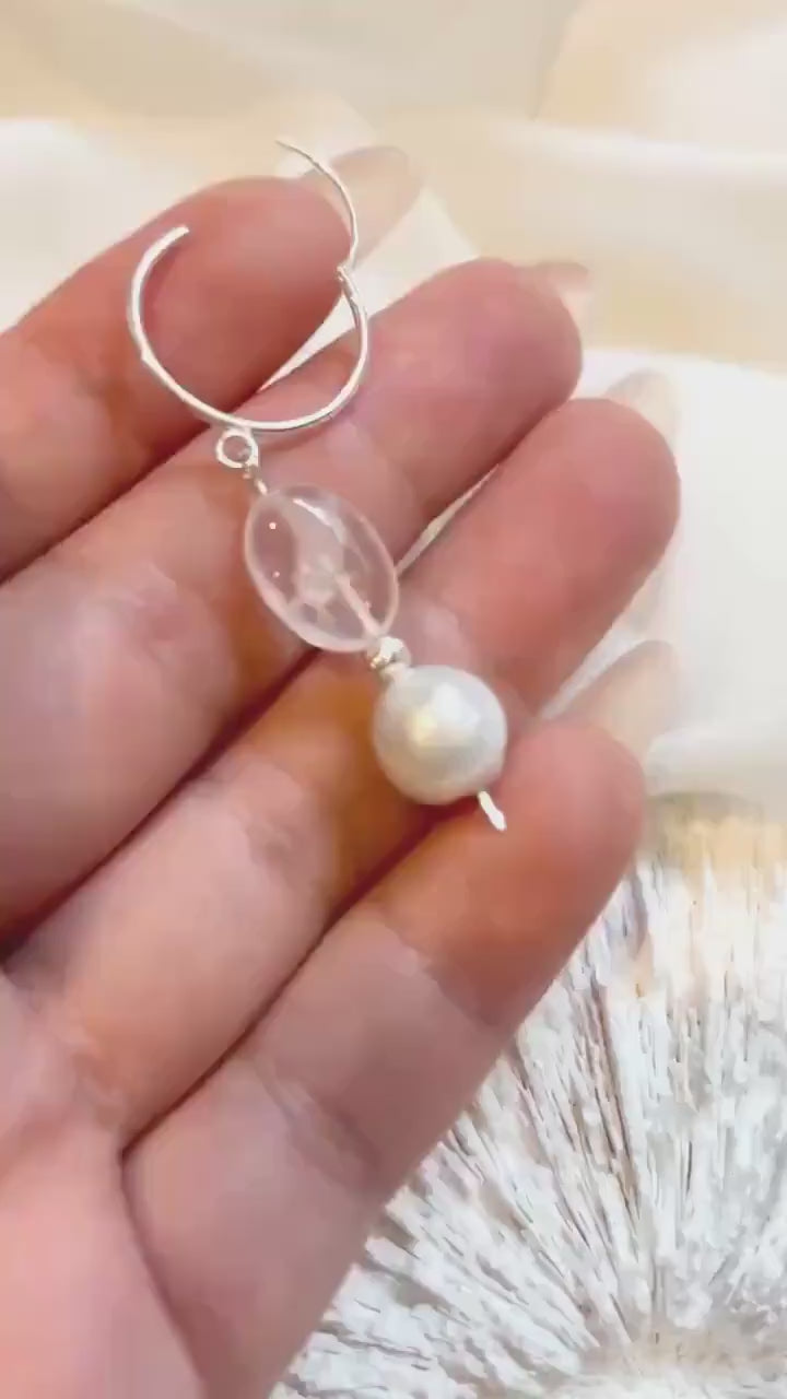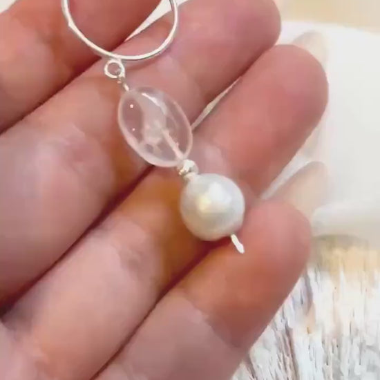 Serenity Blossom – Sterling Silver Huggie Earrings with Baroque Pearl and
