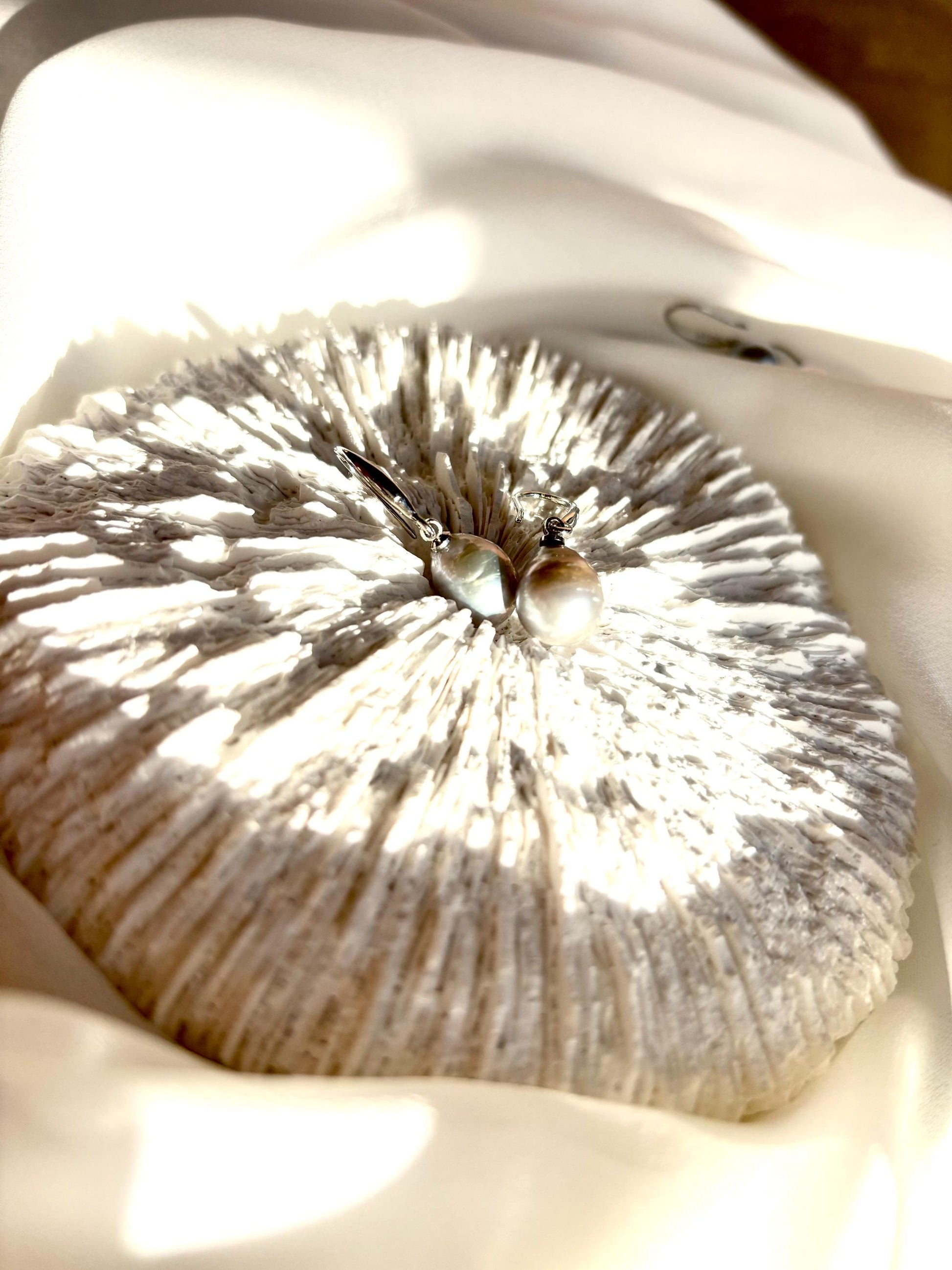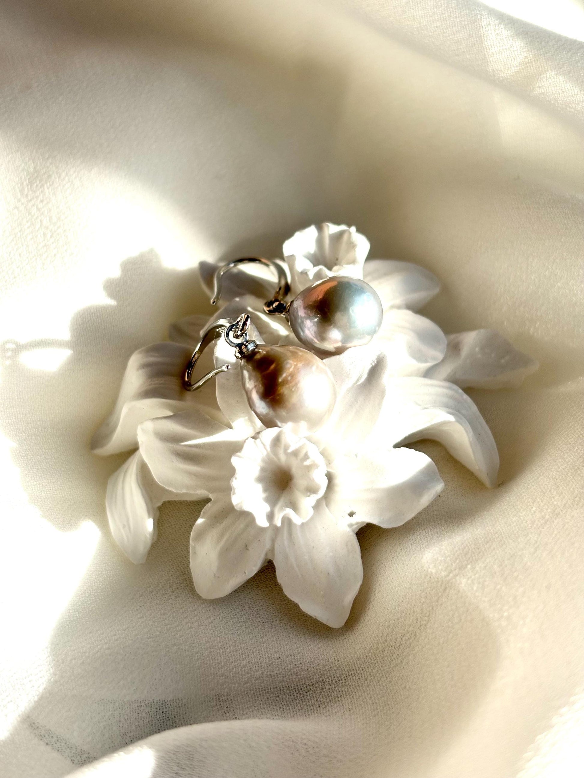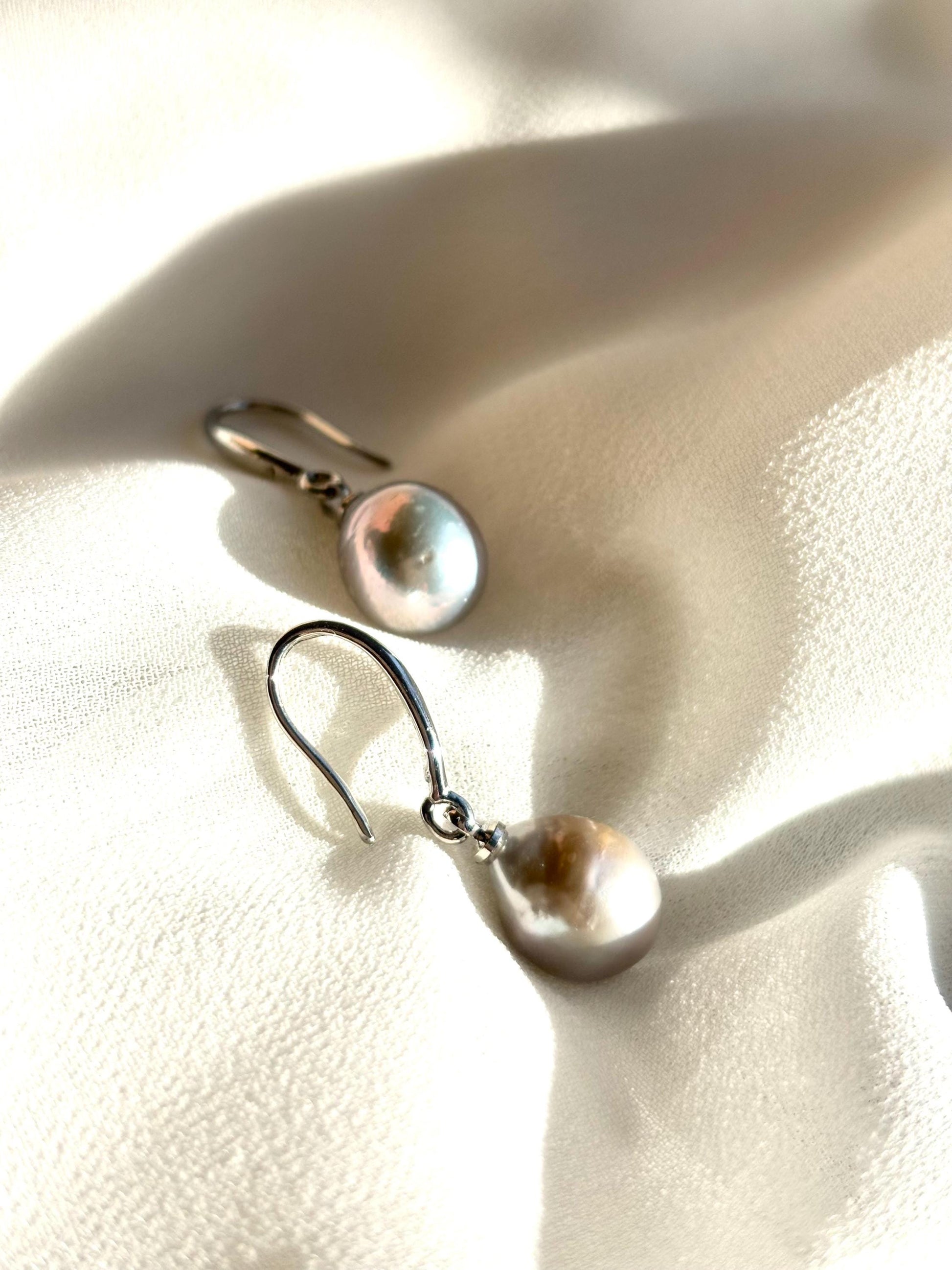 Silver Fern – Grey Baroque Teardrop Pearl Drop Earrings