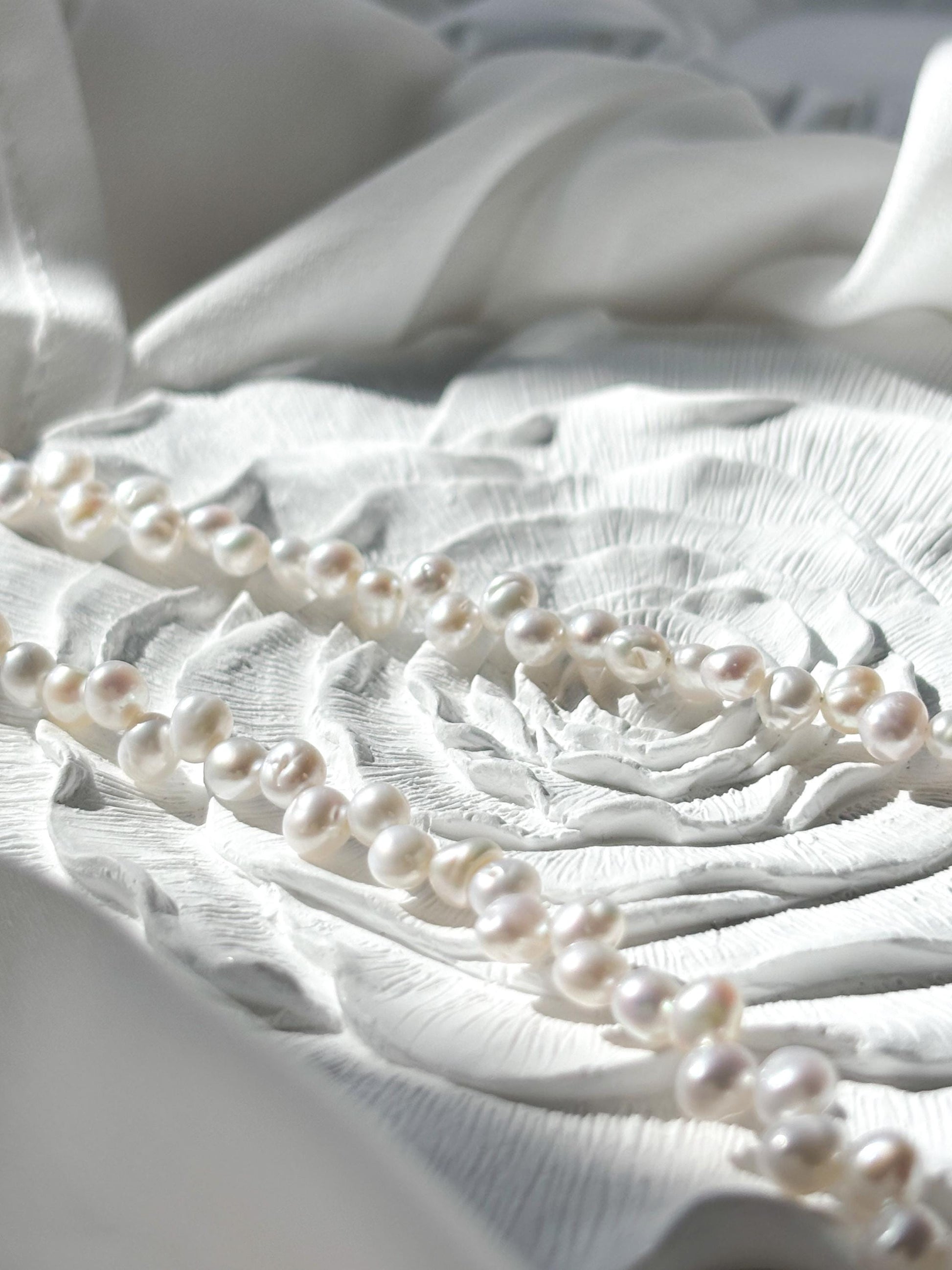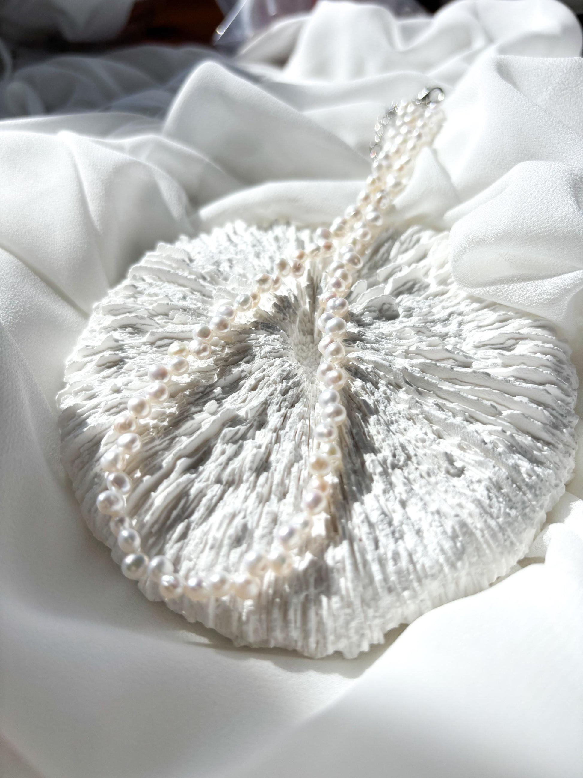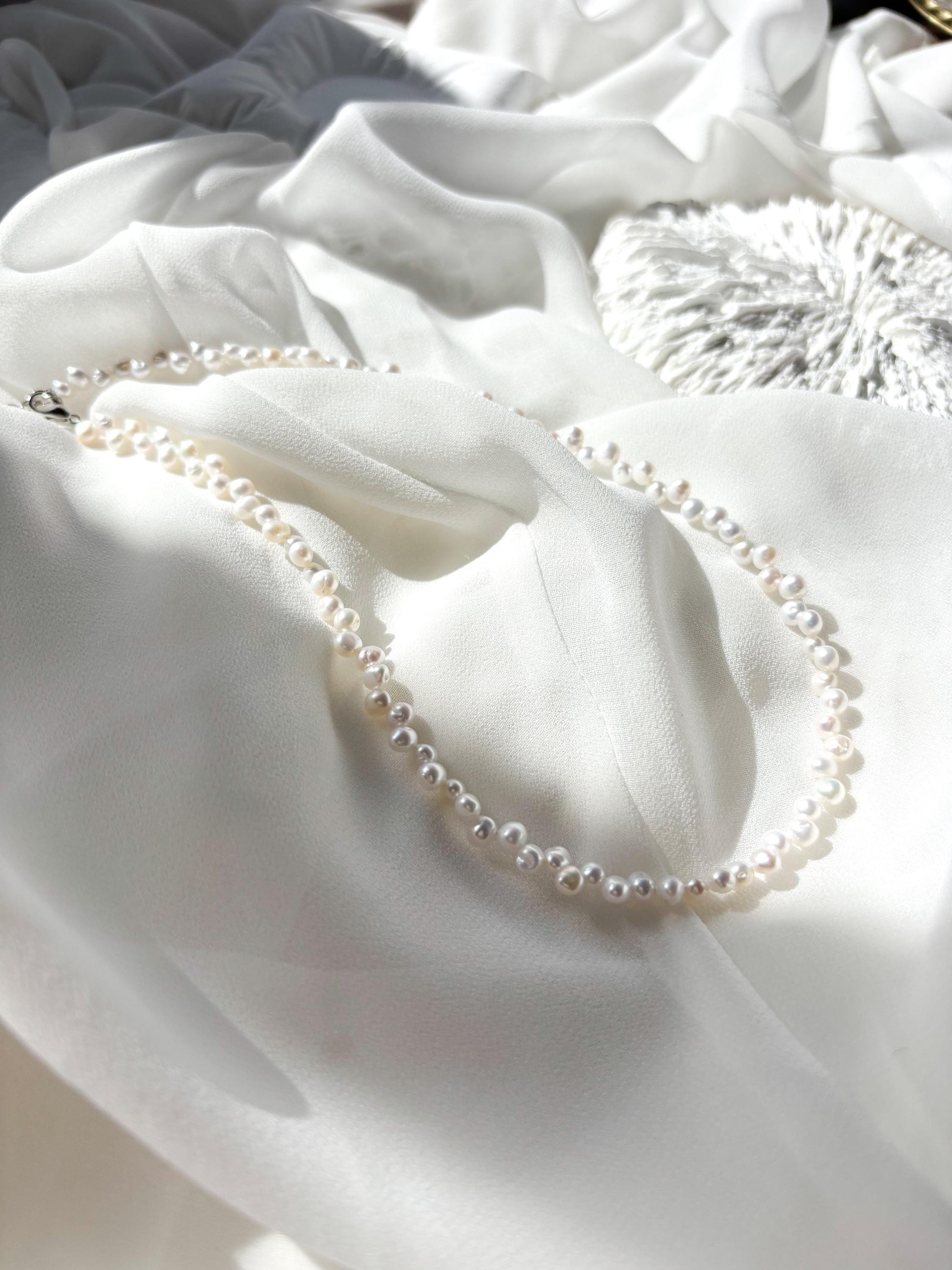 Snow Petal – Staggered White Freshwater Pearl Necklace