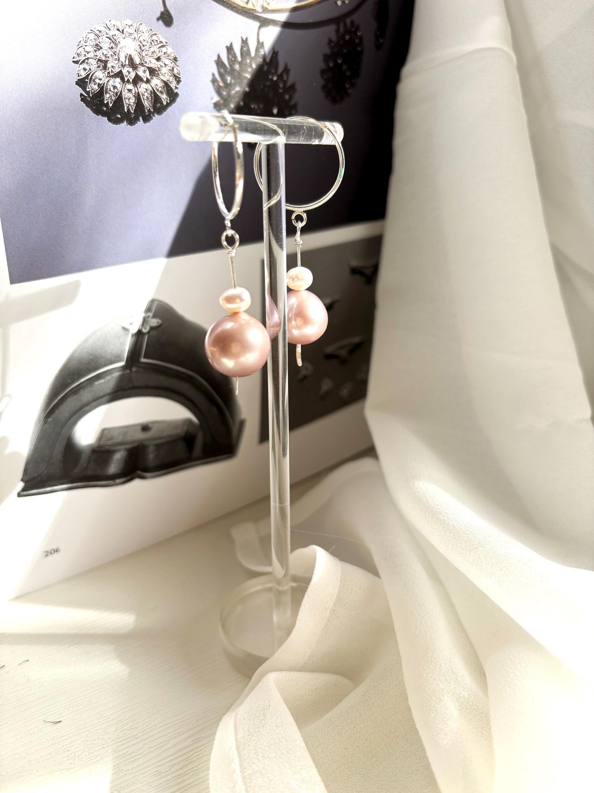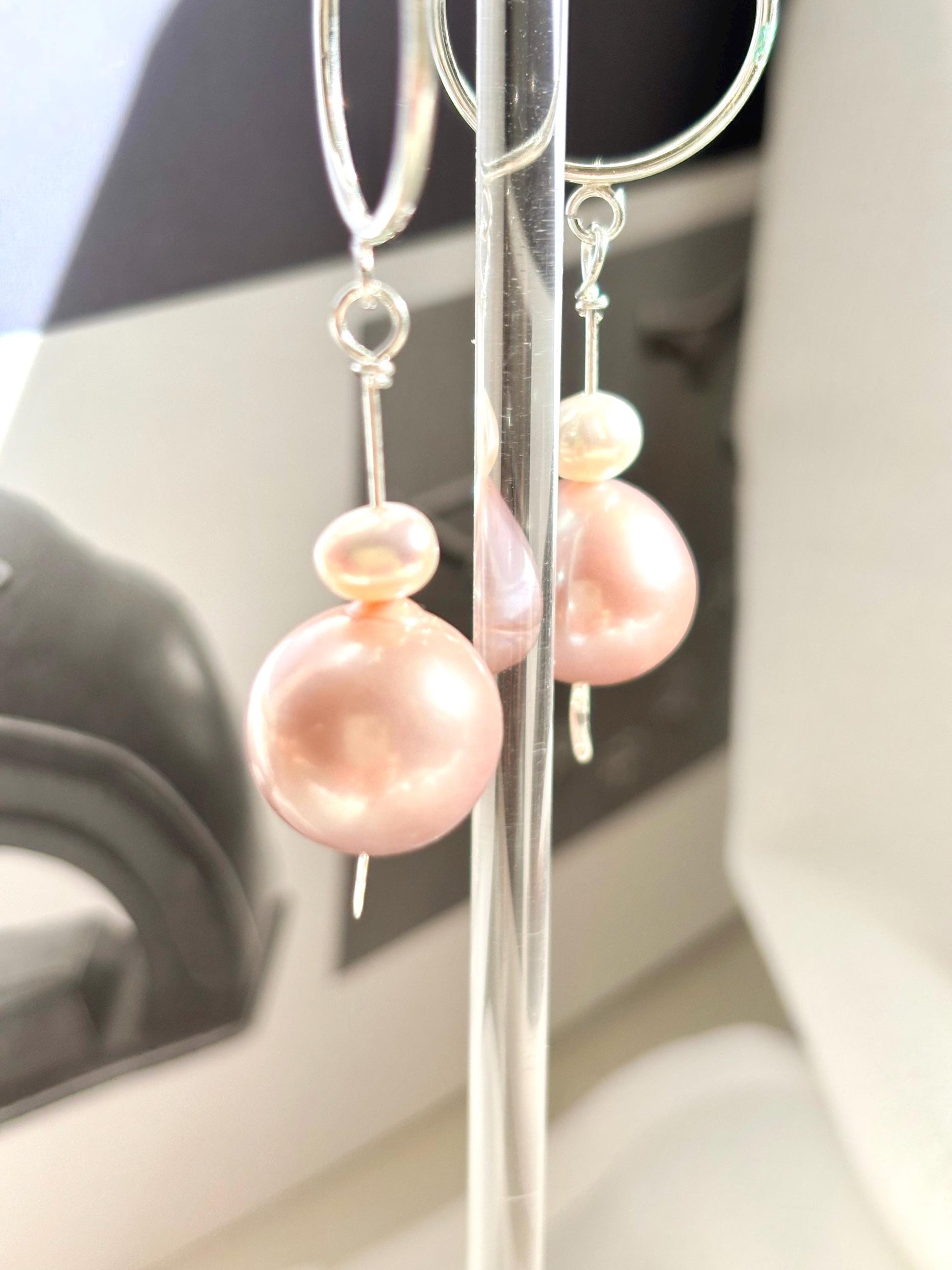 Snowy Whimsy – Sterling Silver Edison and Freshwater Pearl Huggie Earrings
