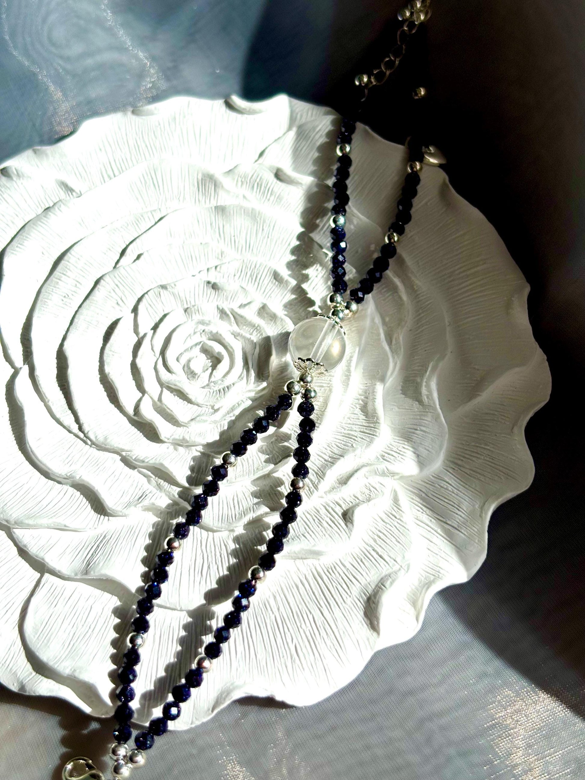 Starlit Elegance Blue Goldstone and Clear Quartz Bracelet.