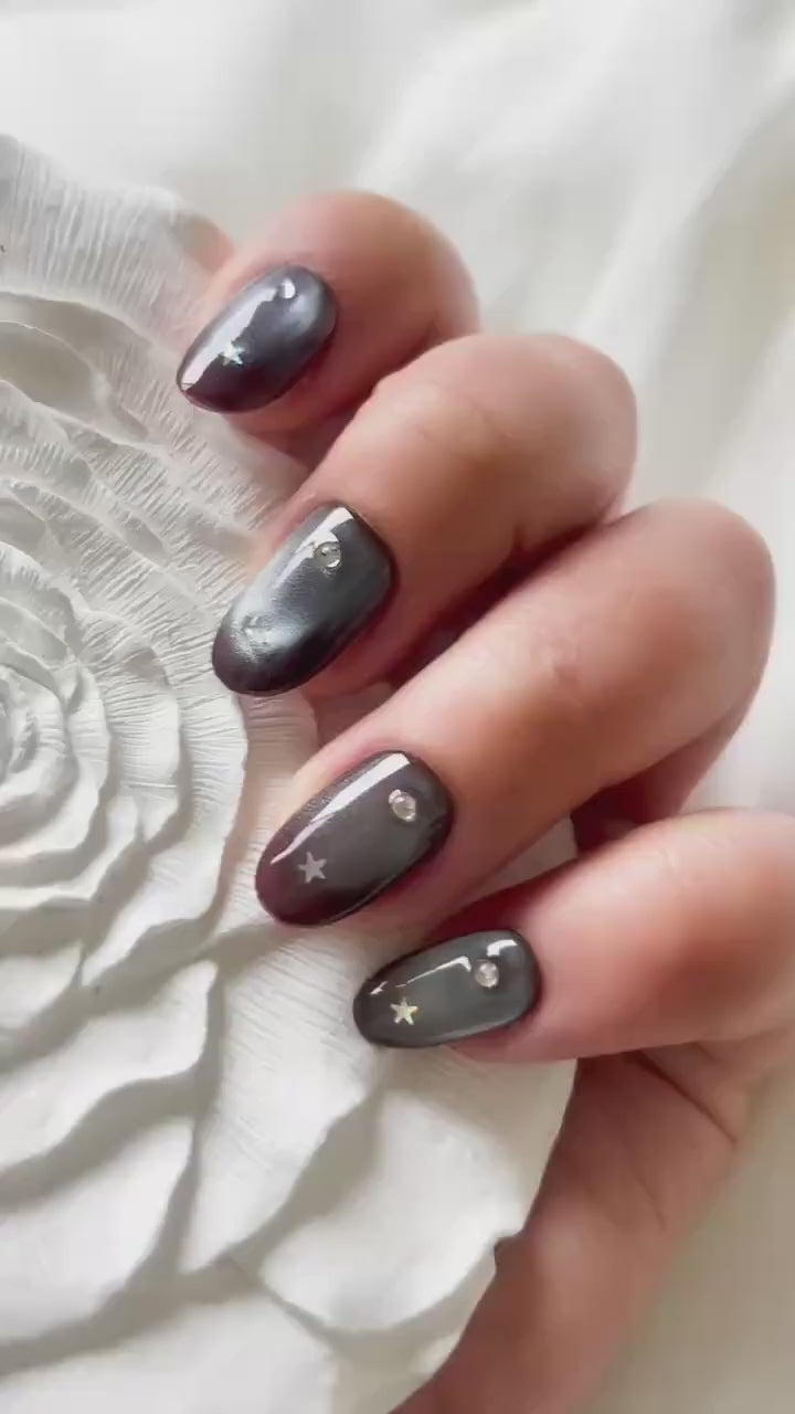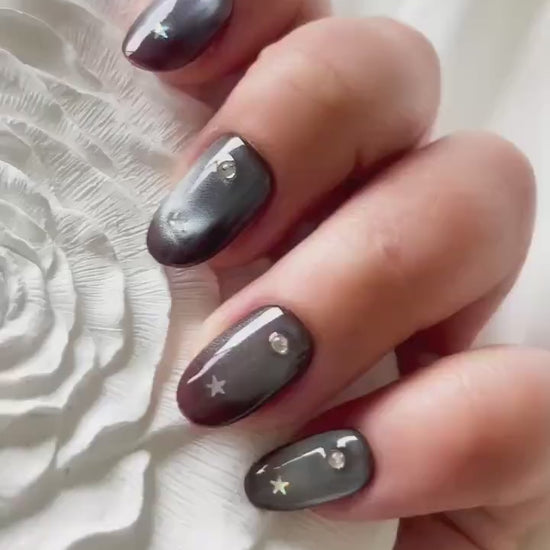 Starlit Void – Glow-in-the-Dark Galaxy Nails with Star & Zircon | Cosmic Reusable Nail Set