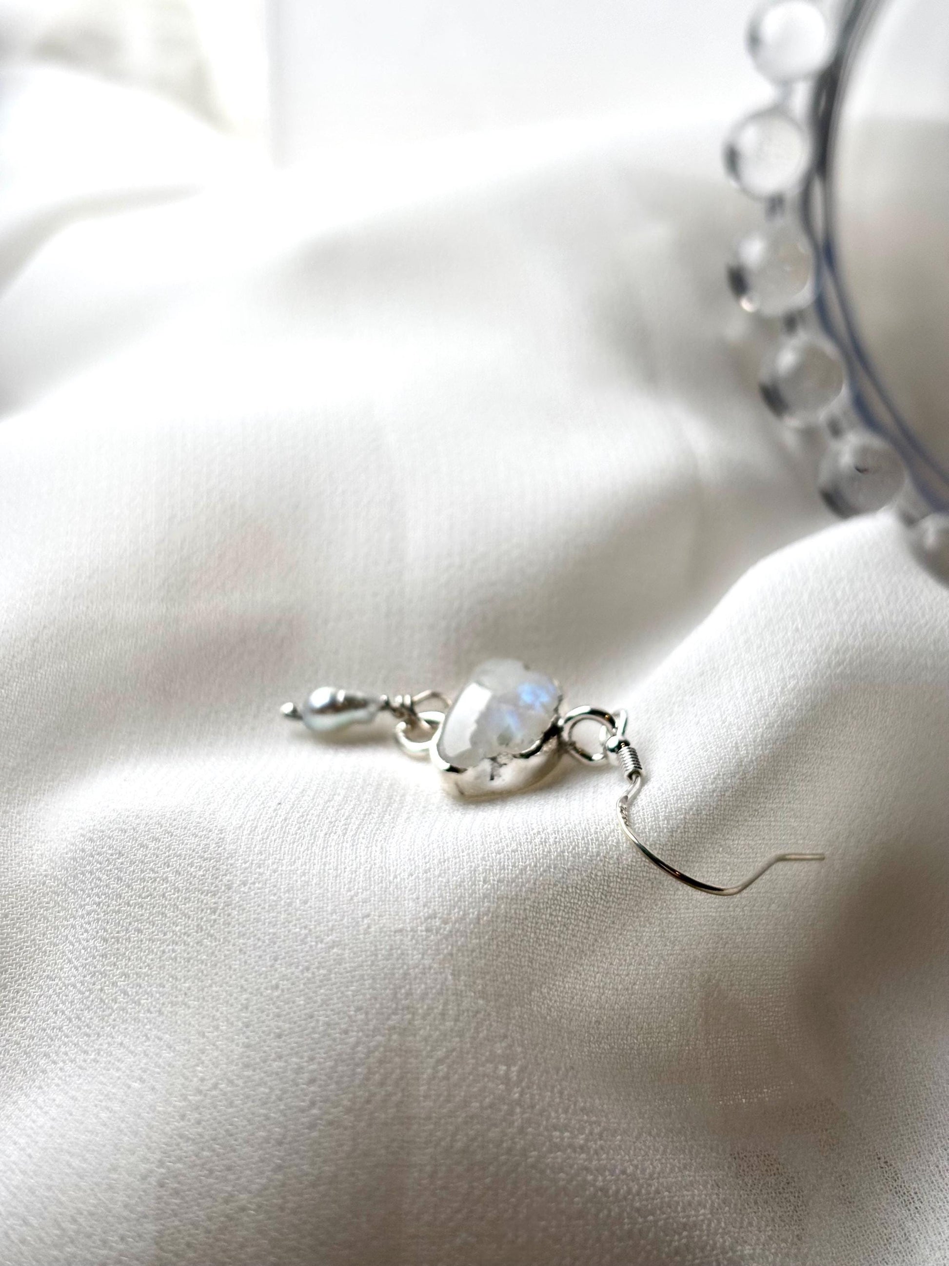 Sunny, Partly Cloudy, Chance of Shower Exquisite Moonstone Bluish Baroque Pearls Sterling Silver Earrings.
