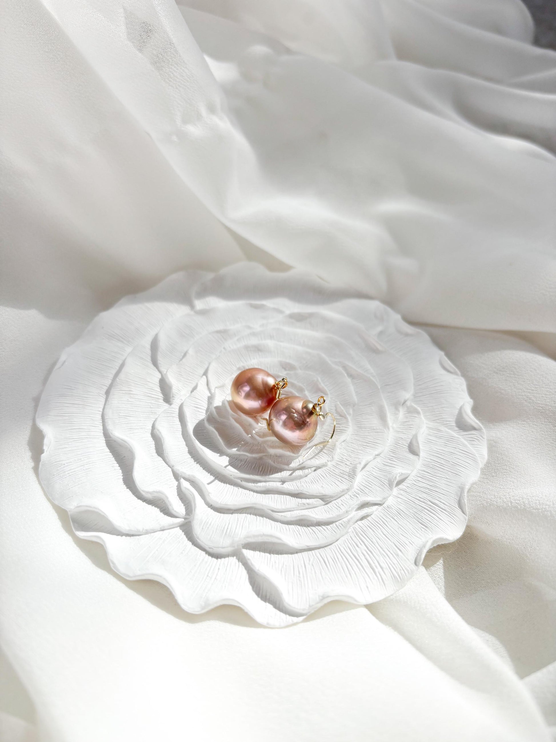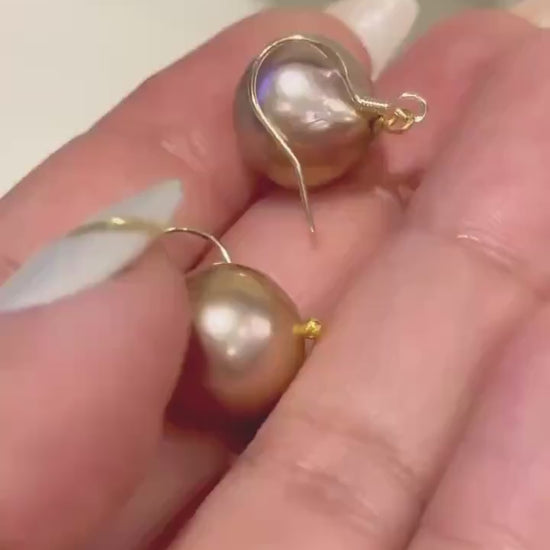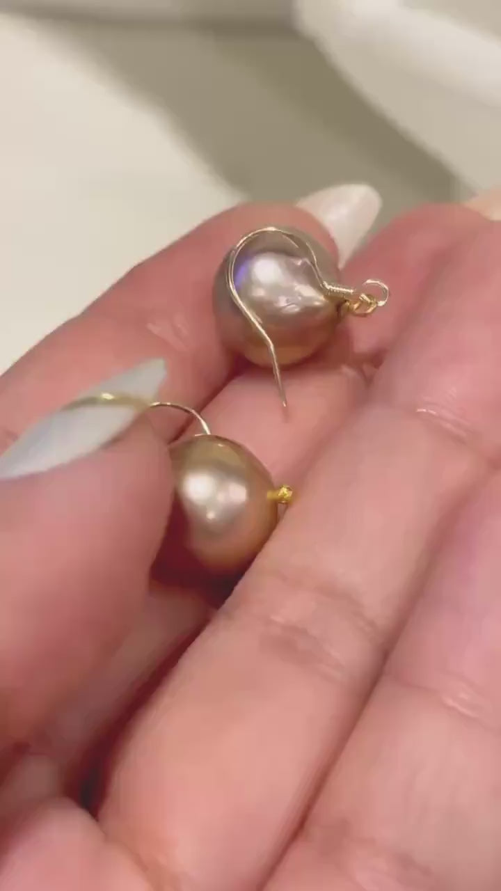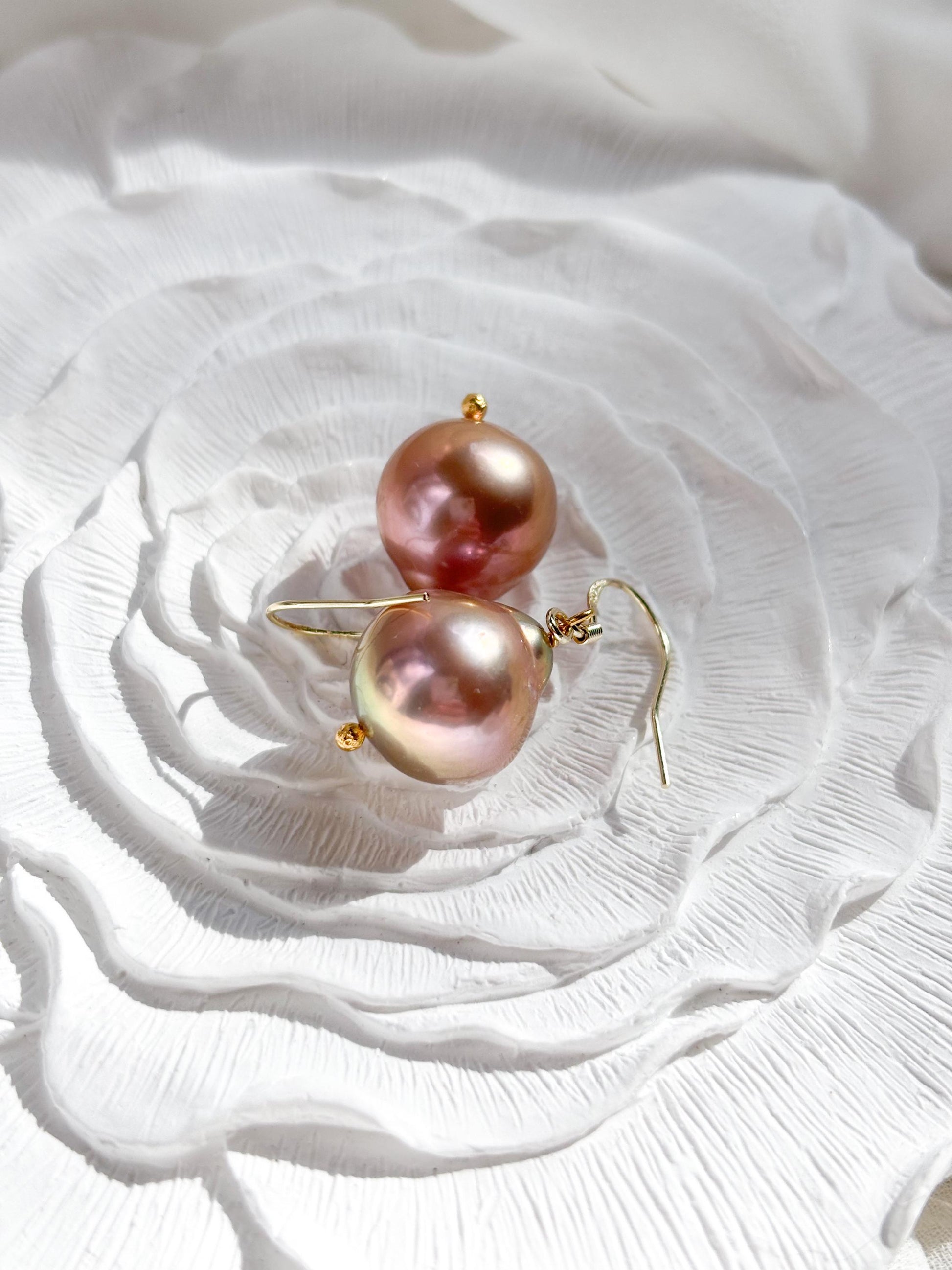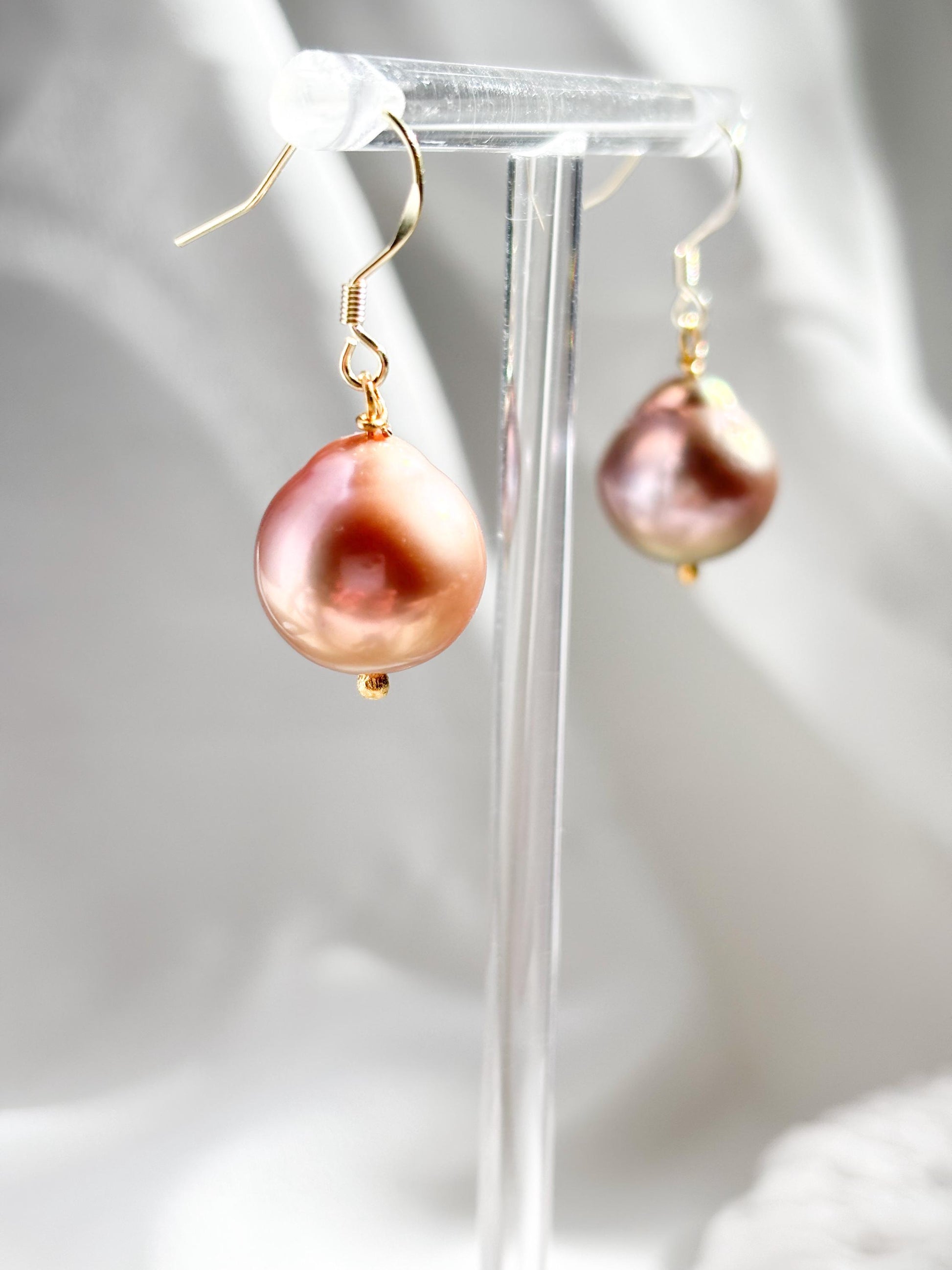 Sunset Glow – Gold-Plated Edison Pearl Dangling Earrings