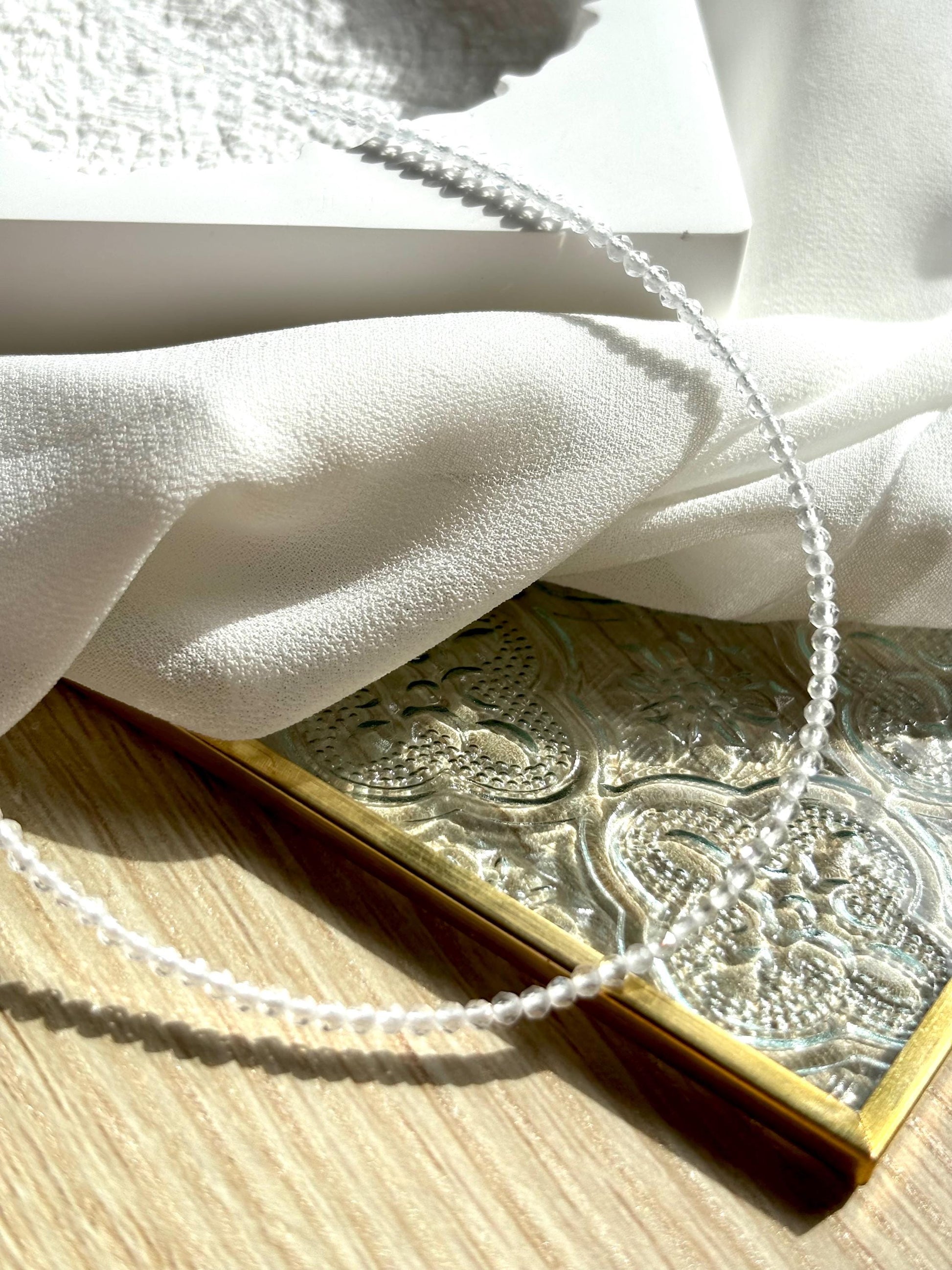 Tiny Faceted Clear Quartz Beads Stacking Necklace.
