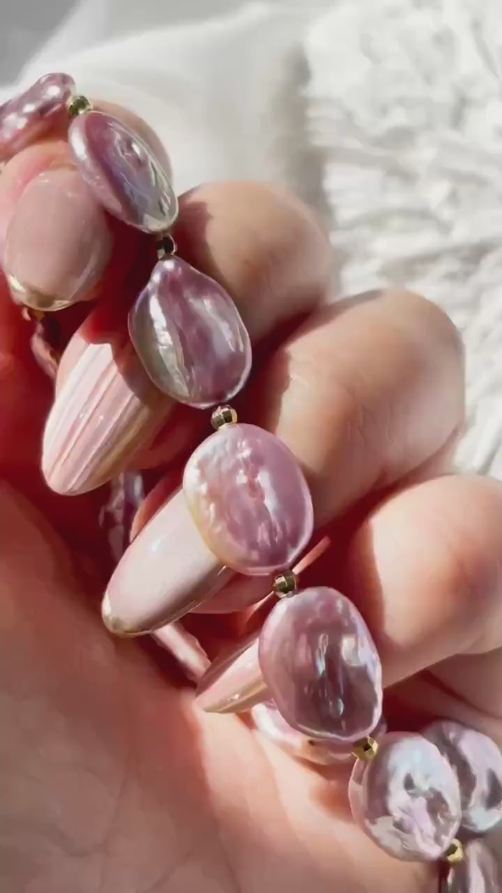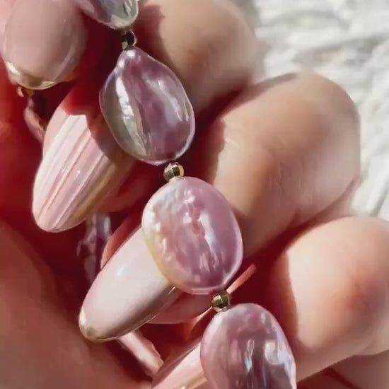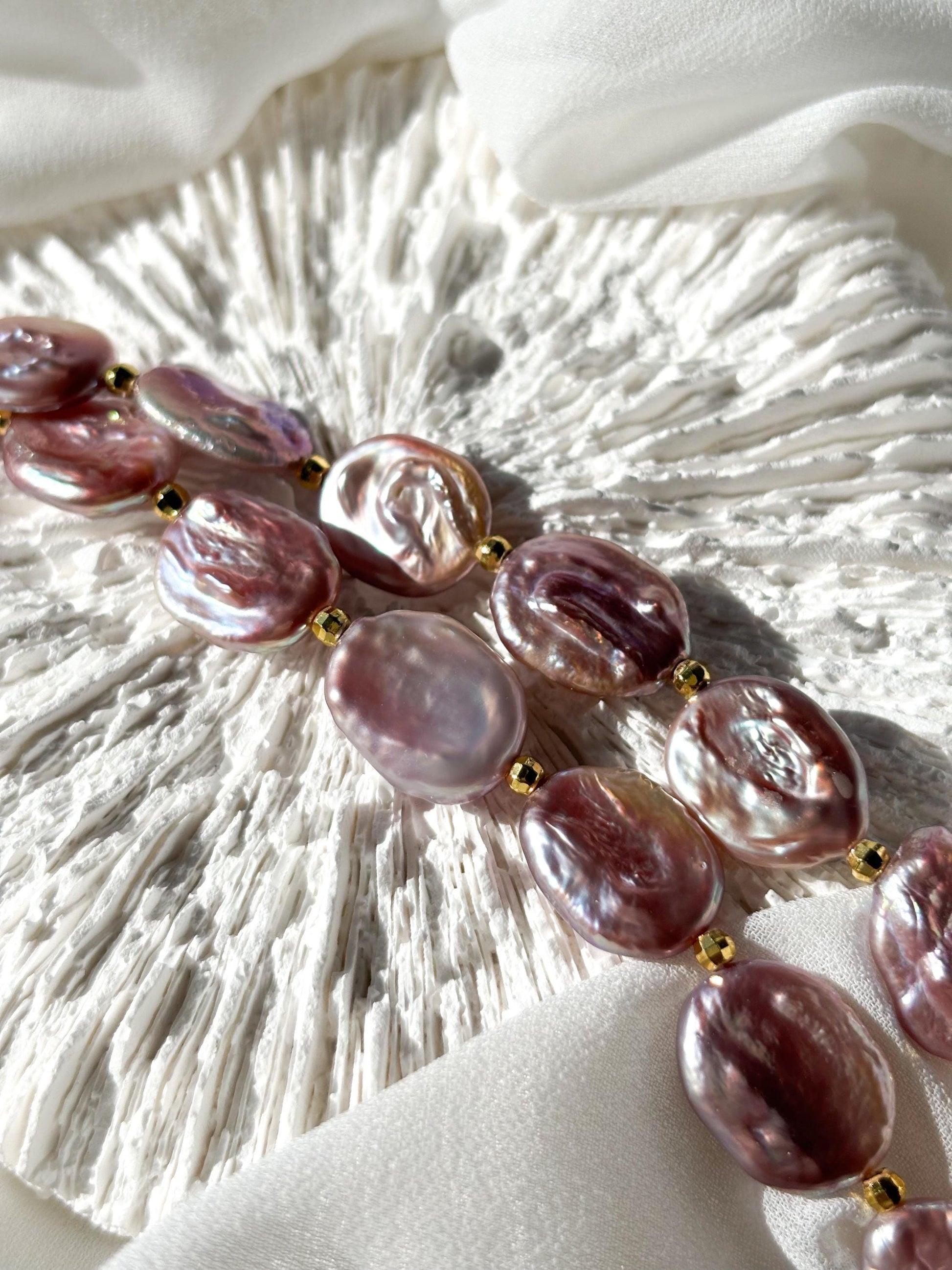 Twilight Aura – Purple Baroque Coin Pearl Necklace with Gold Accents