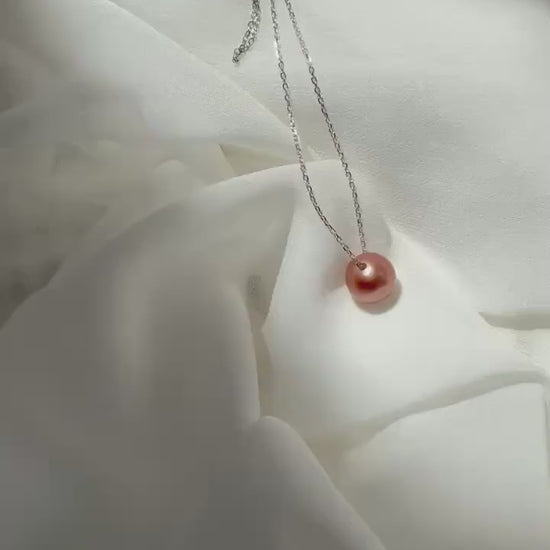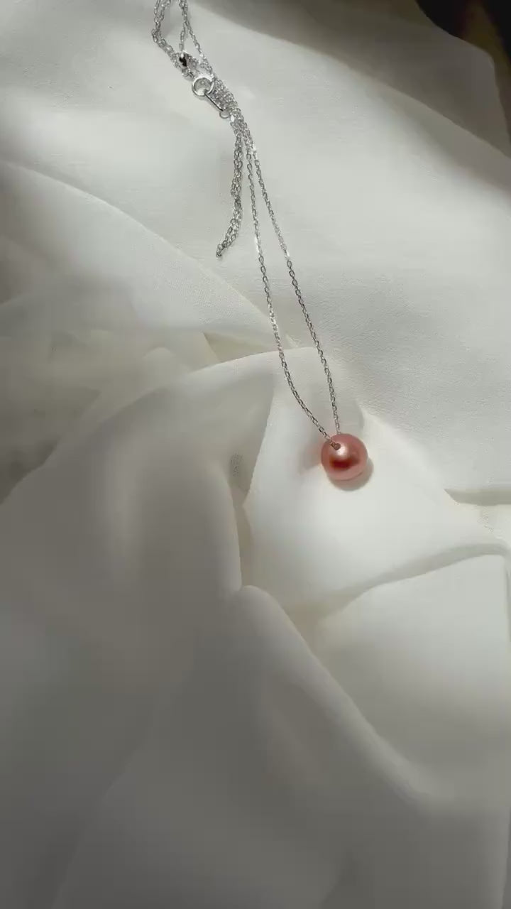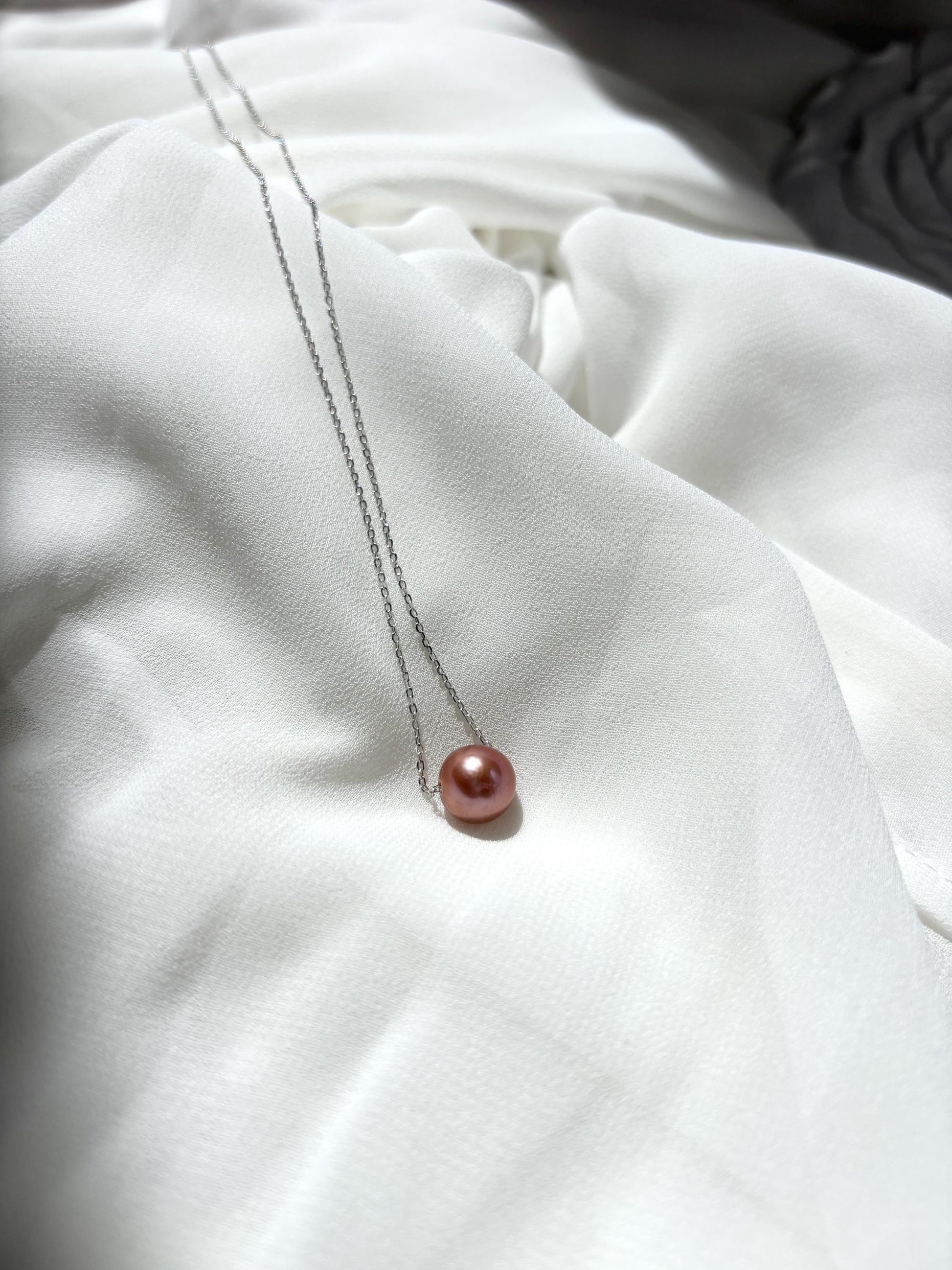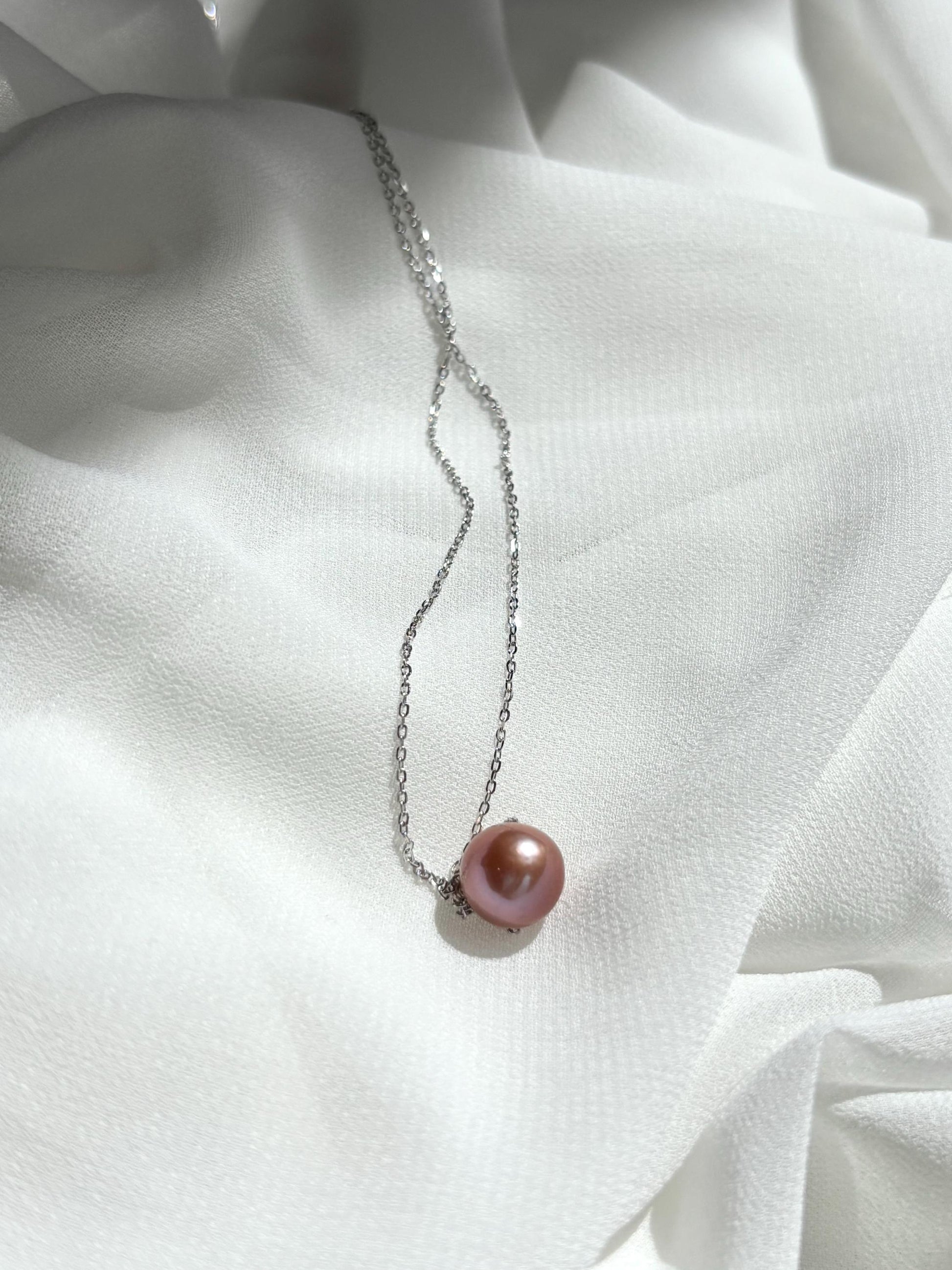 Twilight Bloom – Dark Orchid Floating Pearl Necklace (AA+Luster ) 925 Silver