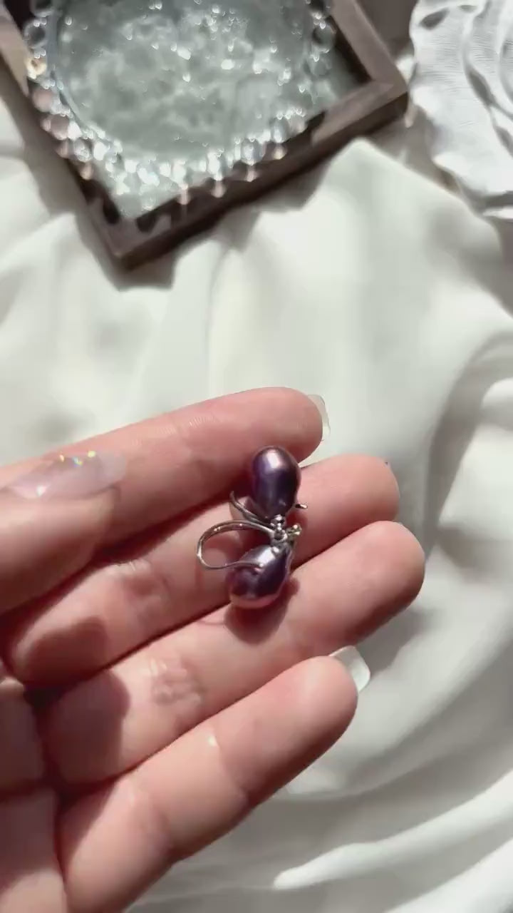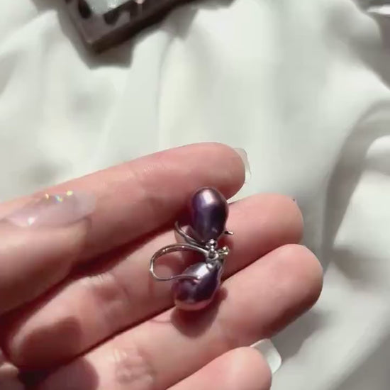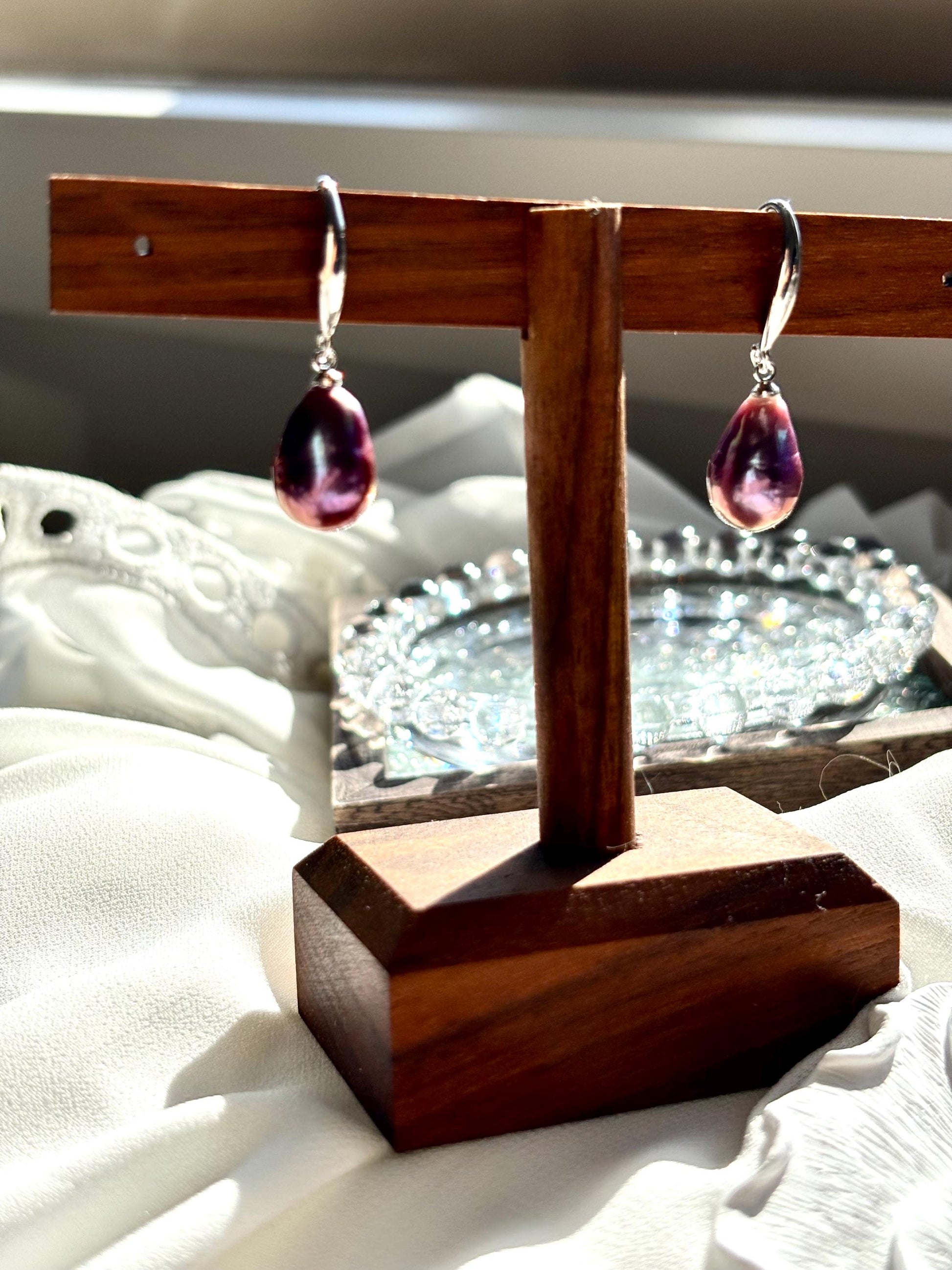 Twilight Plum Pearl Earrings – 925 Sterling Silver Elegance B