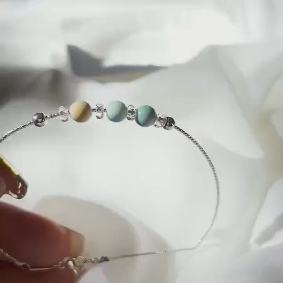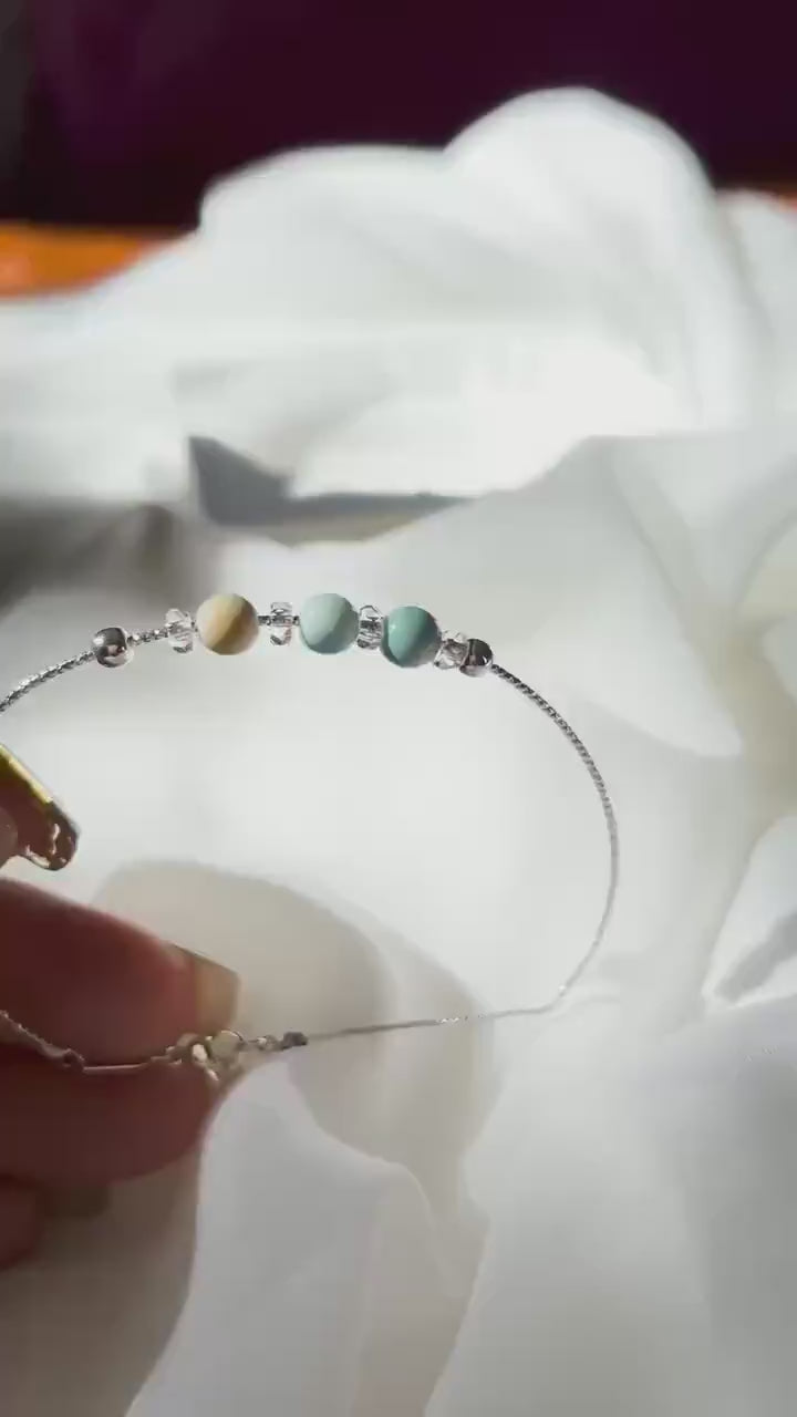 Vivid Harmony: Minimalist Dainty Alashan Agate & Clear Quartz Bangle